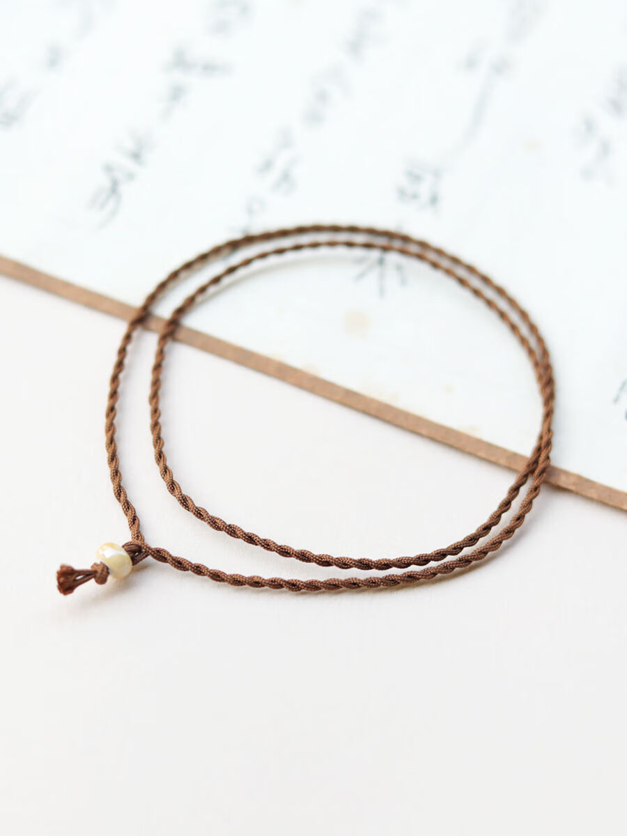 Tanhaimulberry silk necklace rope pendant rope lanyard with gold small thangka for women and men high-end simple hand-woven milk coffee about 55 cm