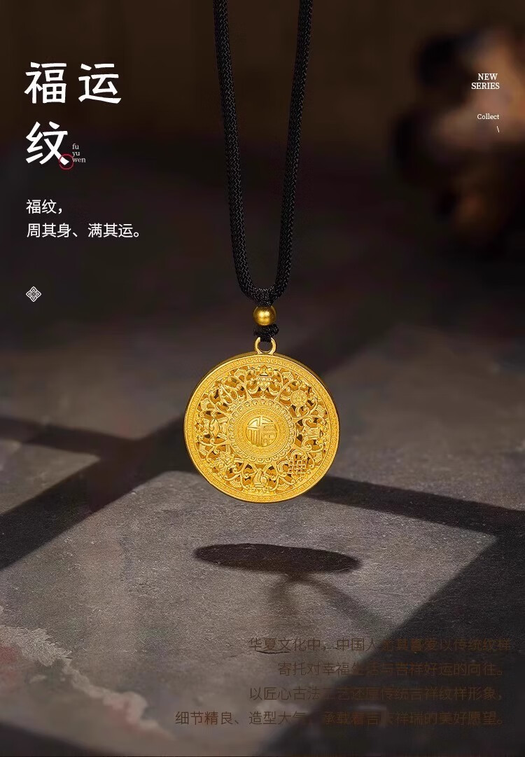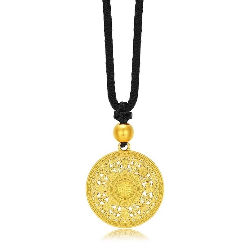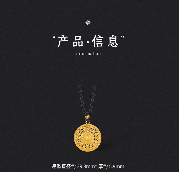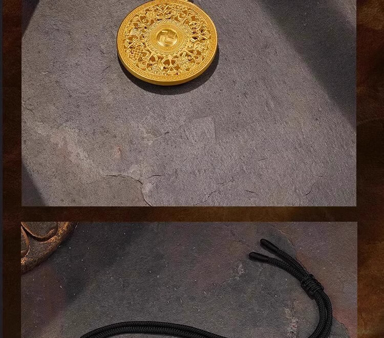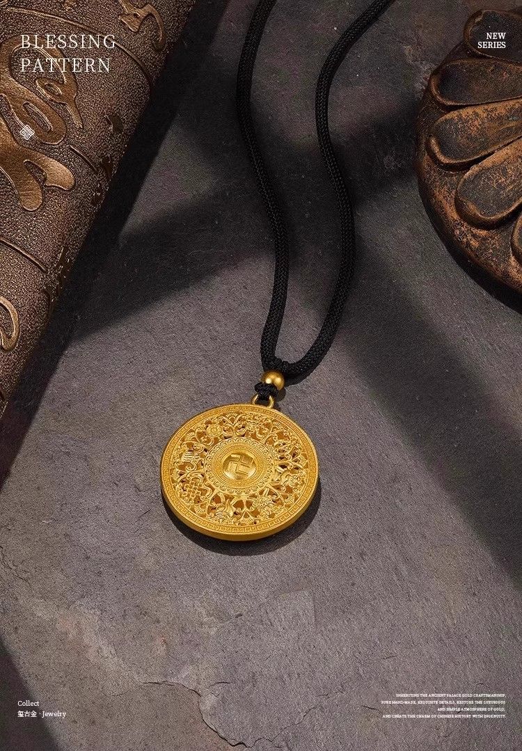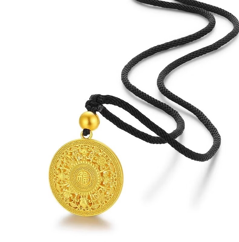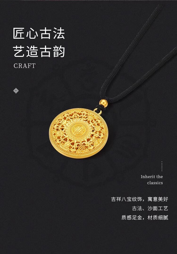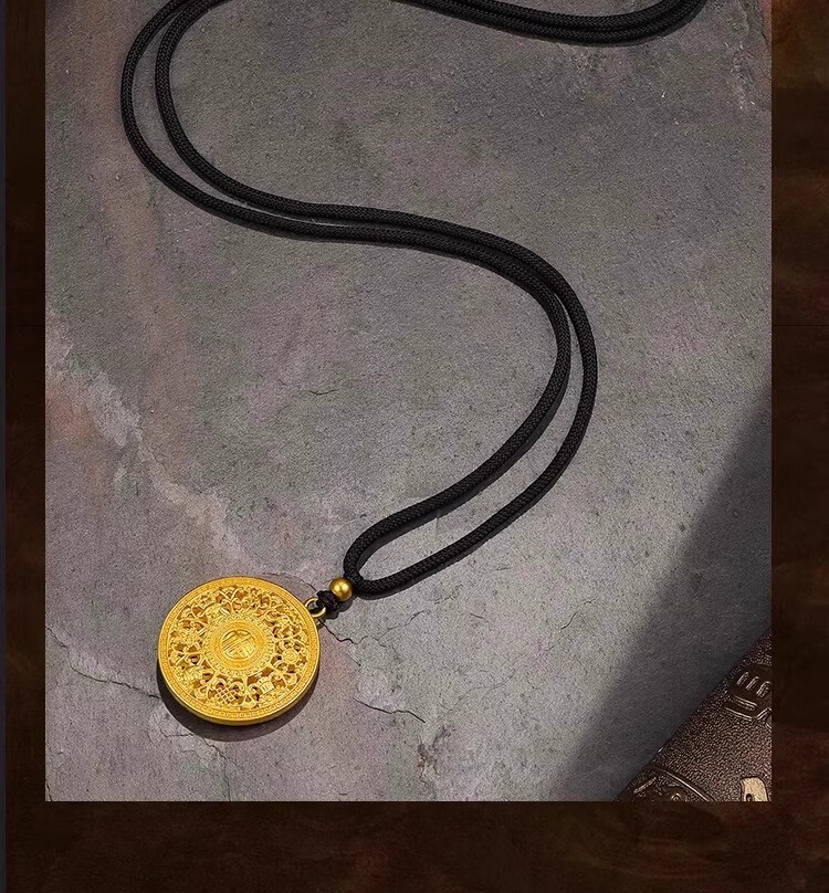 Tanhai Eight Treasures Compass Gold Pendant for Women Gold-wrapped Silver Fortune Ping An Lock Necklace for Men and Women Eight Auspicious Pendants (Large Edition) Free Black Rope