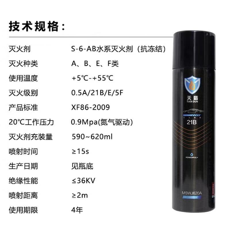 Fire Class Tiandun Water-based Fire Extinguisher Vehicle-mounted Private Car High Temperature Explosion-proof National Fire Protection Certification Training Flame Warrior