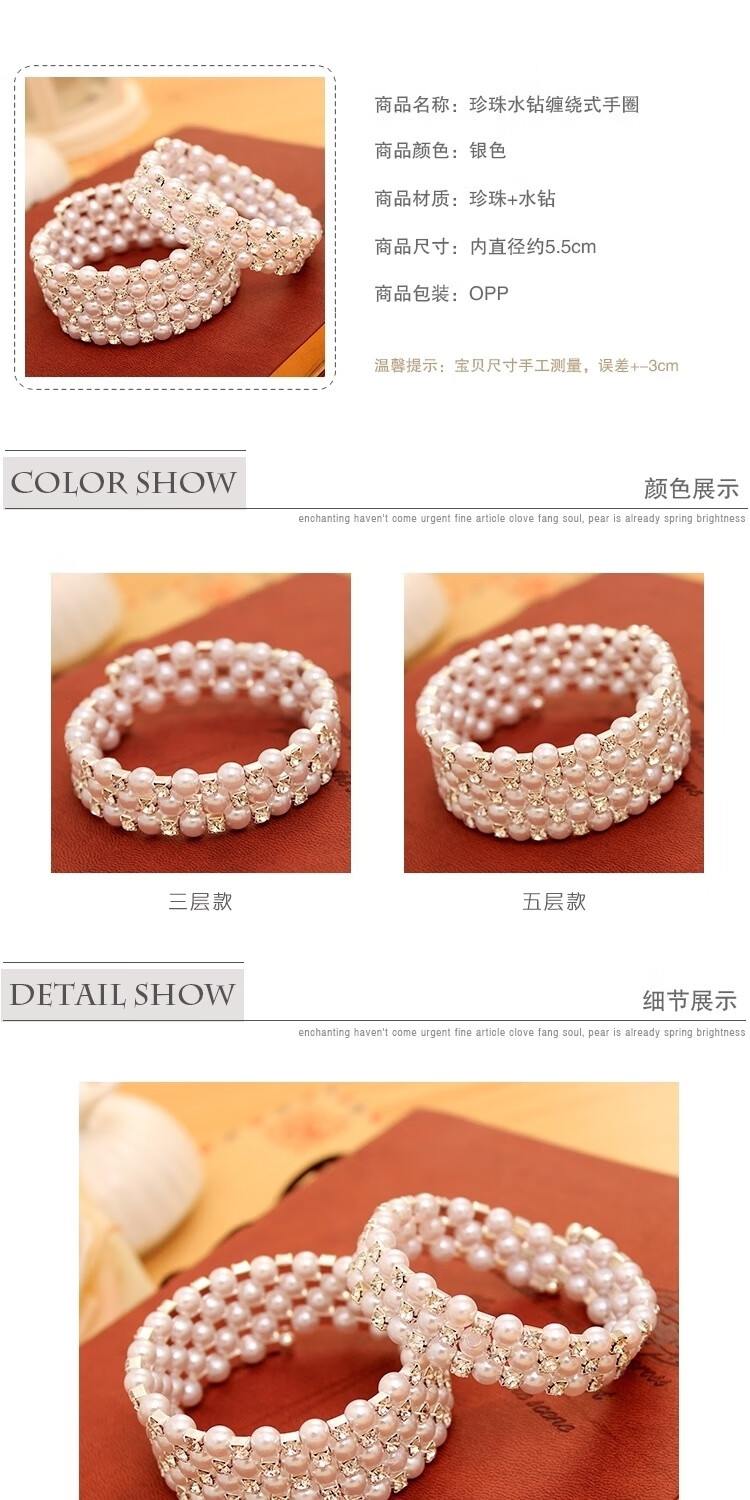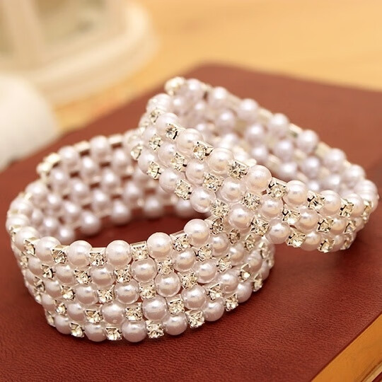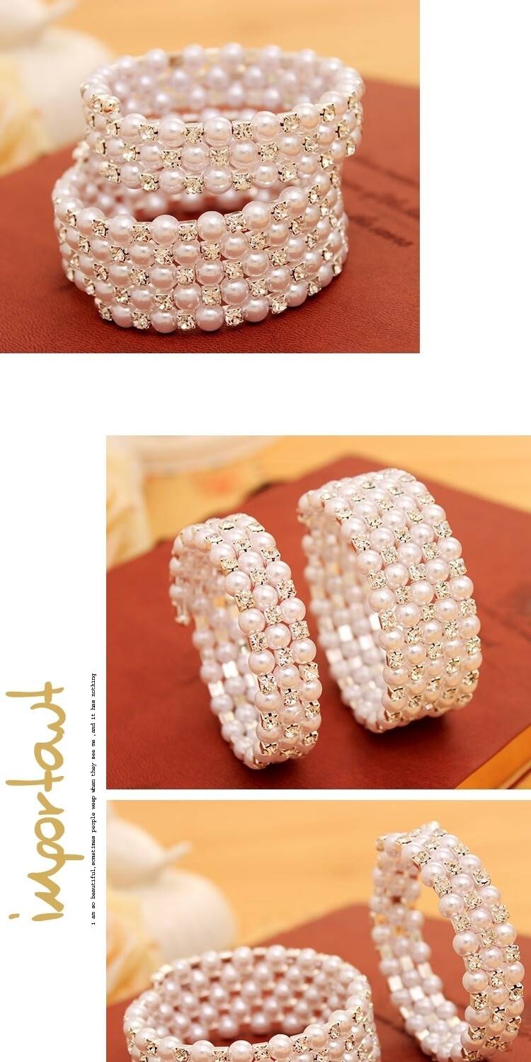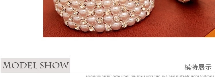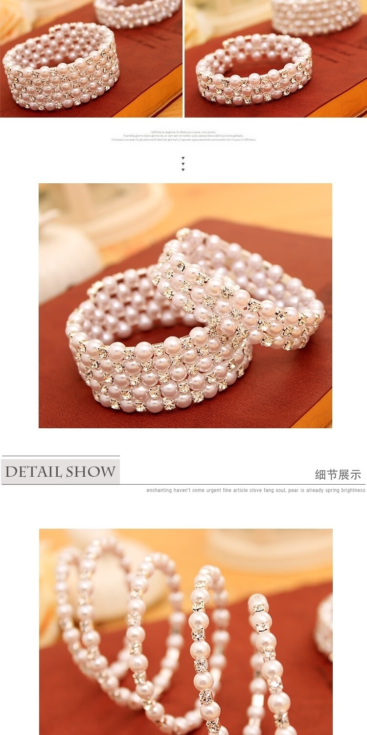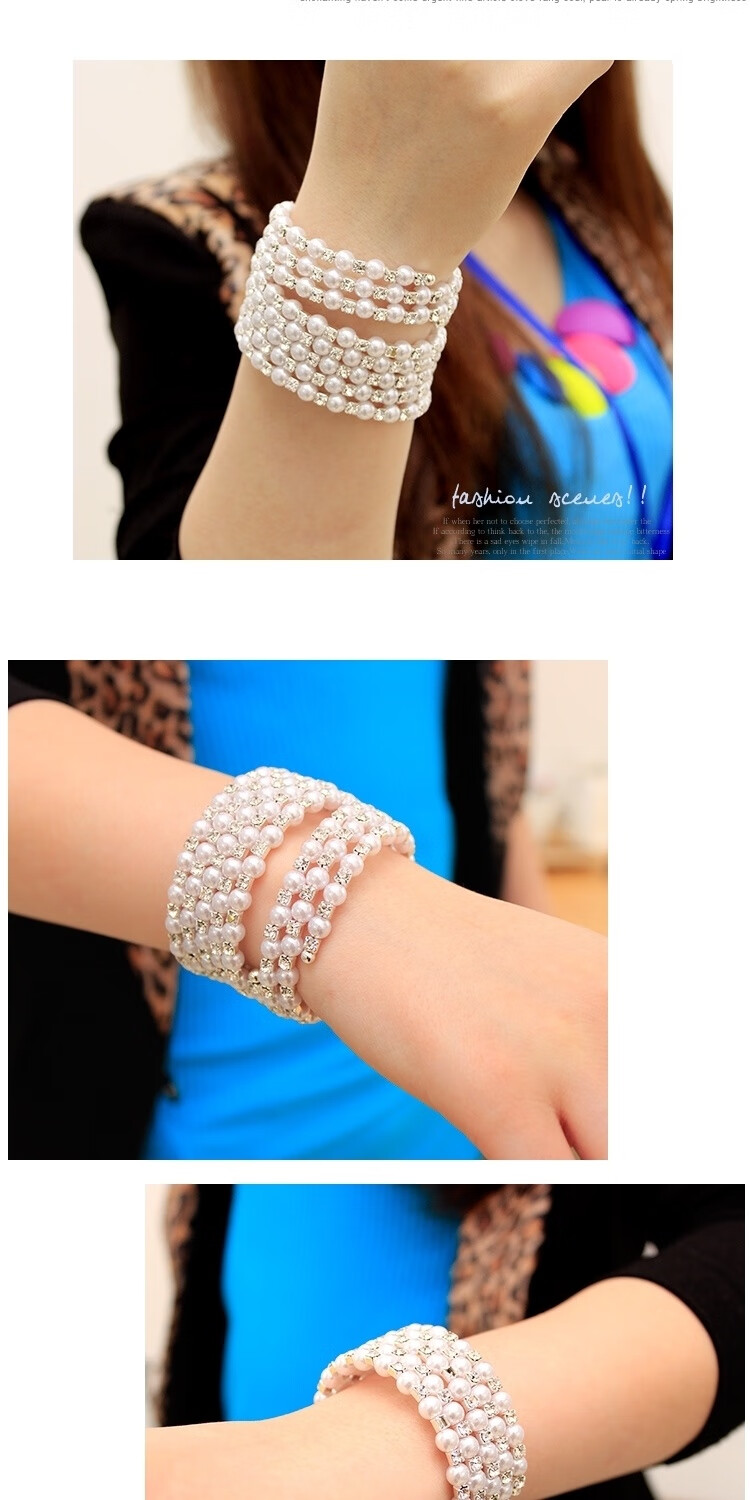 Korean style fashionable multi-layered pearl-encrusted diamond-wrapped spiral bracelet with spring flowers, wide bracelet for women, elastic wide bracelet, main picture
