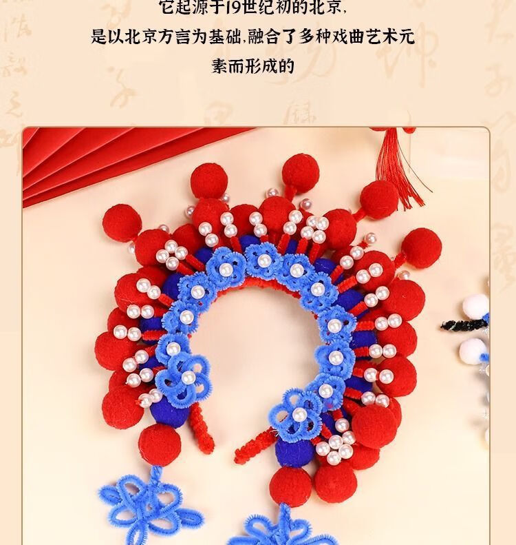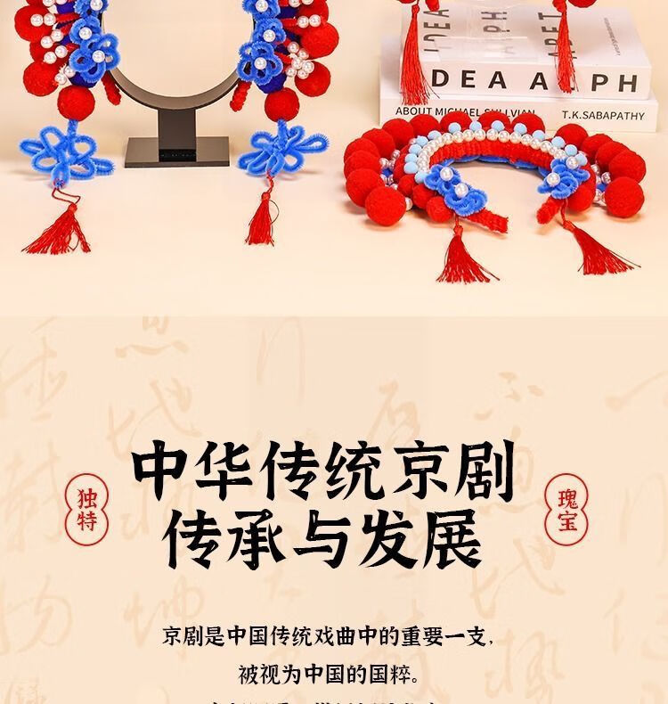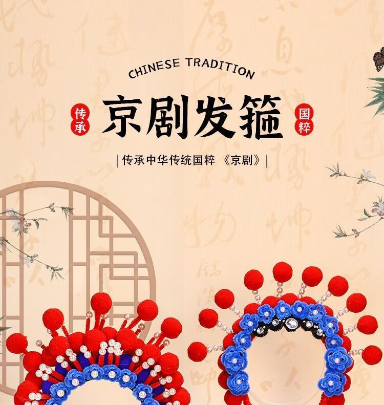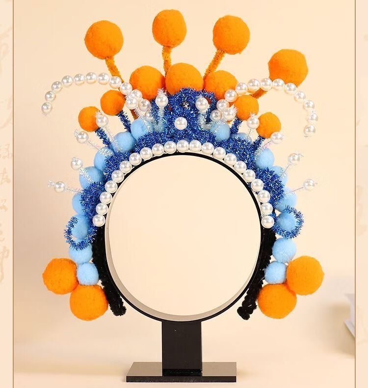 MiU Se Peking Opera headband, national fashion twist stick headband, diy headdress, intangible cultural heritage, opera fur ball, Hua Dan hair ornament, handmade decoration, Mu Guiying in charge, no support frame