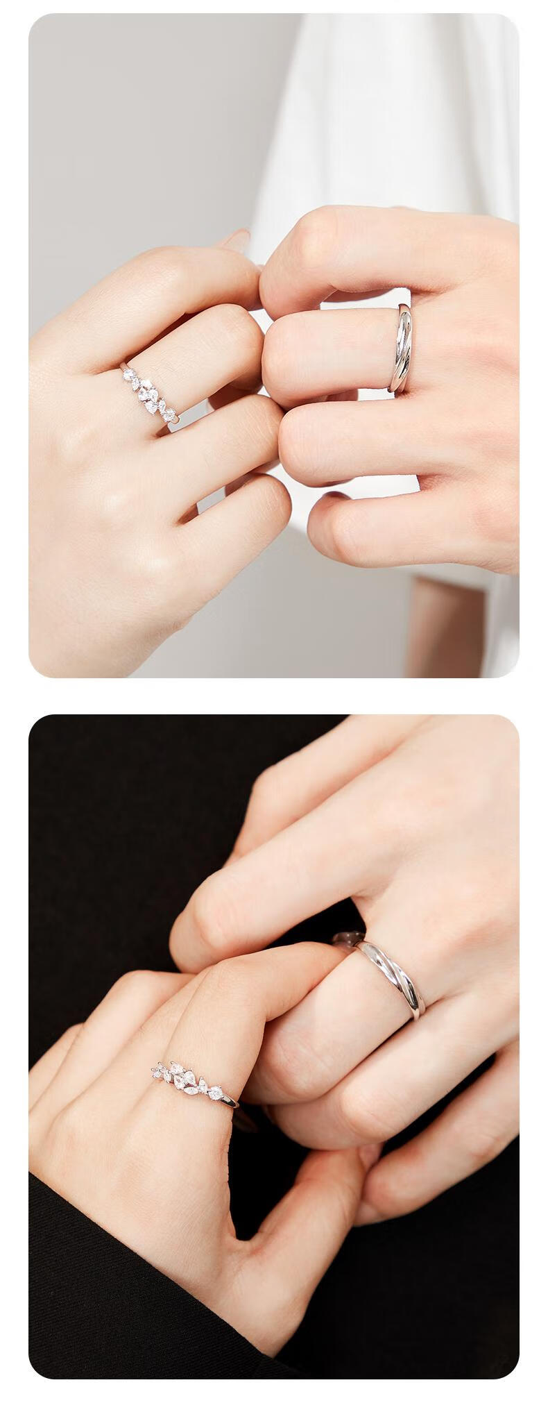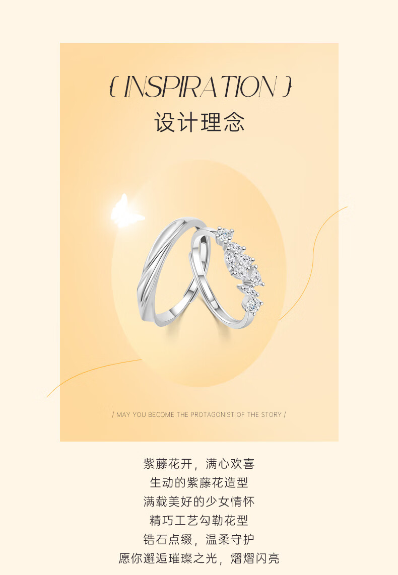 Lao Fengxiang Pure Silver Couple Ring, Boys and Girls Proposal, Living Rings, Jewelry, Valentine's Day, Birthday Gifts for Girlfriend and Wife, 999 Pure Silver, Wisteria Couple Rings