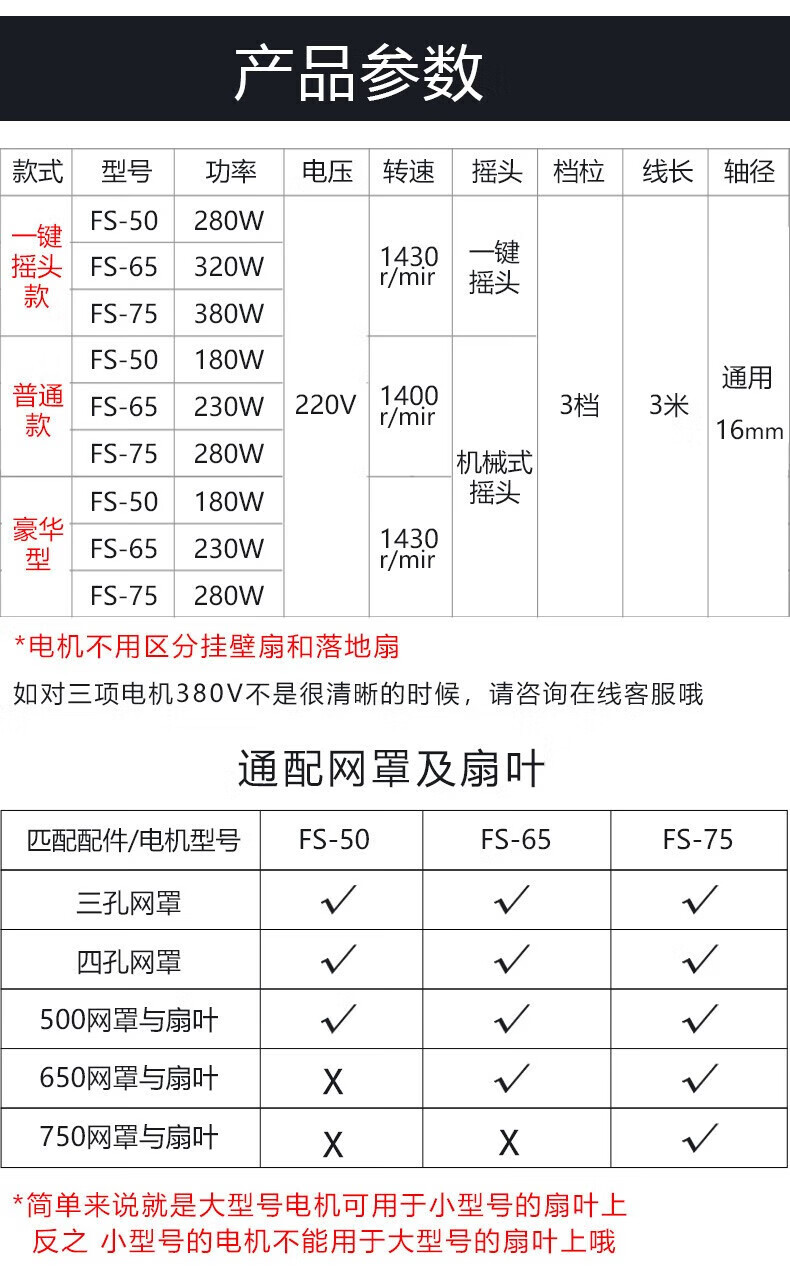 Industrial electric fan powerful motor motor high-power exhaust wall-mounted corner floor fan new and old models universal machine head FS-75 motor wire-controlled model