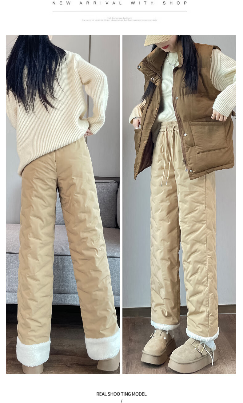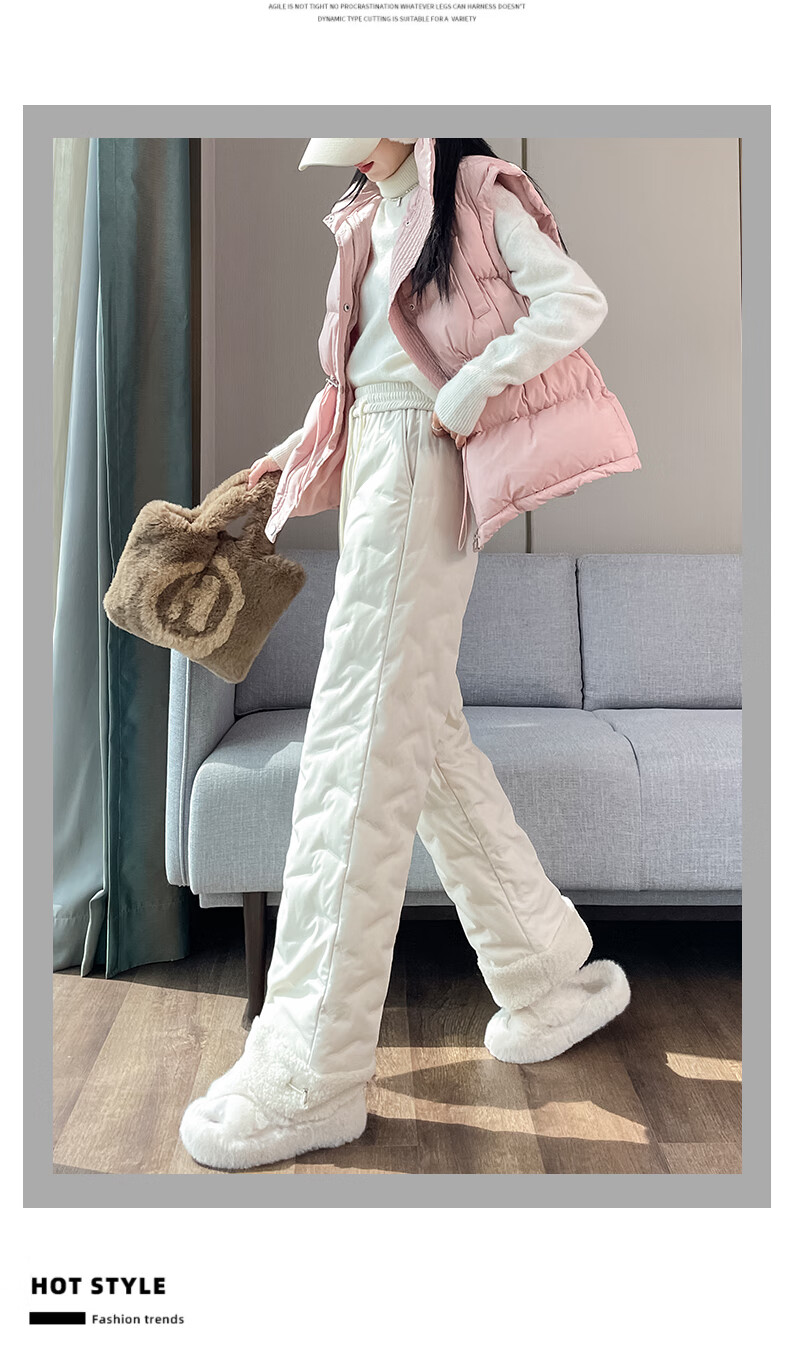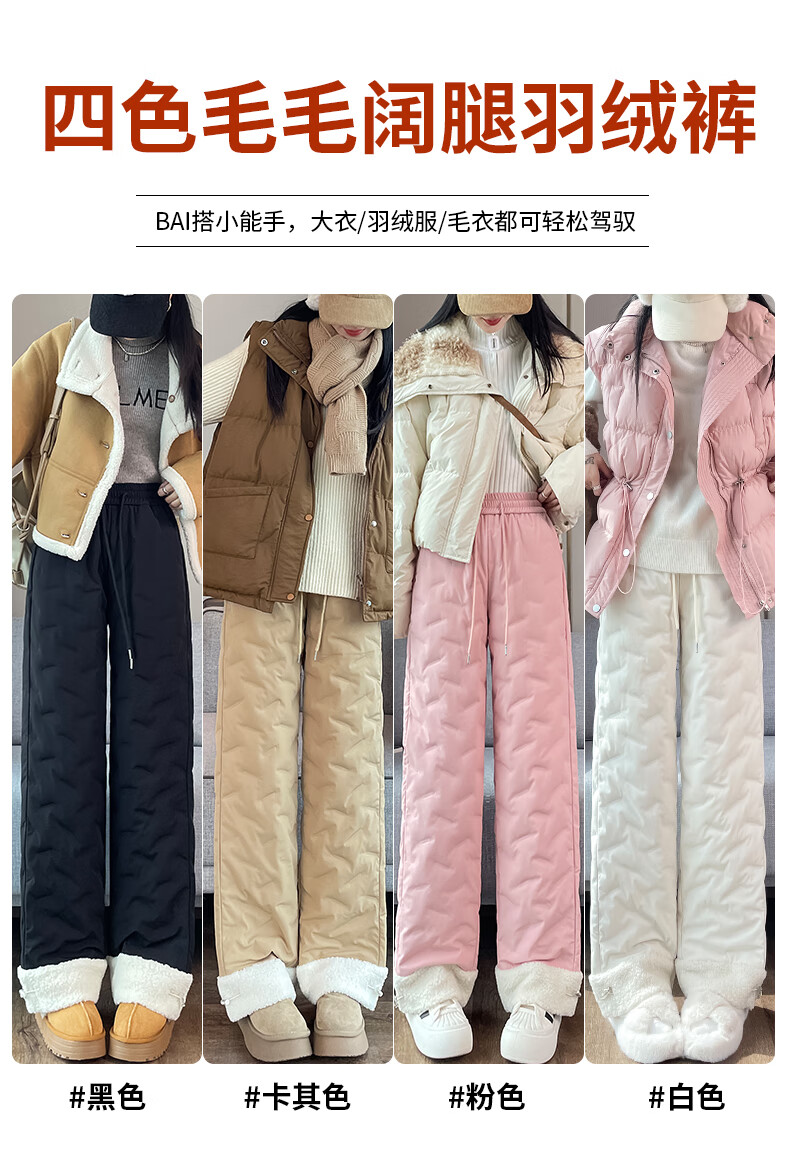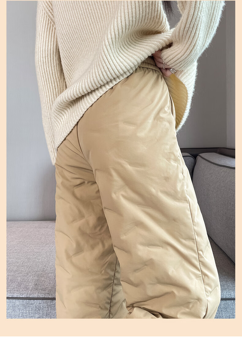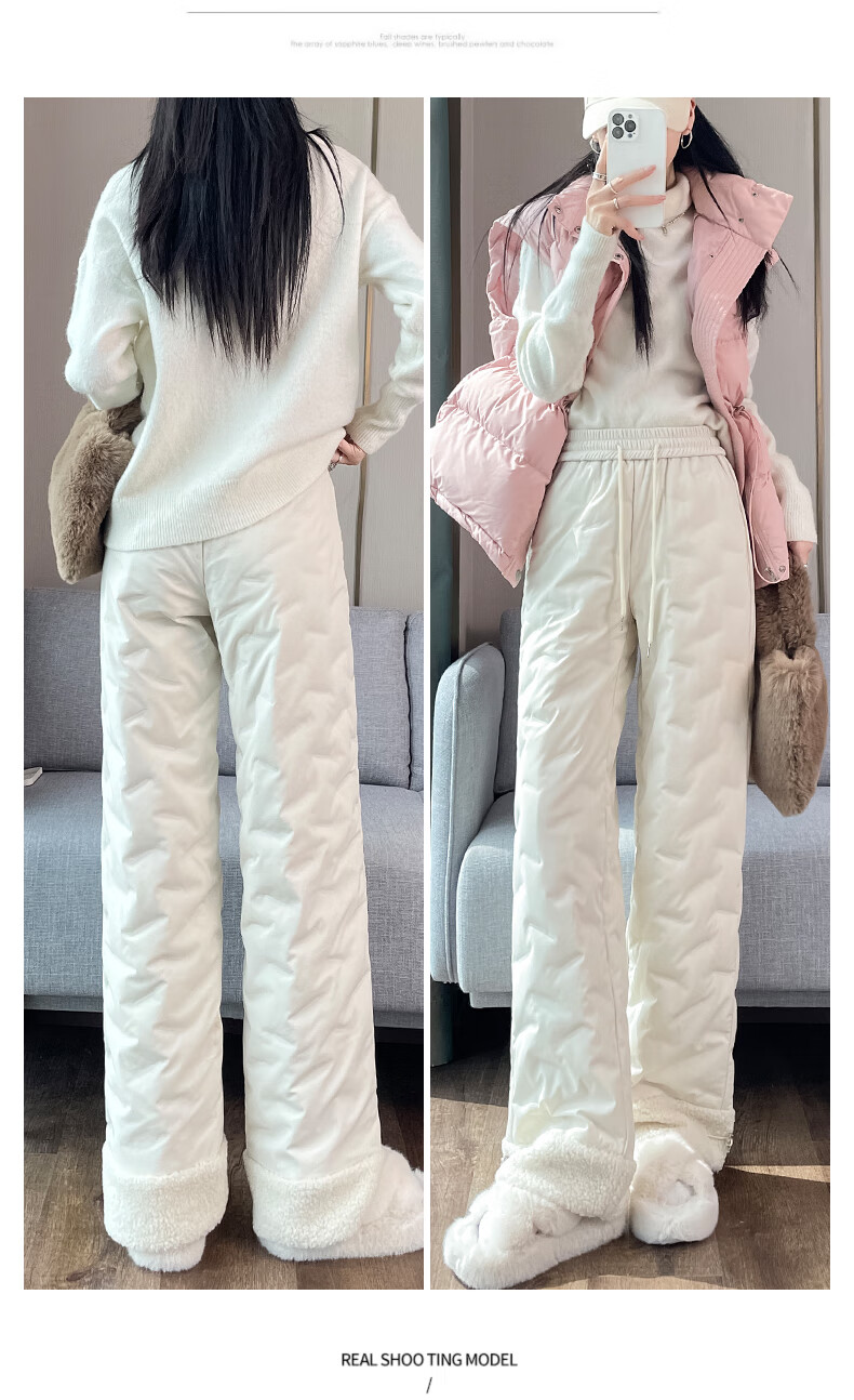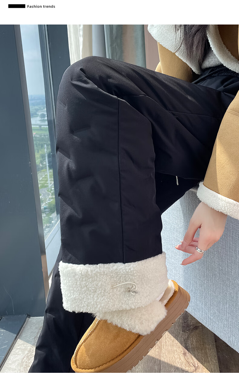 Pierre Cardin lamb wool down pants for women's outer wear 2025 winter new minus 40 degree white duck down fashion straight style cotton pants off-white S