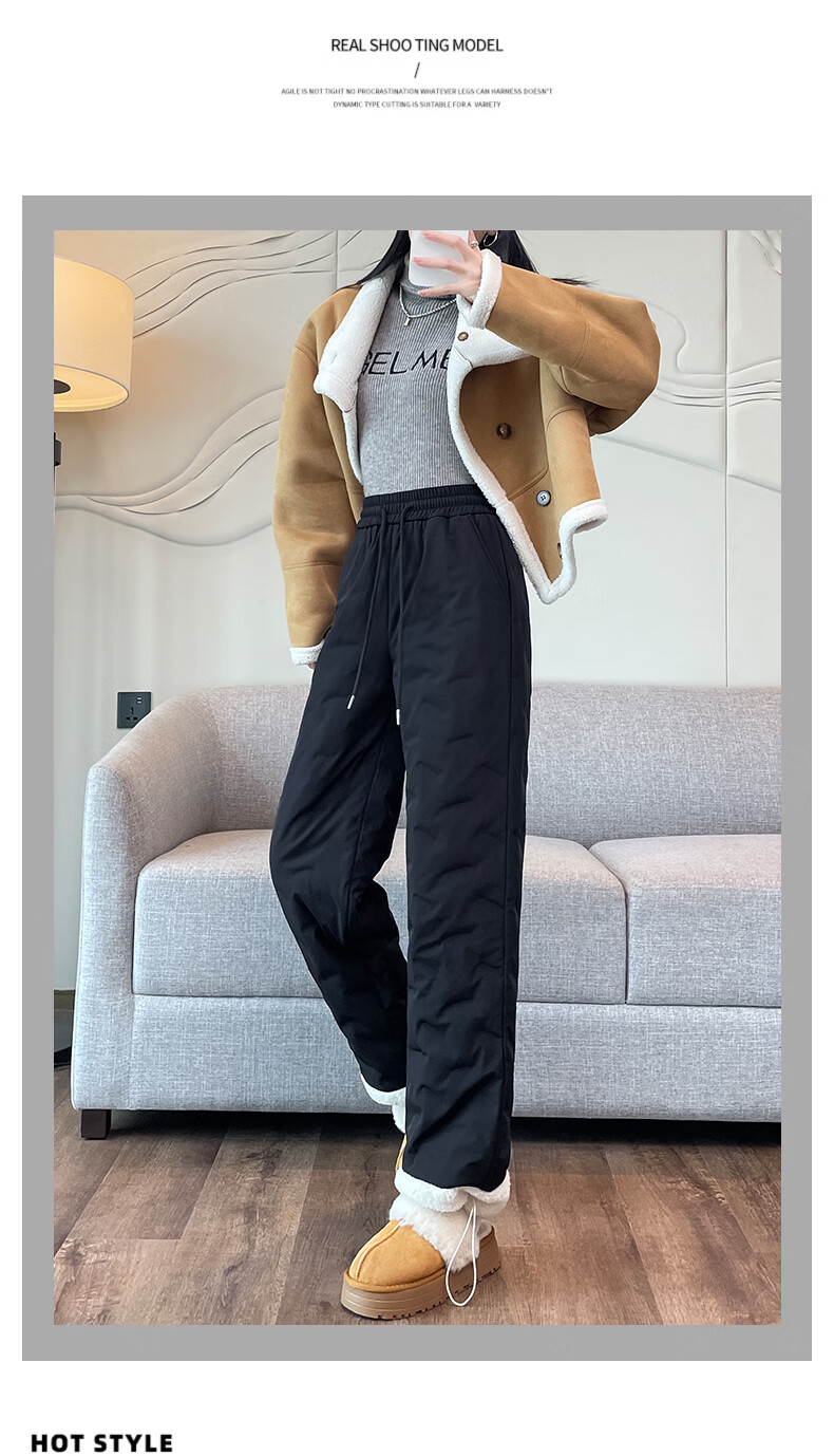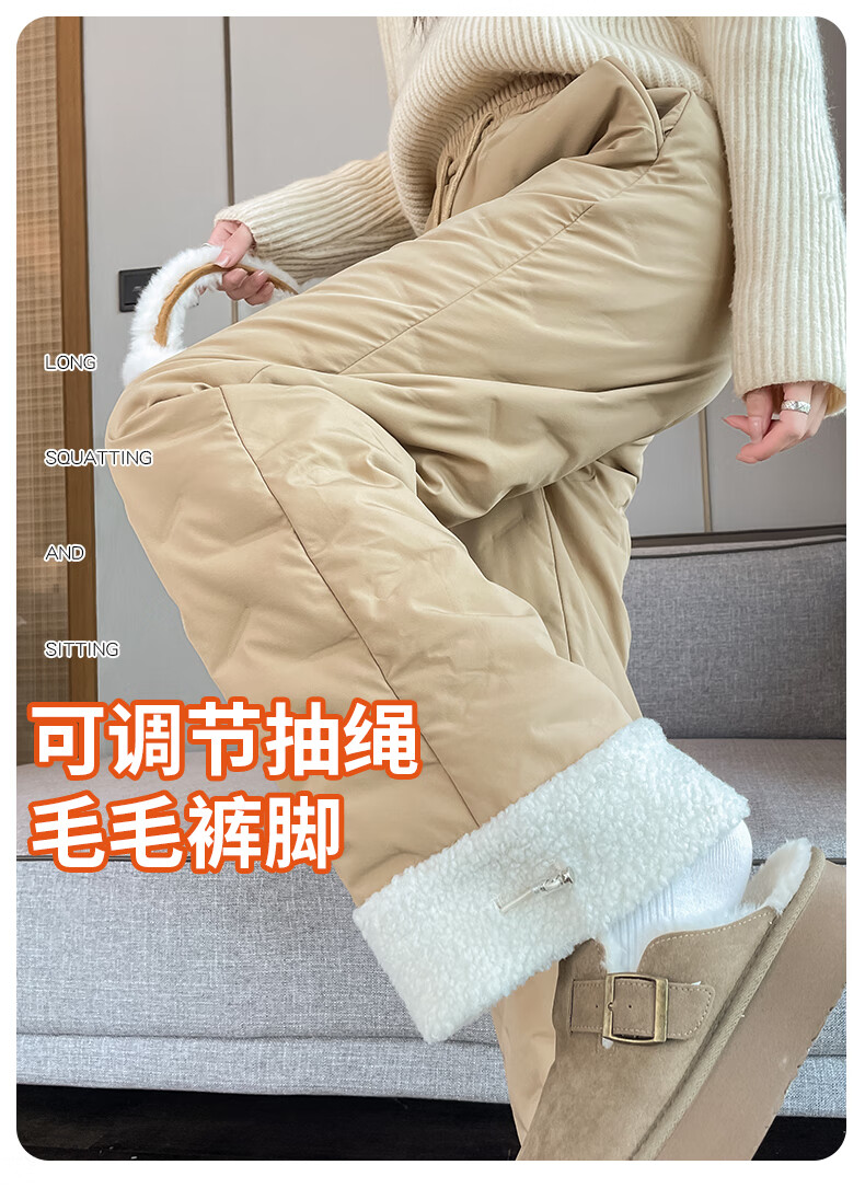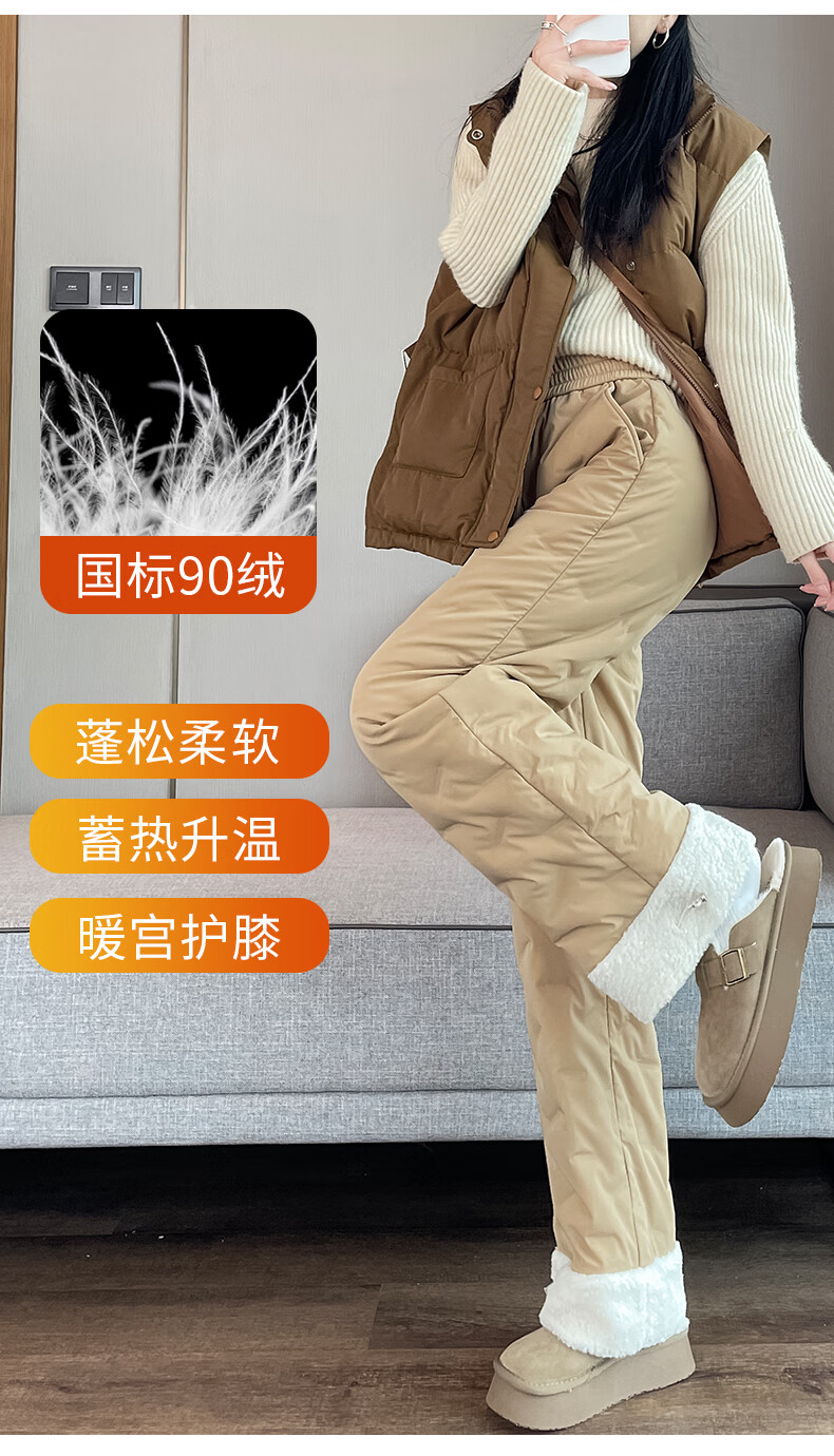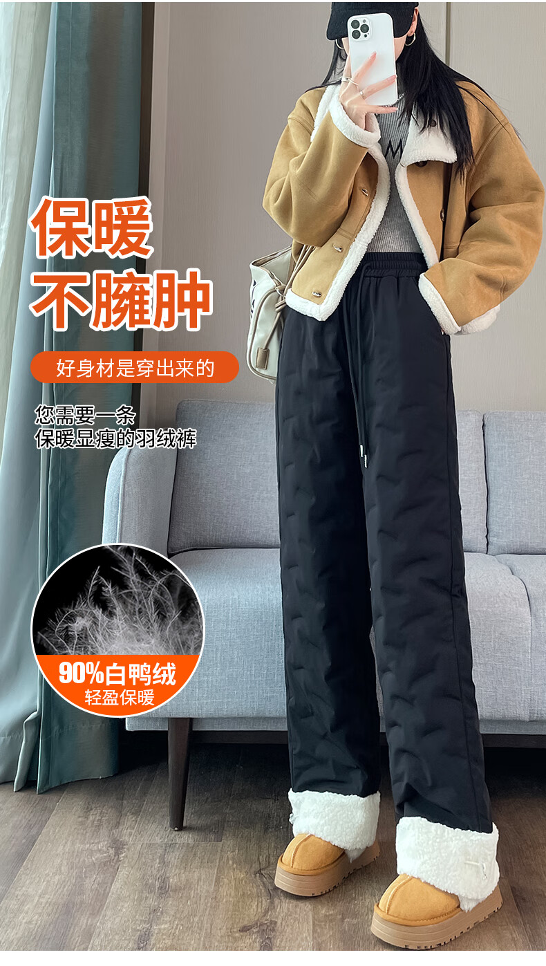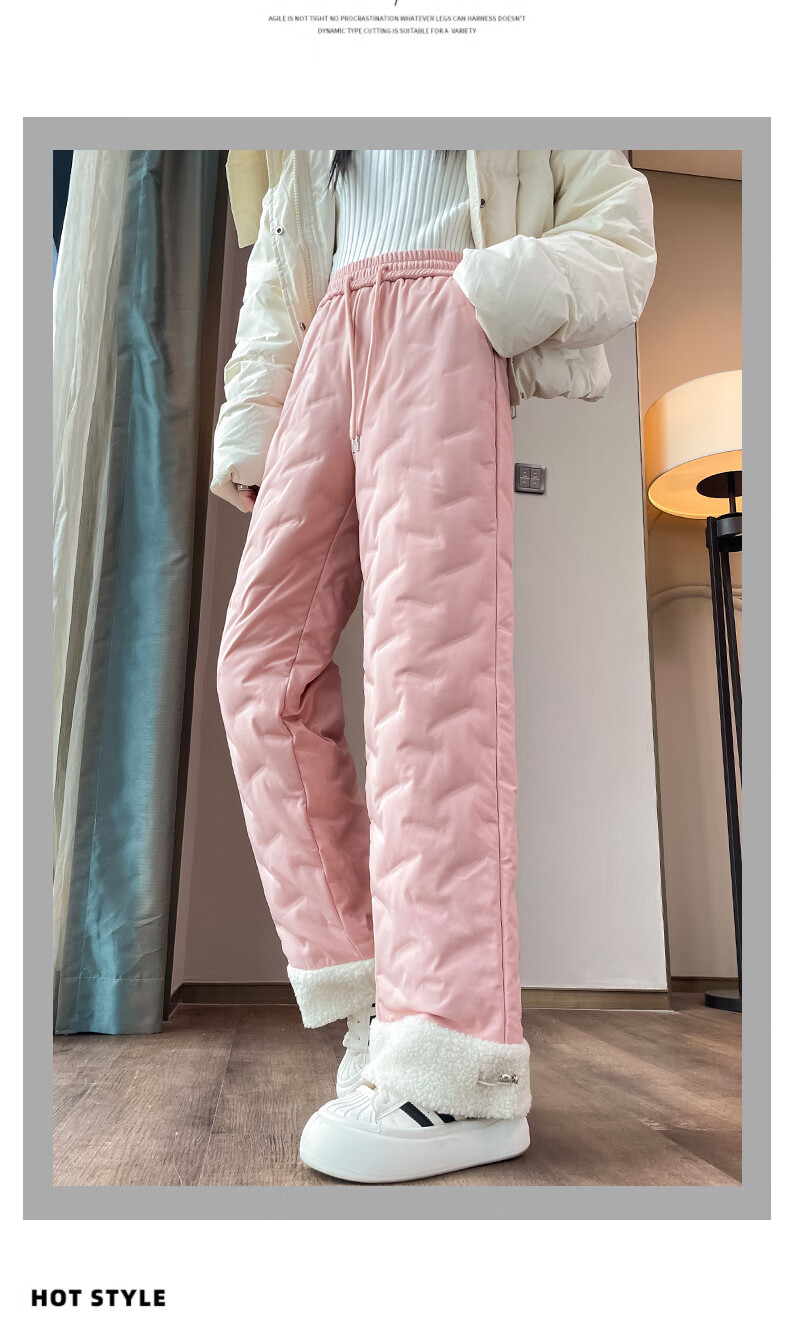 Pierre Cardin lamb wool down pants for women's outer wear 2025 winter new minus 40 degree white duck down fashion straight style cotton pants off-white S