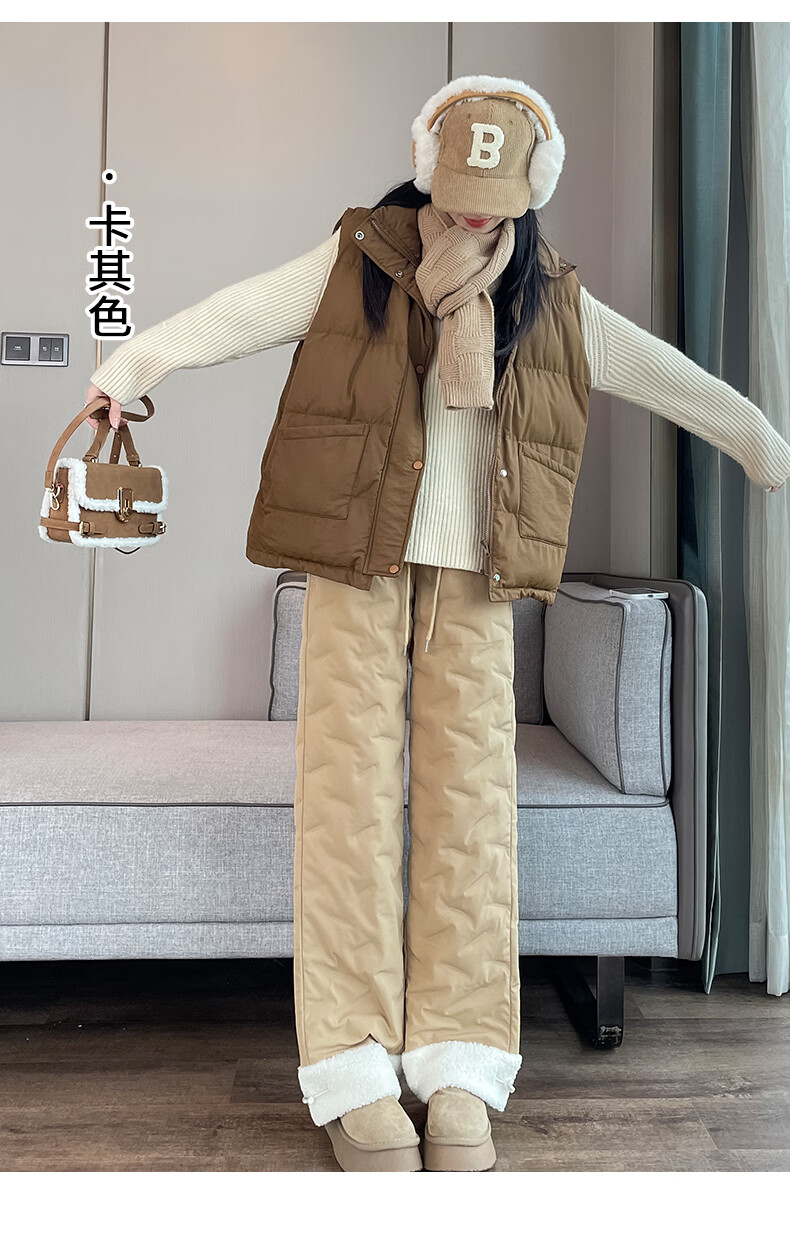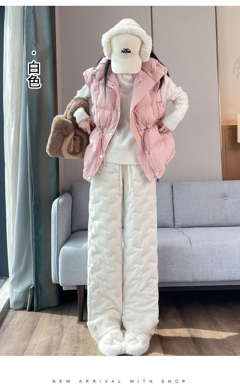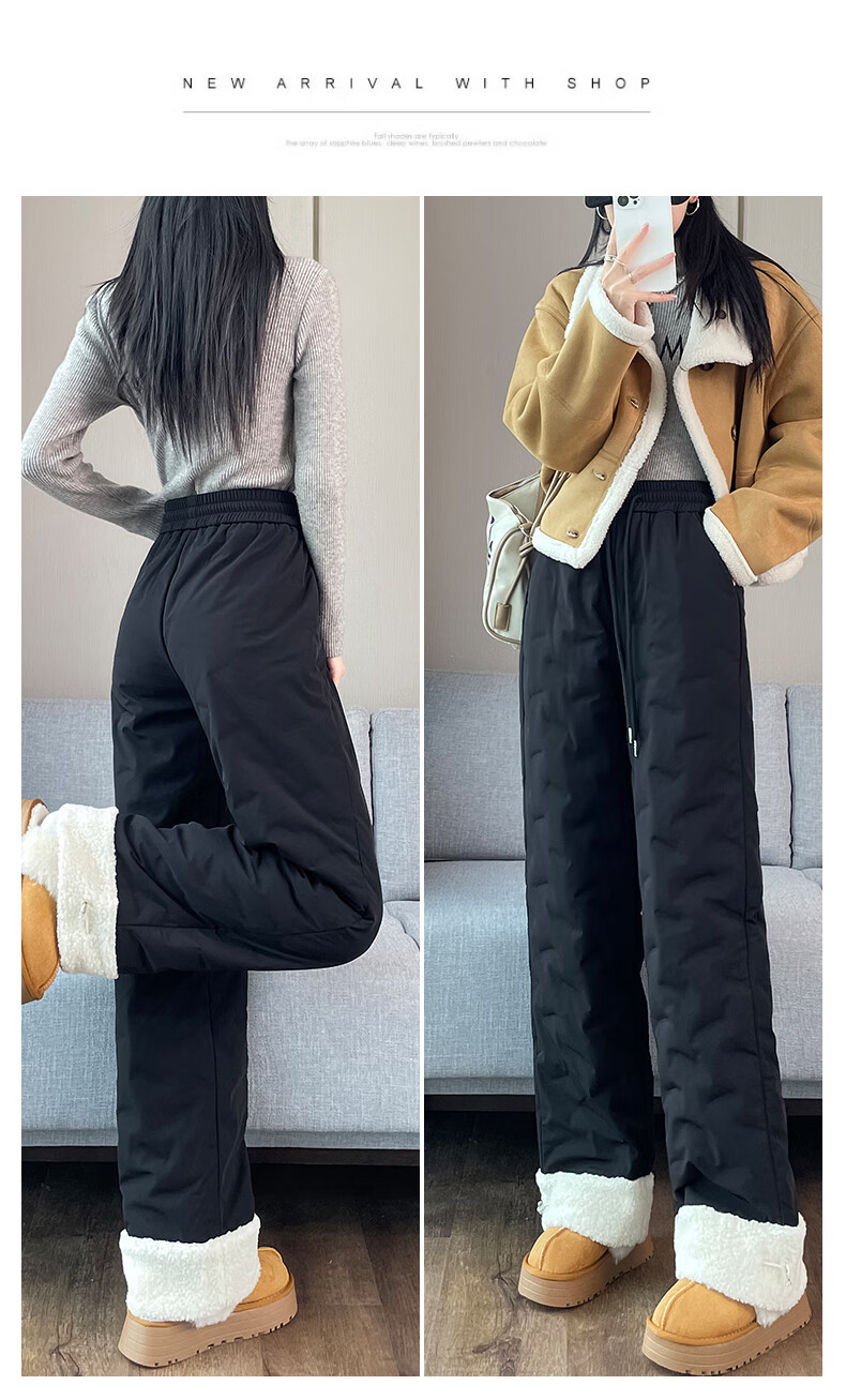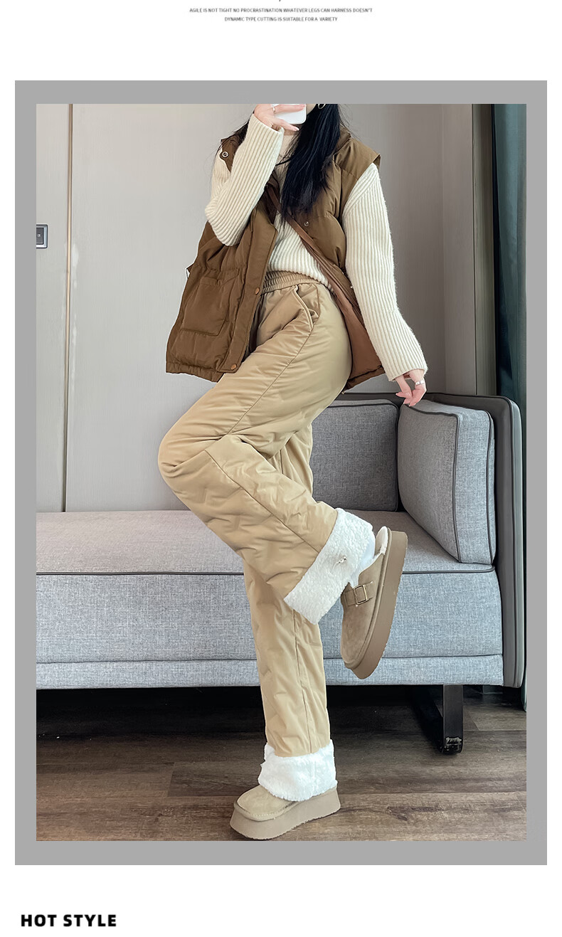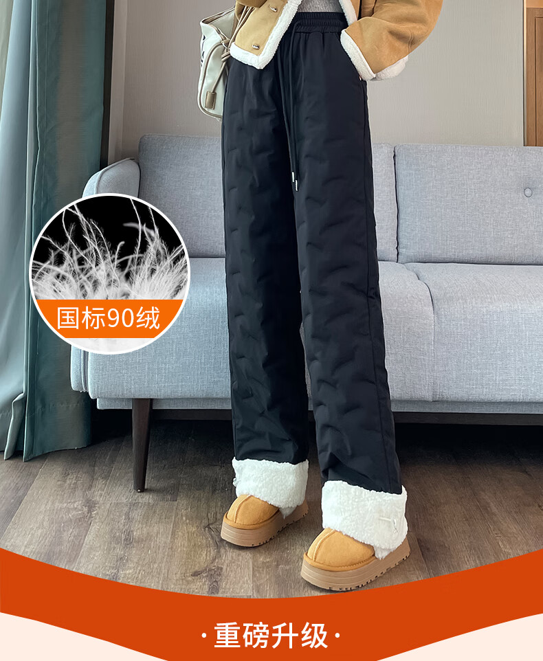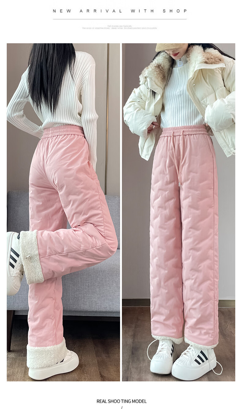 Pierre Cardin lamb wool down pants for women's outer wear 2025 winter new minus 40 degree white duck down fashion straight style cotton pants off-white S