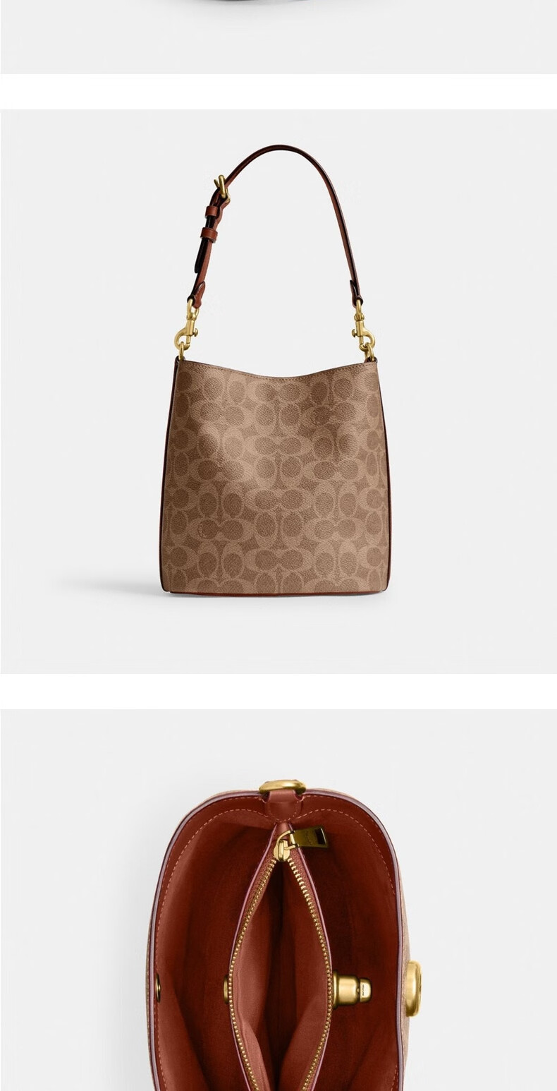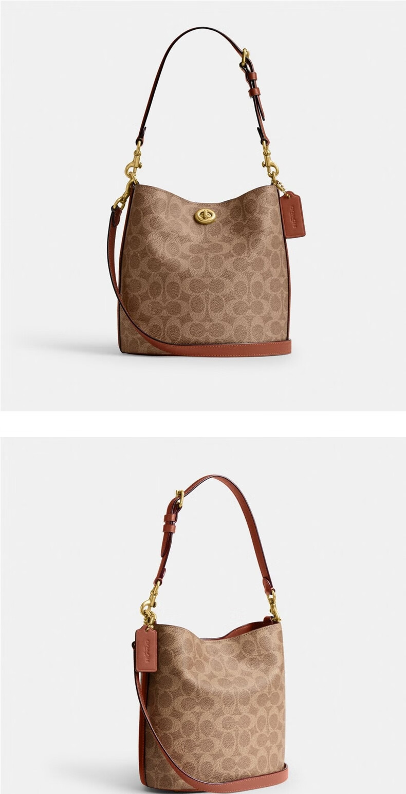COACH Gift New Women's Classic Logo WILLOW No. 19 Soft Bucket Bag Presbyopia Women's Bag B4/Brown Caramel Color