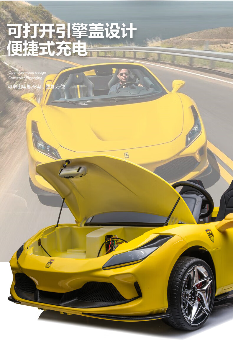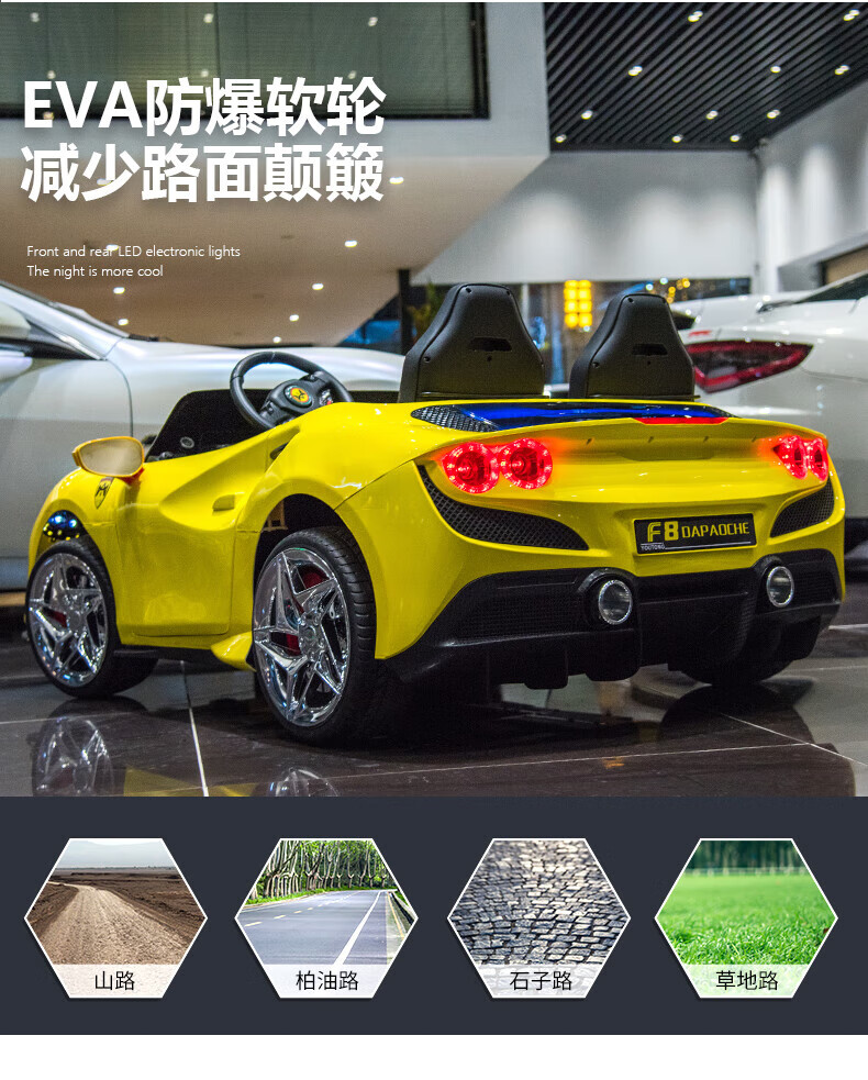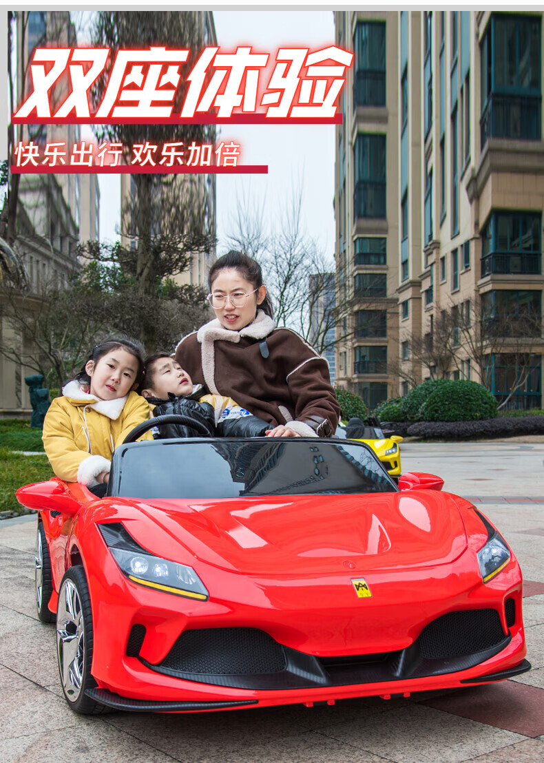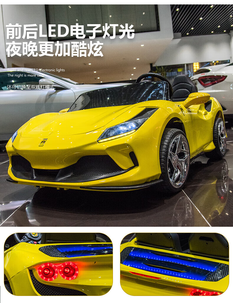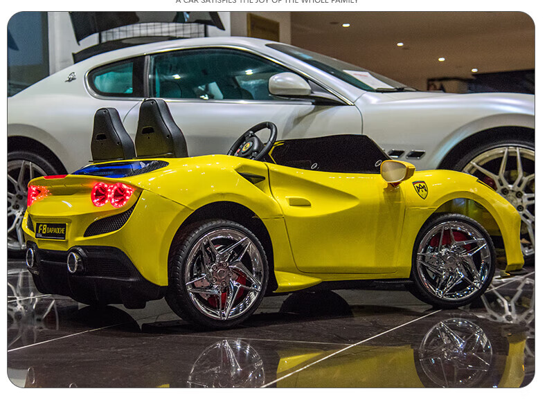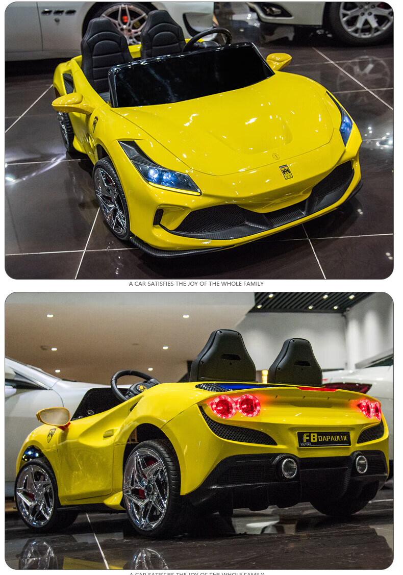 Womit children's electric car can sit on adults, children's electric car toy car can sit on people, remote control car can sit on people, top with roasted yellow | 24V large battery + leather chair + foam wheel