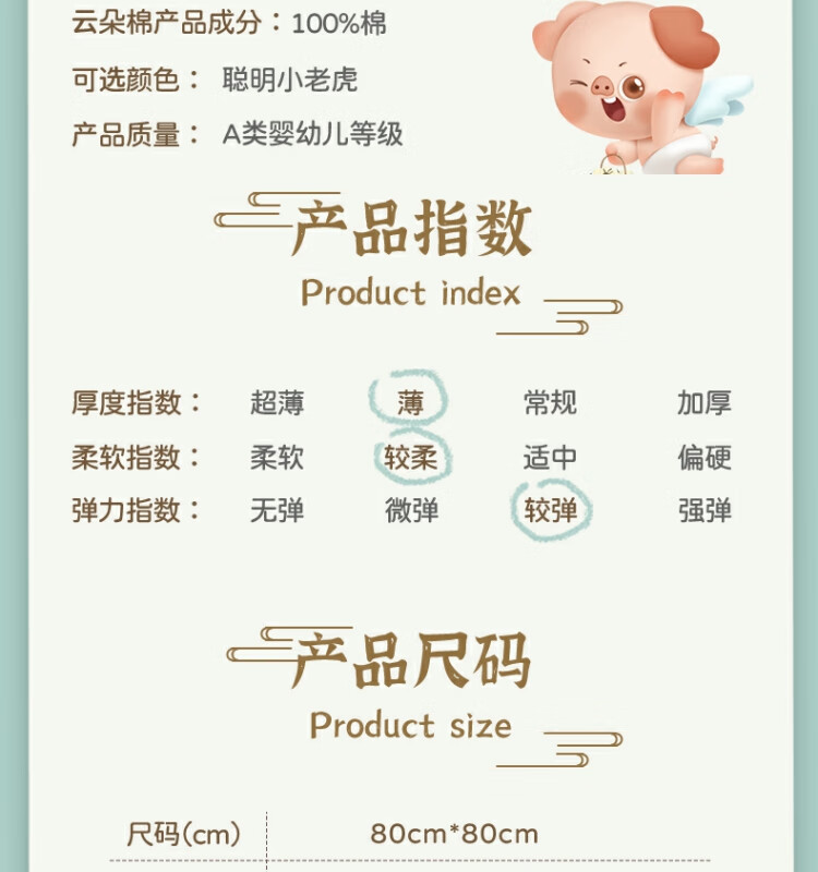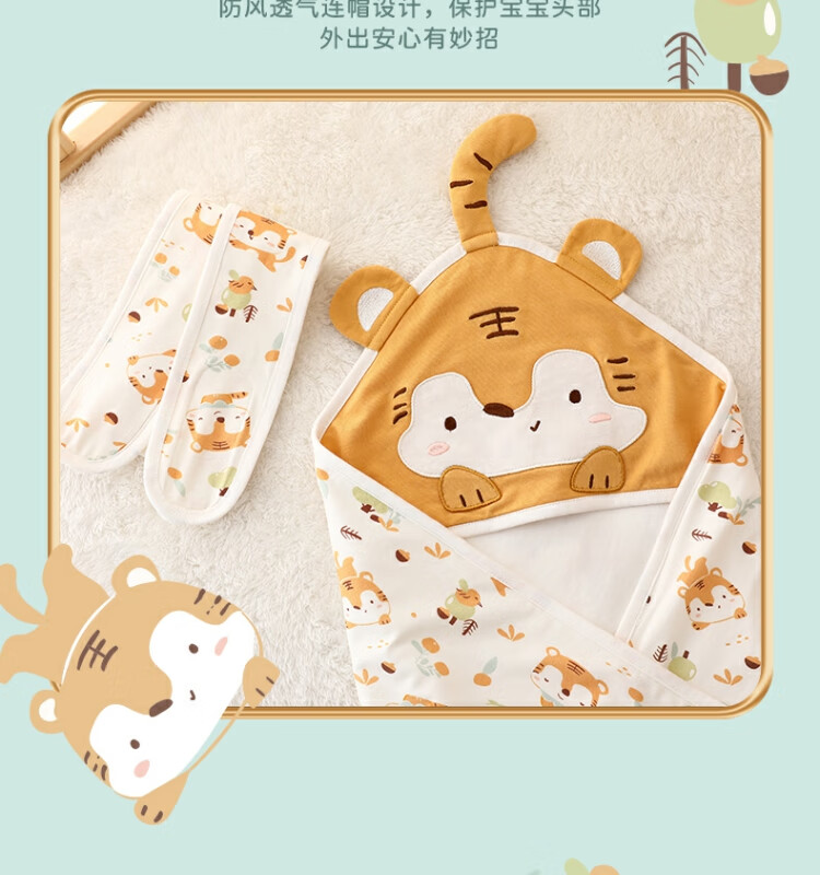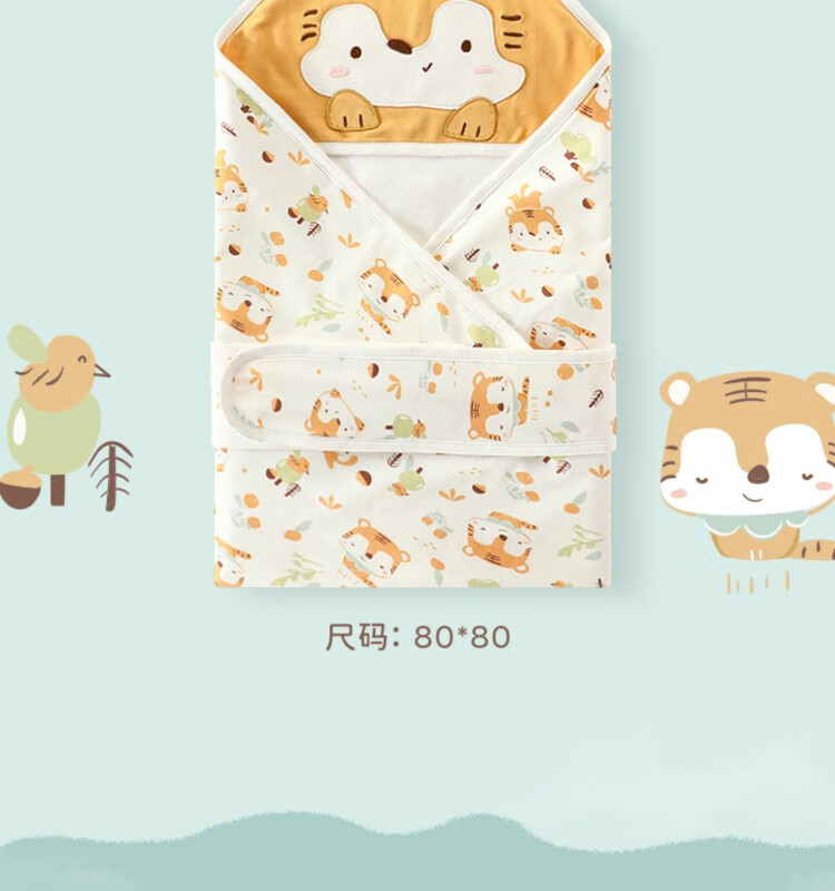Bali Piggy Newborn Baby Blanket Summer Thin Cotton Maternity Room Blanket Spring and Autumn Newborn Swaddle Brown Smart Little Tiger 80x80cm