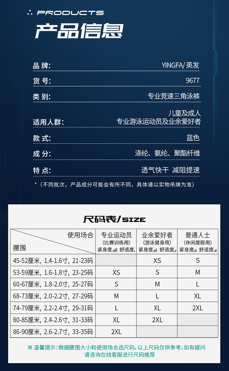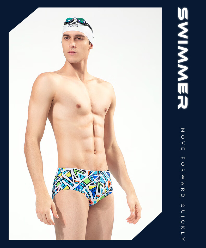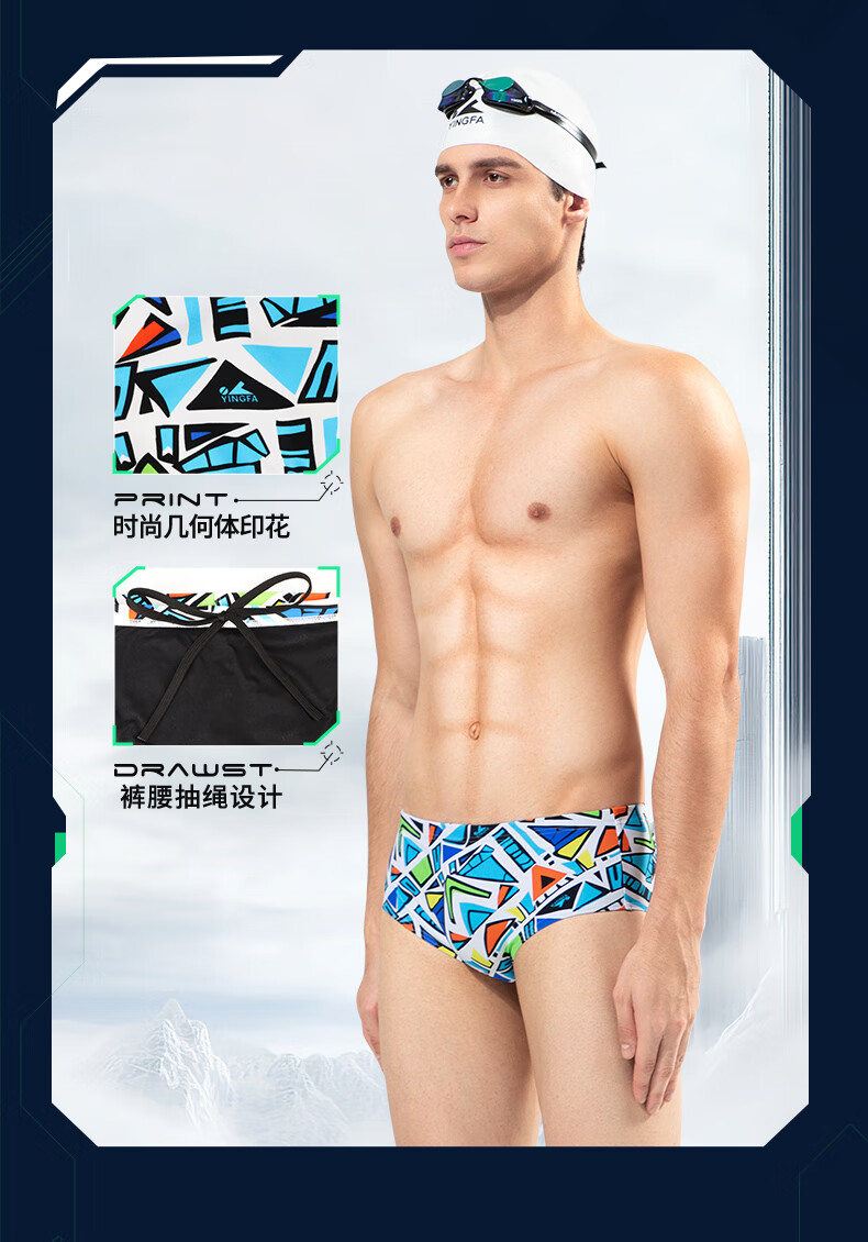 YINGFA competitive swimming trunks men's swimsuit professional racing swimming pool special briefs children's adult swimming trunks 9677 geometric print S recommended waist 60--67CM