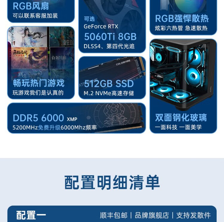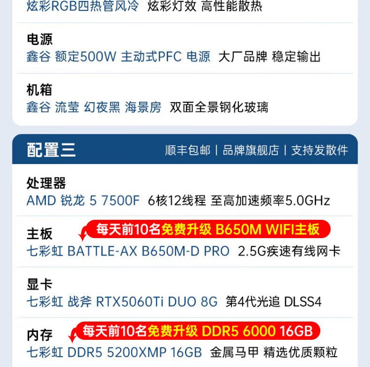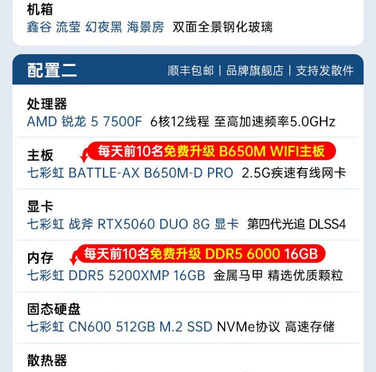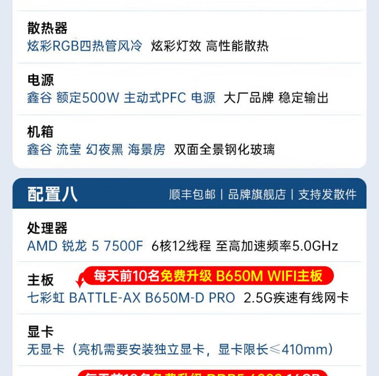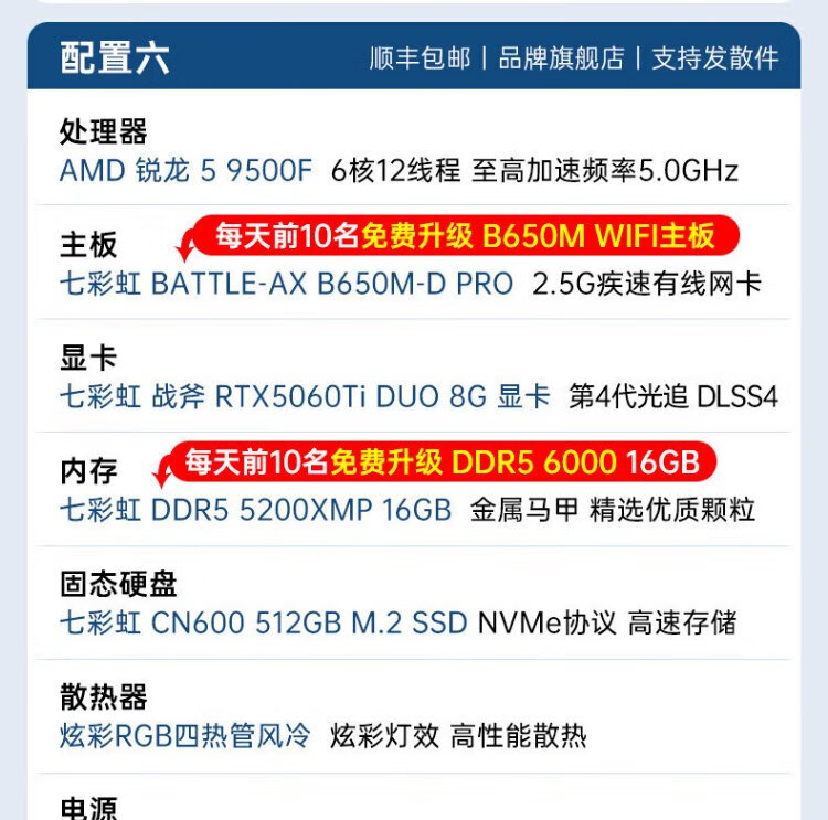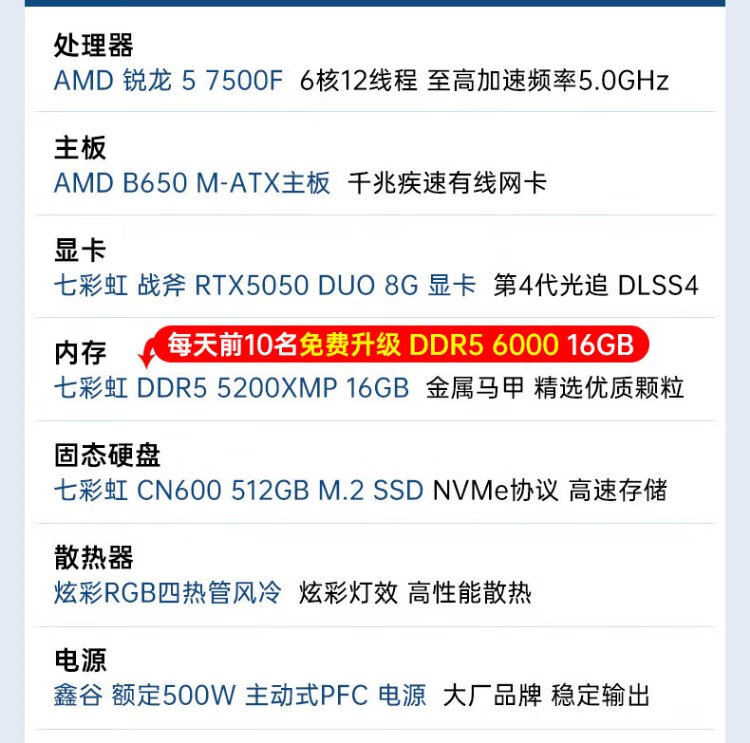 Colorful AMD computer host Ryzen R5 7500F/9500F RTX5070 RTX5060Ti desktop computer game DDR5 full set of complete machine DIY assembly machine with eight R5 7500F丨DDR5 16G丨 without graphics card
