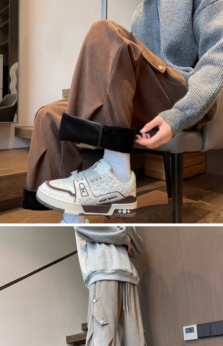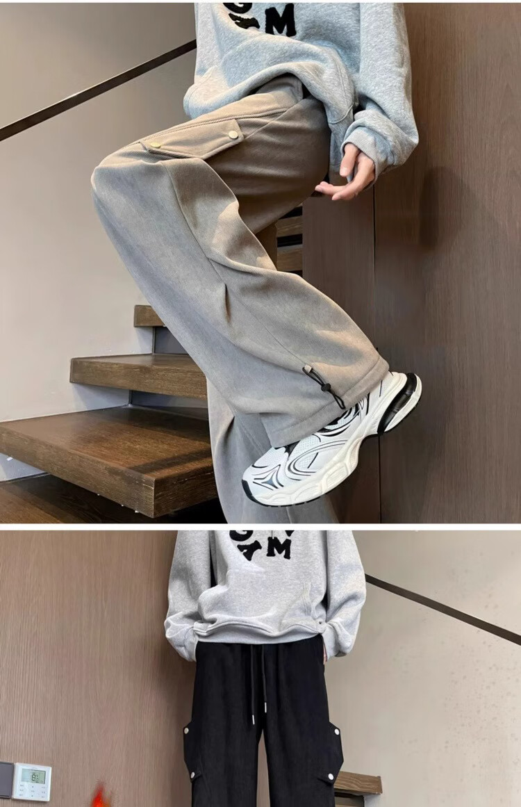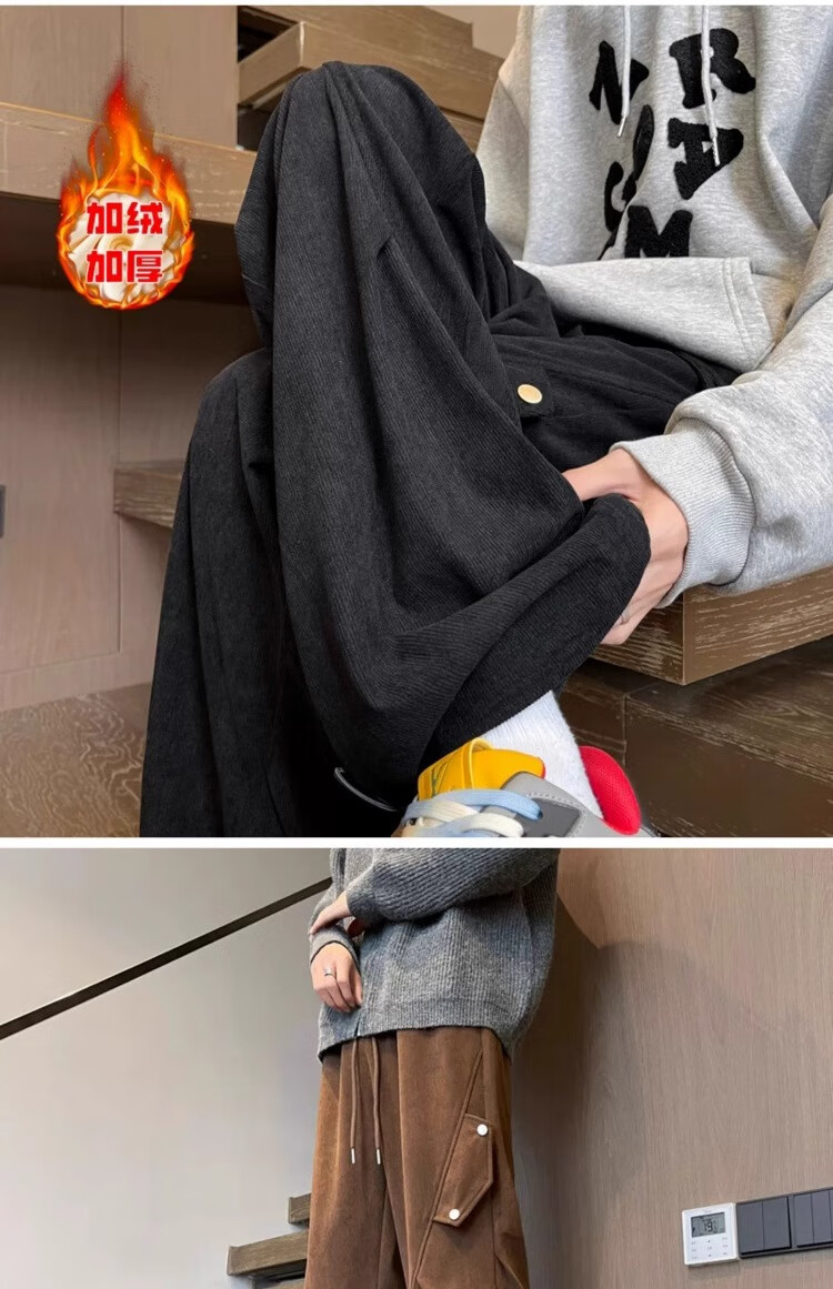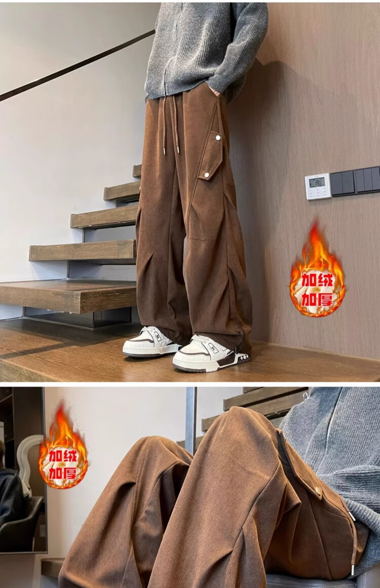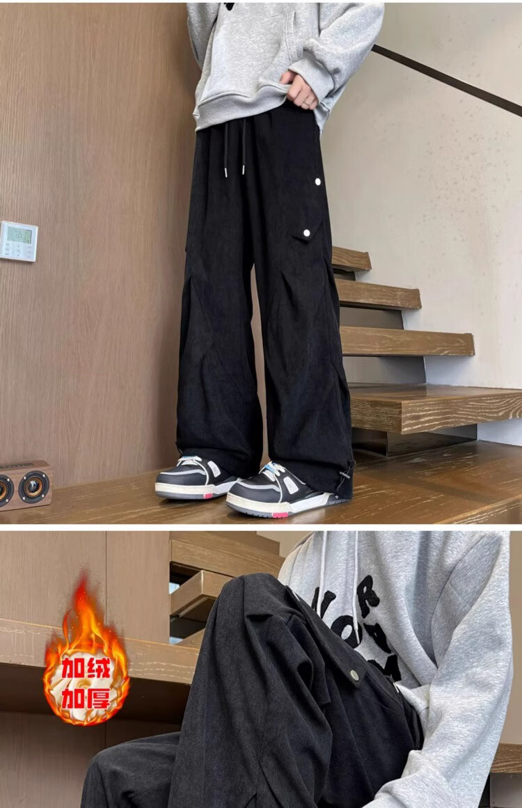RFKU corduroy pants men's spring and autumn loose casual paratrooper pants trendy brand workwear plus velvet wide-leg sports pants for men gray green XL (recommended 135-150 Jin Jin equals 0.5 kg)