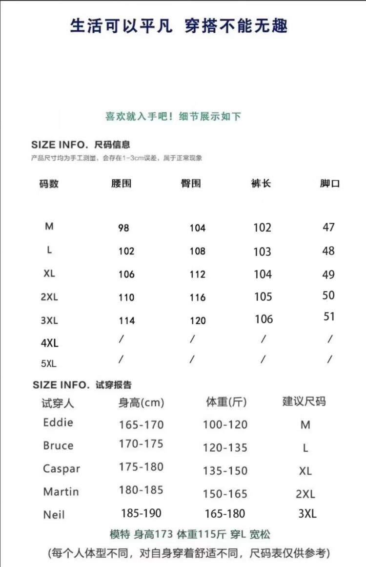 Outseam (cm) 99 cm 101.5 cm 104 cm 106.5 cm 109 cm