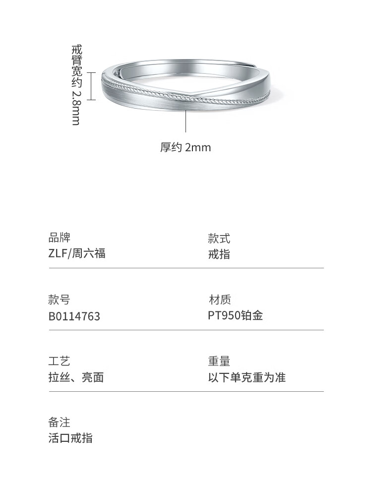 Saturday Fortune (ZLF) pt950 platinum ring for men and women, simple shiny versatile proposal couple ring No. 13-2.11g