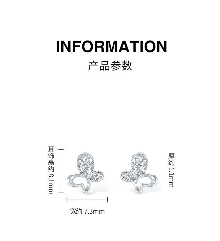 ZLF (ZLF) pt950 platinum earrings for women, simple car flower shiny butterfly earrings for girlfriend, one pair - 1.69g