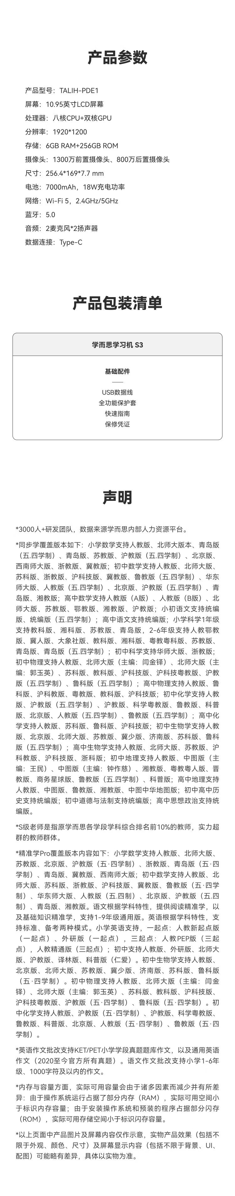 Xueersi Learning Machine S3 learning tablet from primary school to high school curriculum synchronized for all subjects and all ages AI computer for junior high school and pre-school children special eye protection screen BJ70 Learning Machine S3 comes with stylus + rights card + Qingbei book with full-featured protective case