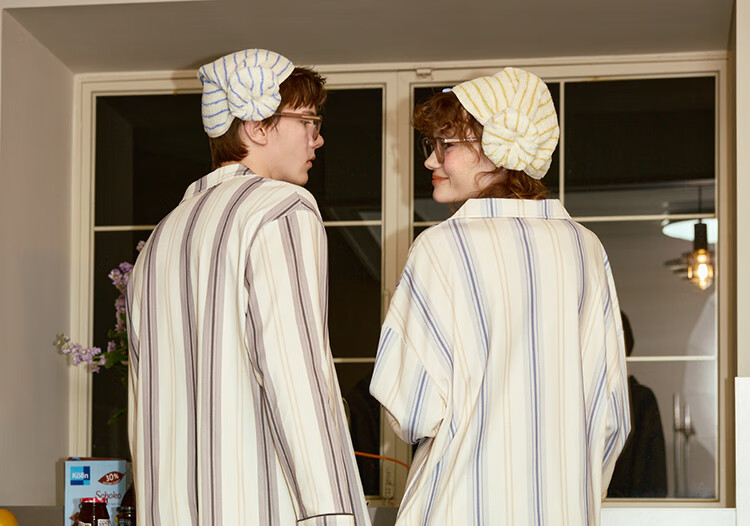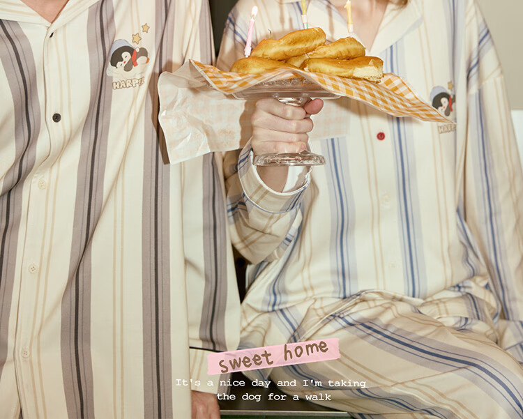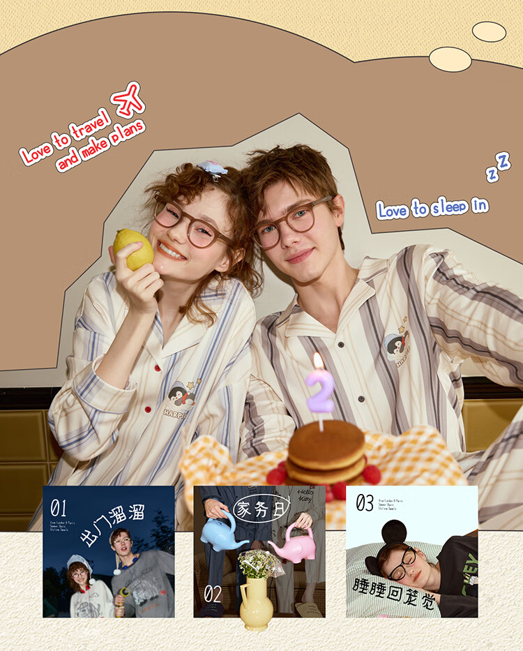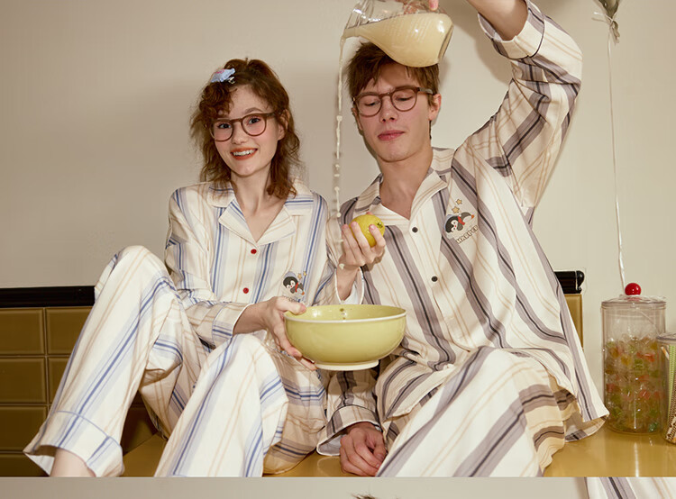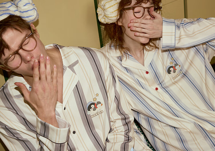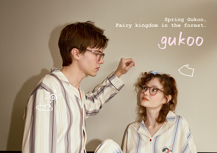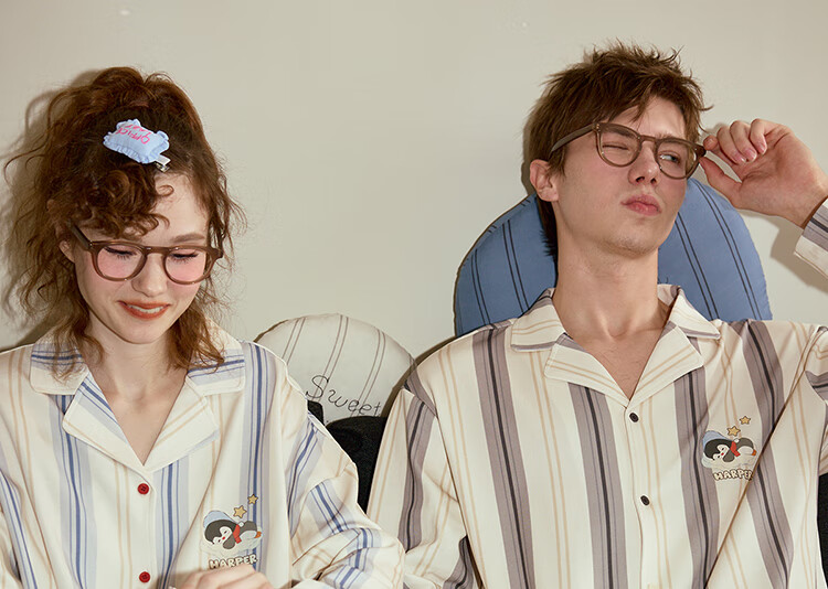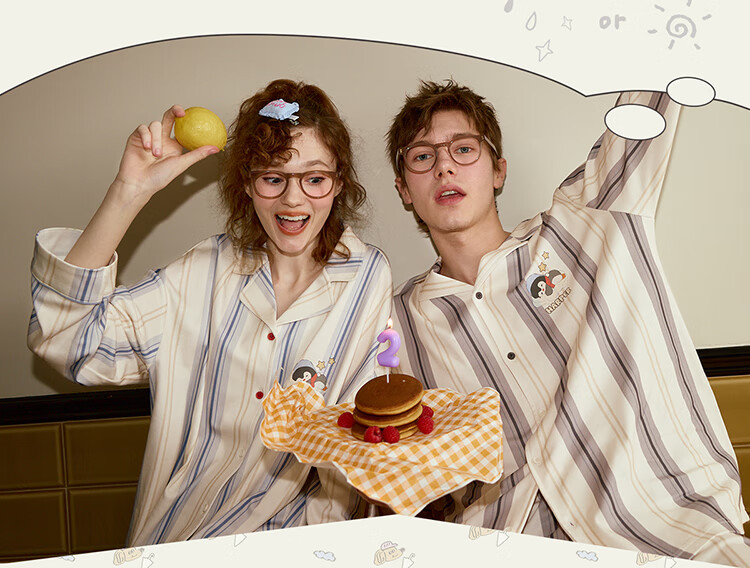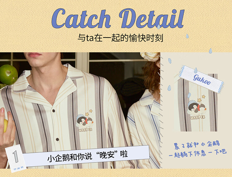 Gukoo Couple Pajamas 25 Spring Little Penguin Pure Cotton Striped Women's Home Clothes A Little Penguin Couple Pajamas L Women