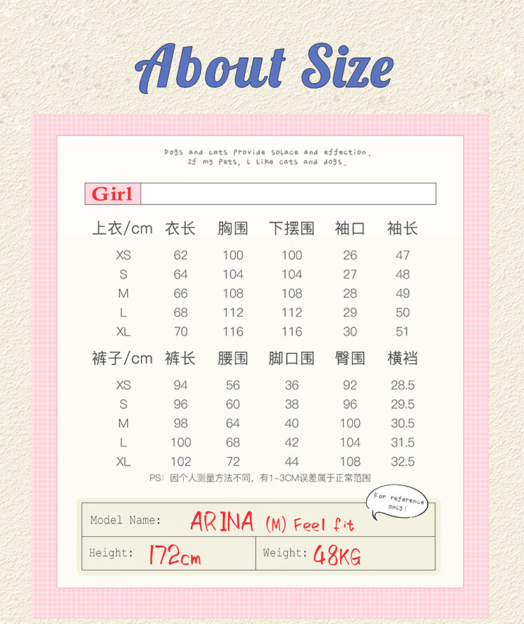China (cm) 160-165/84-86 165-170 / 88-90 167-172 / 92-96 168-173 / 98-102 170-176 / 106-110