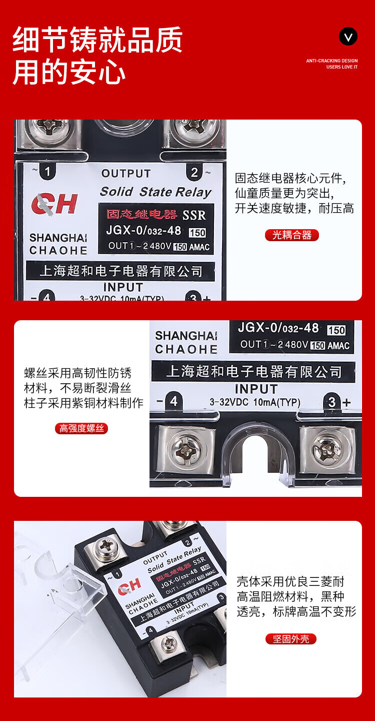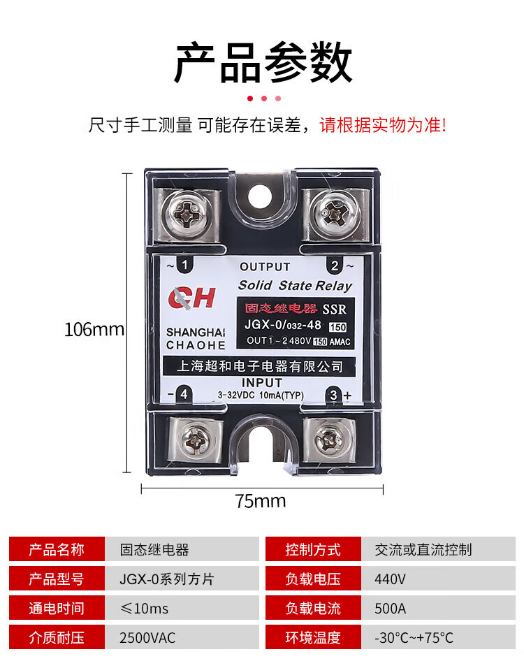 Solid state relay JGX-0/032-48 (60-150A series) DC controlled AC 480V JGX-150A