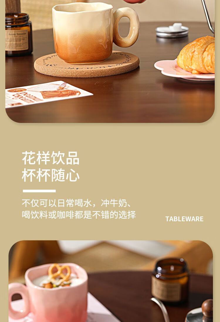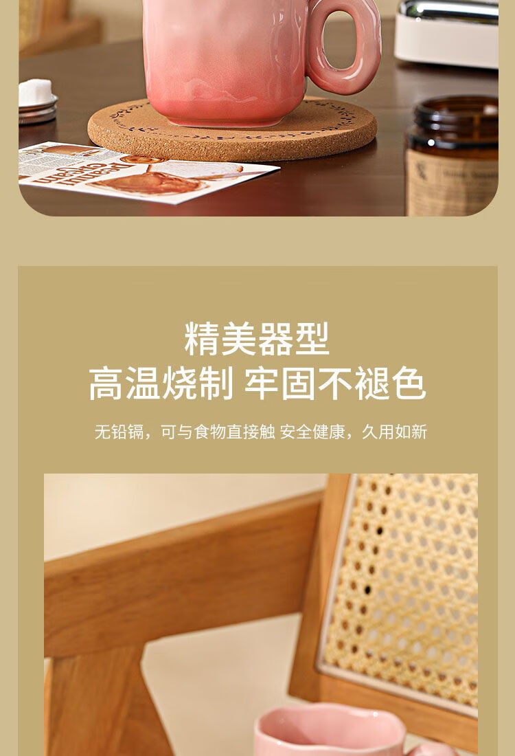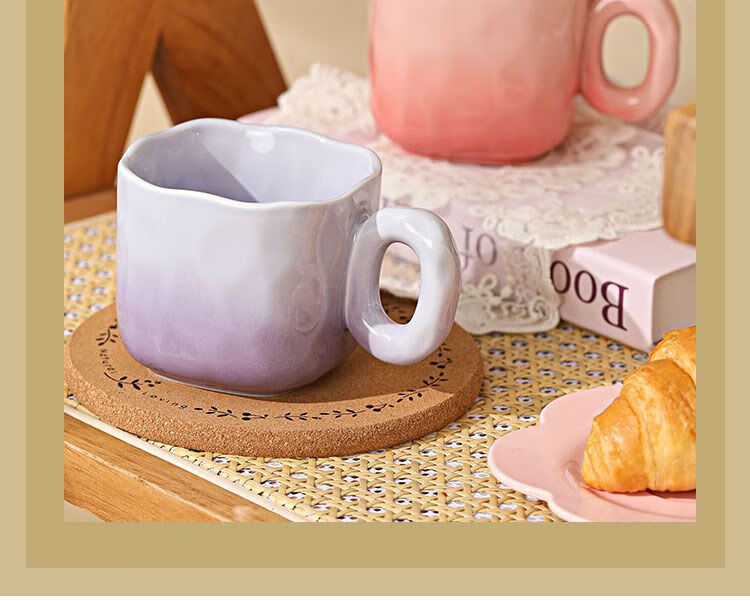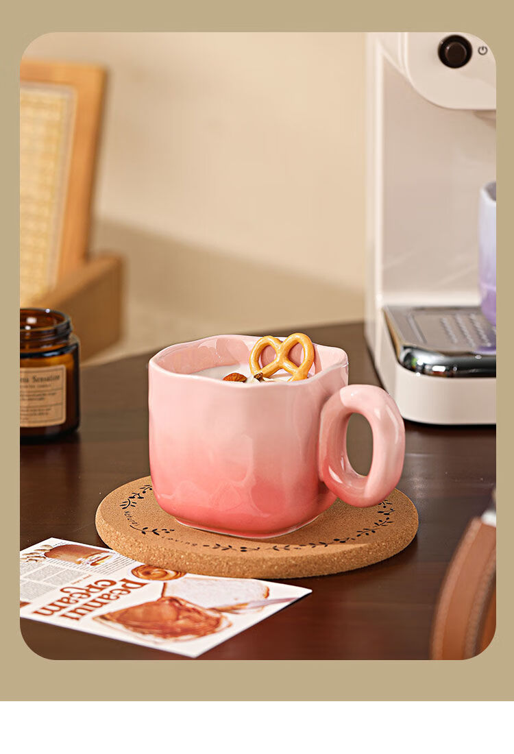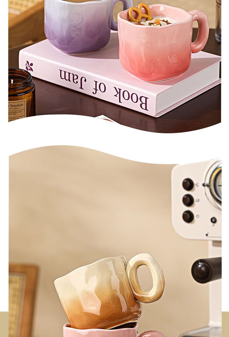 High-looking Gradient Mug Ceramic Household Milk and Water Cup for Girls Couple Breakfast Drinking Coffee Cup Gradient Mug 350ml Pink