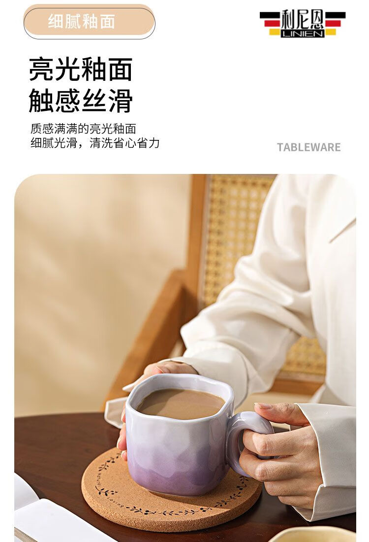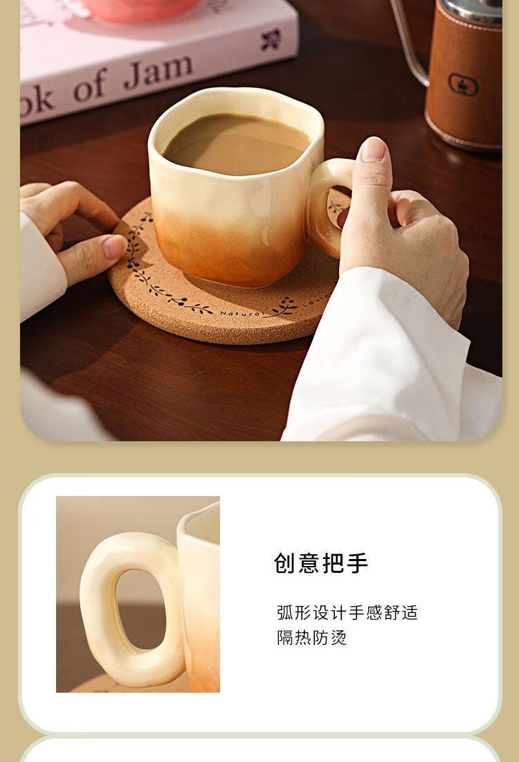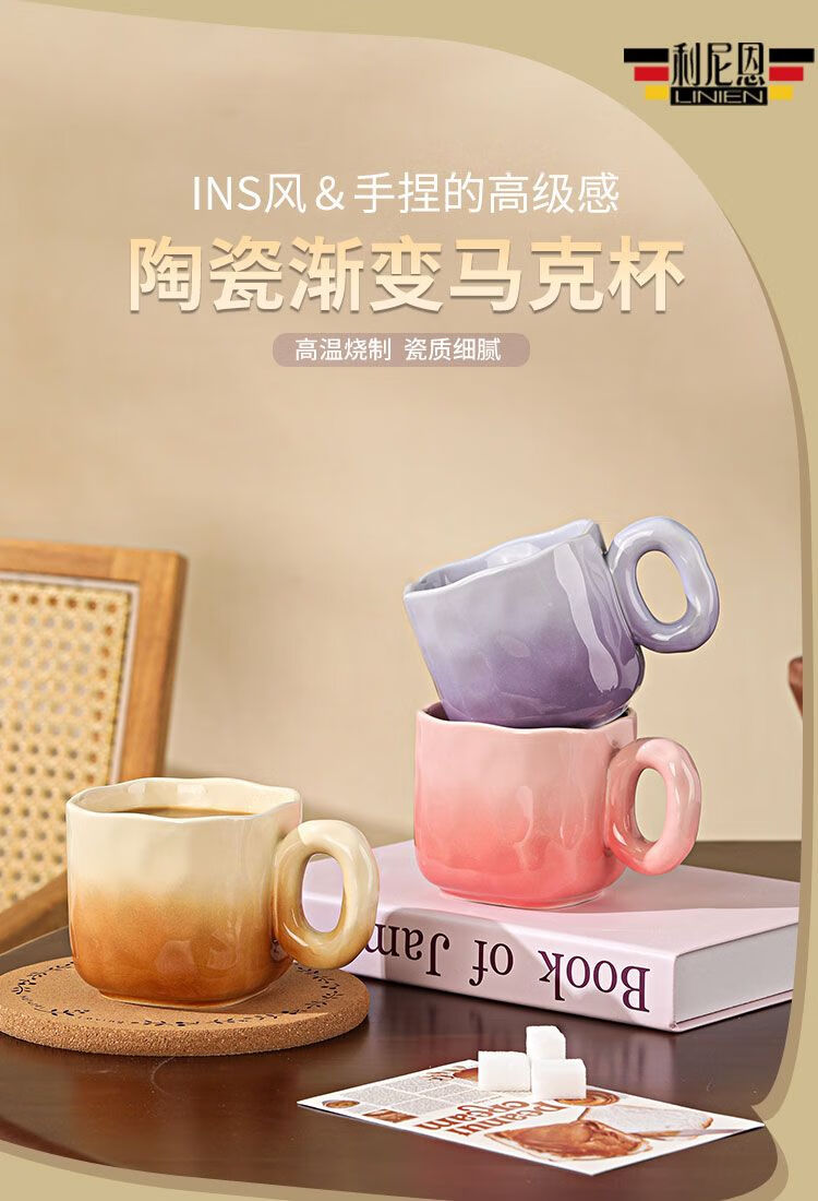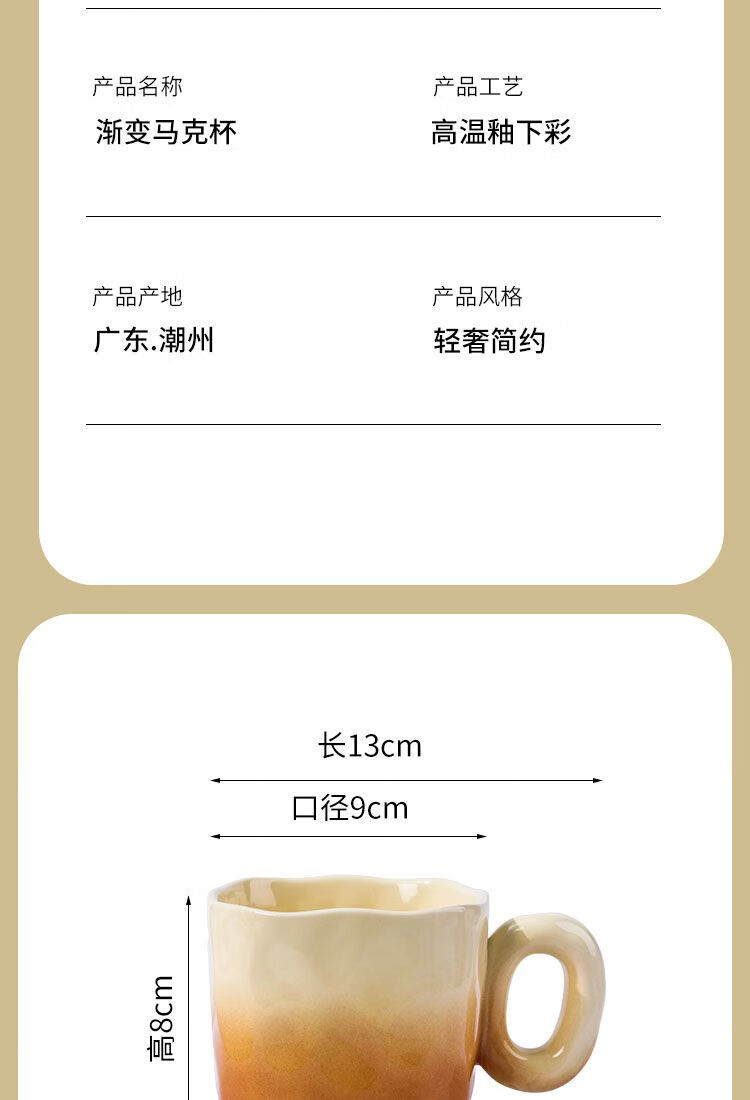 High-looking Gradient Mug Ceramic Household Milk and Water Cup for Girls Couple Breakfast Drinking Coffee Cup Gradient Mug 350ml Pink