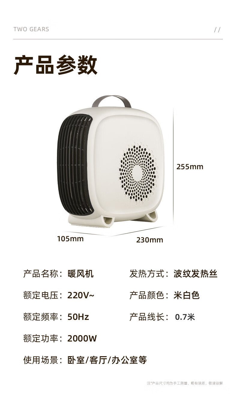 Yangtze heater household heater electric heater desktop small electric heater hot air heater electric heater energy saving small electric oven hot air fan single temperature control - off-white best-selling on the entire network