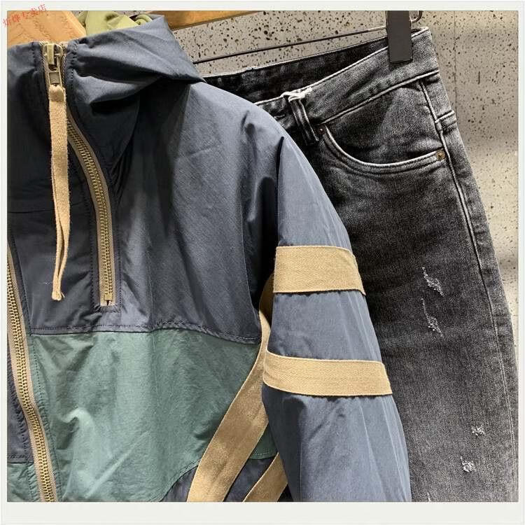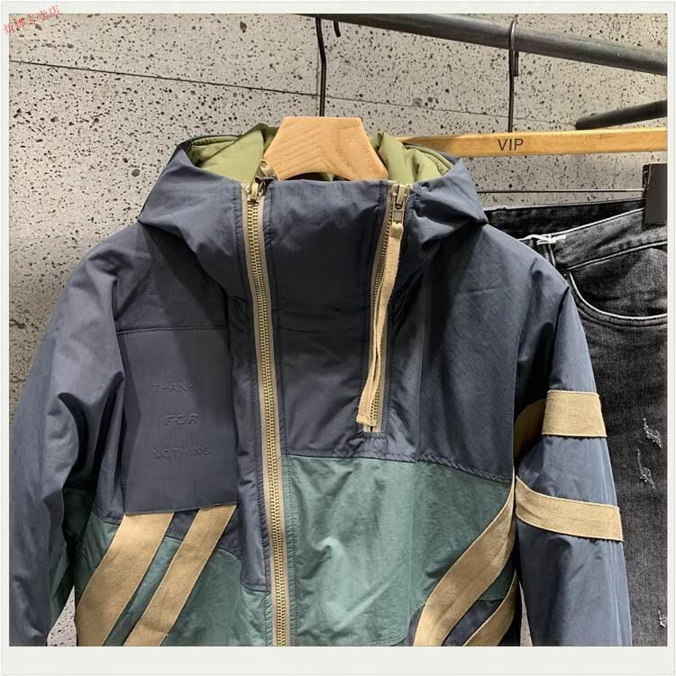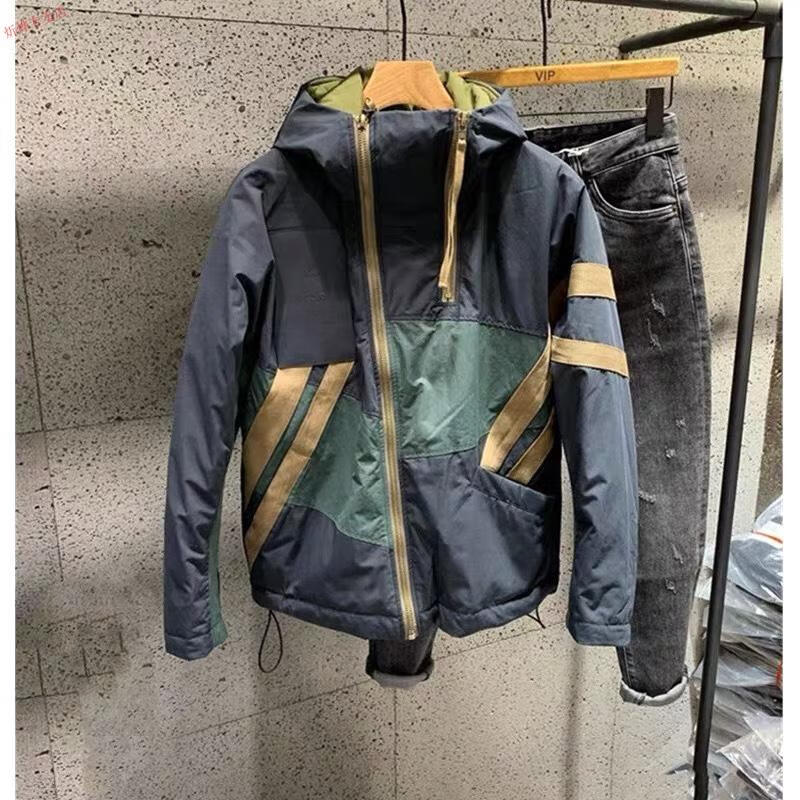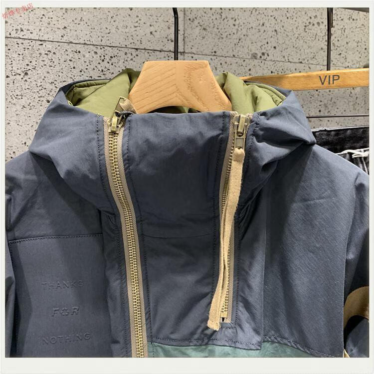 Jeep (JEEP) new winter style Hong Kong trendy brand diagonal zipper hooded cotton jacket for men, loose and versatile, contrasting color thickening jacket, navy blue 2XL recommended 140-160Jin Jin equals 0.5kg