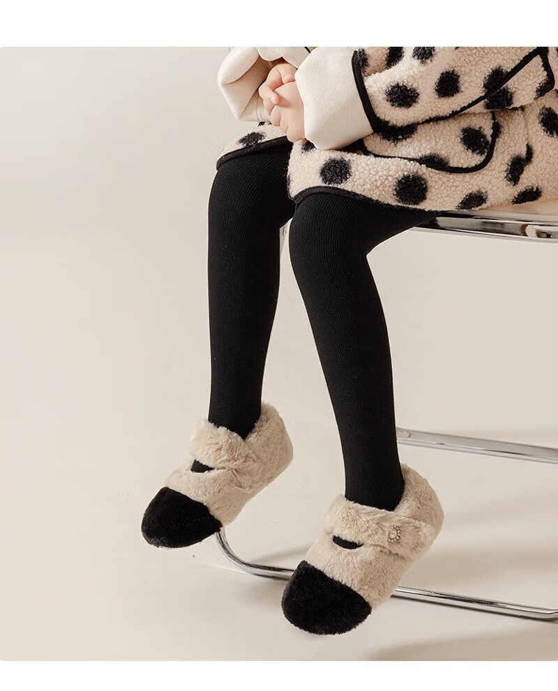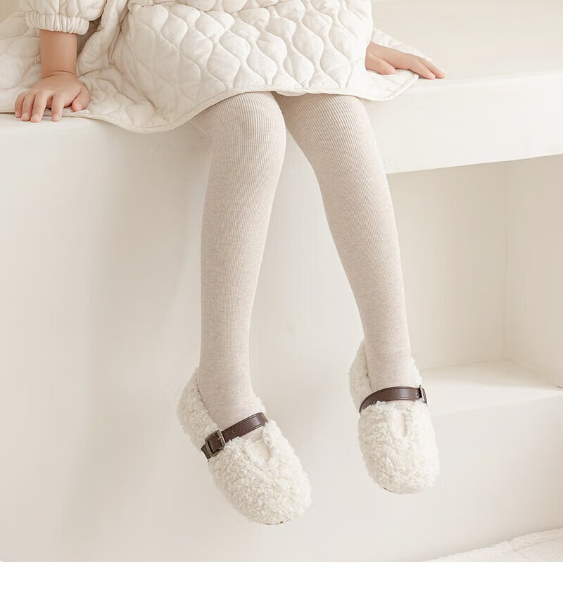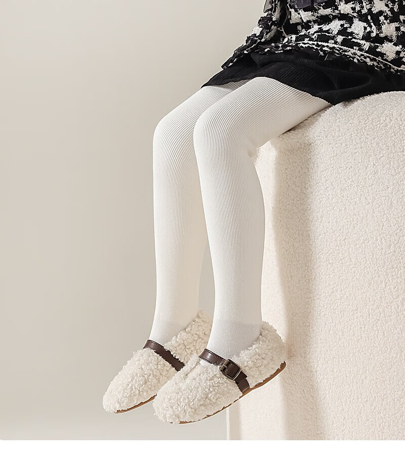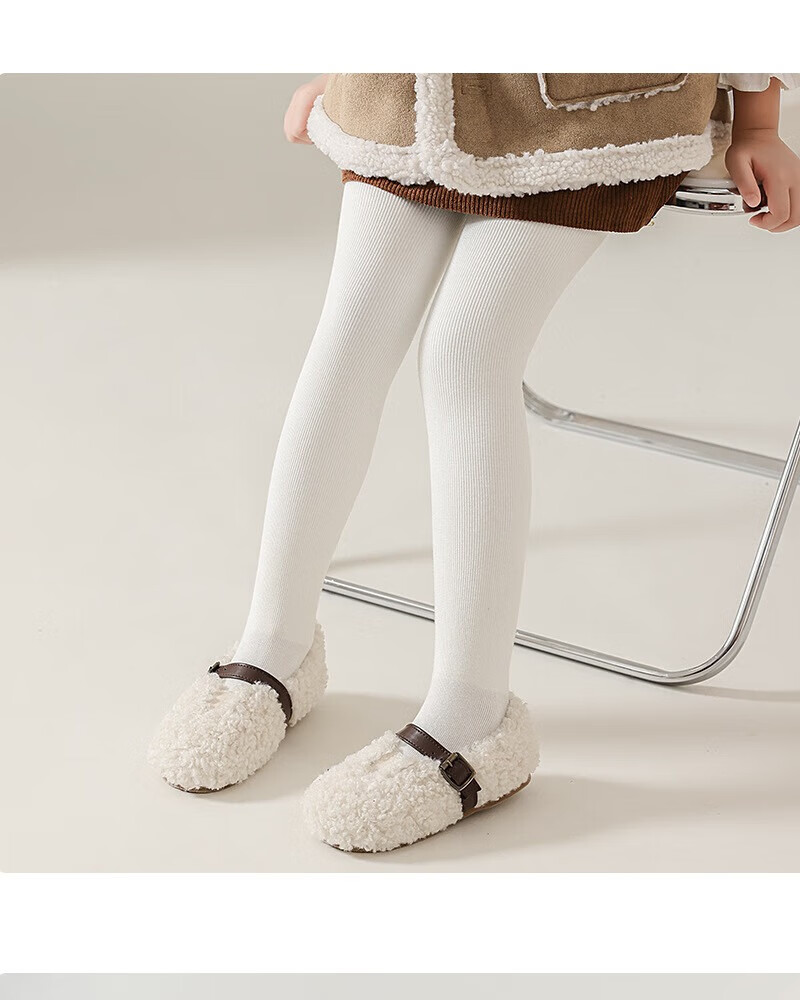 Feiyuejia girls' pantyhose autumn and winter velvet thickened children's leggings for outer wear solid color medium and large children's one-piece velvet leggings white (with feet) 1 piece one size fits all (M) 100-115CM - pants length 60