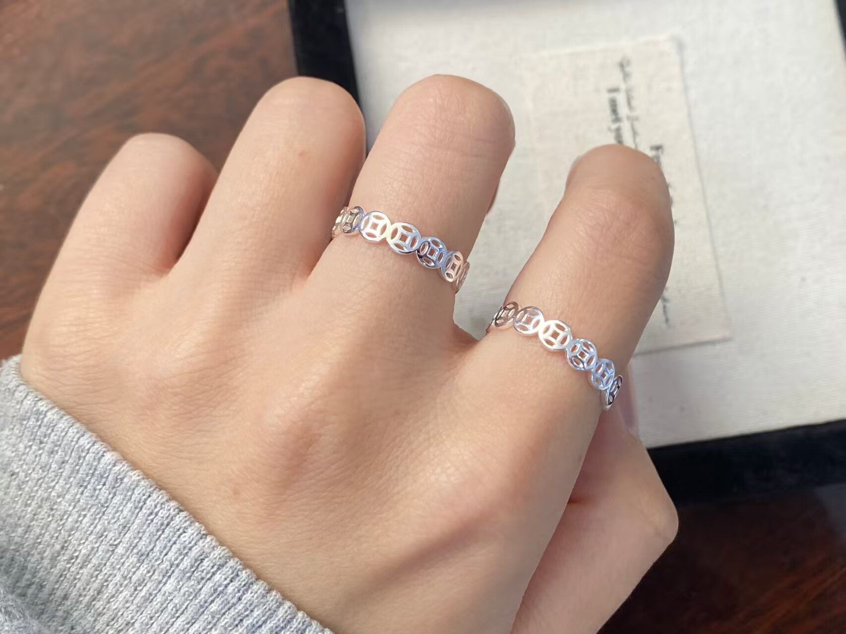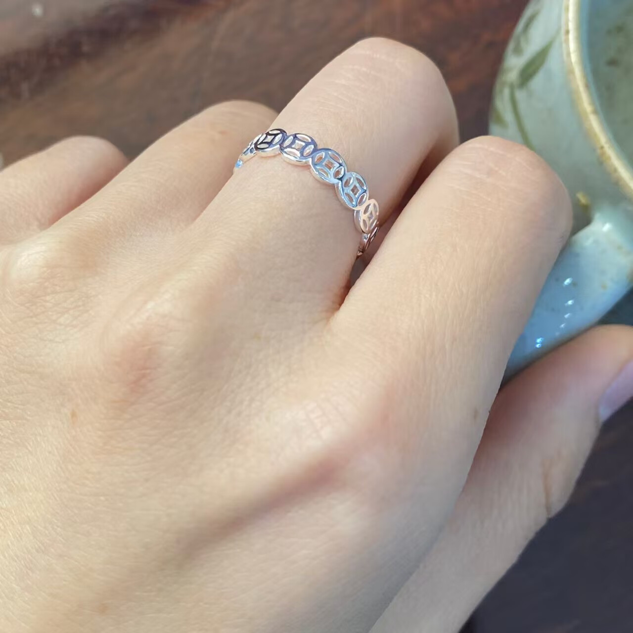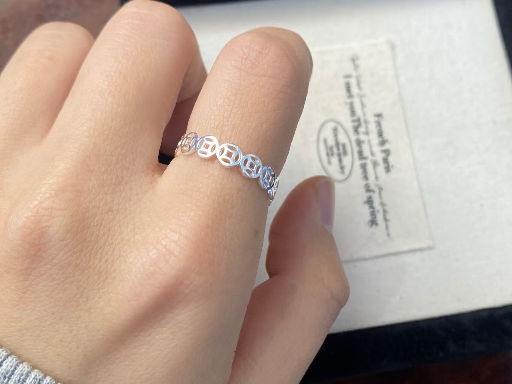 Five Emperor Coins, copper coins, 999 sterling silver ring, closed index finger ring, retro Chinese style full silver tail ring gift, No. 18 gold store number, free packaging