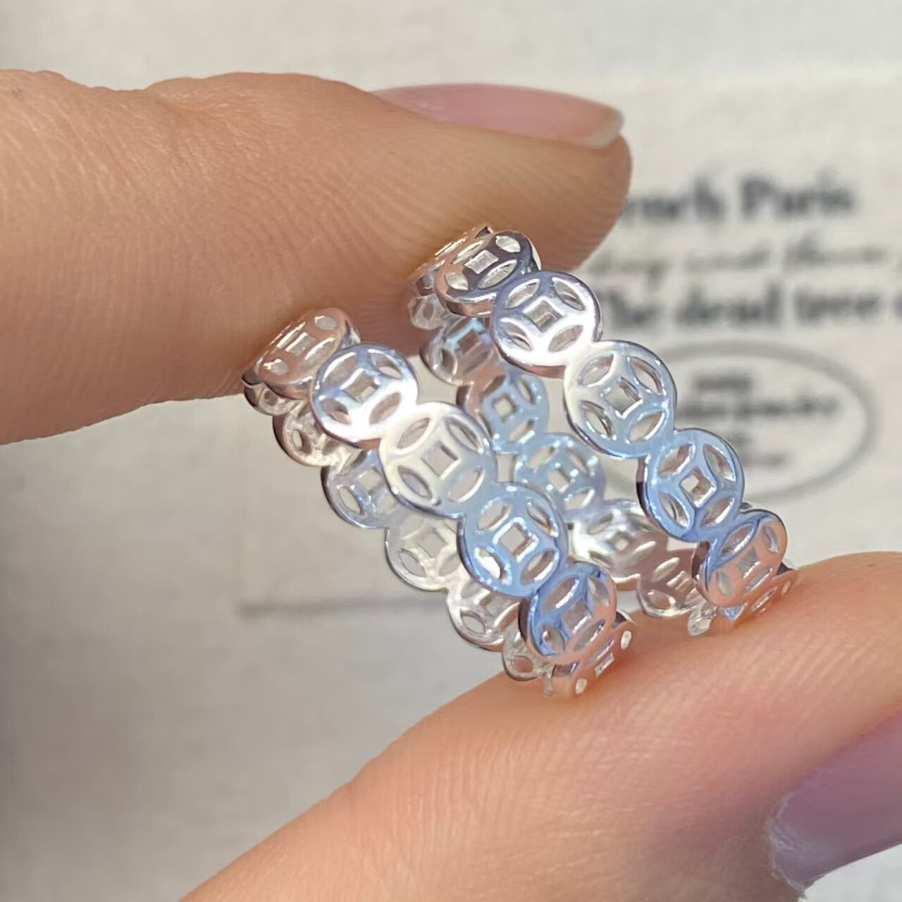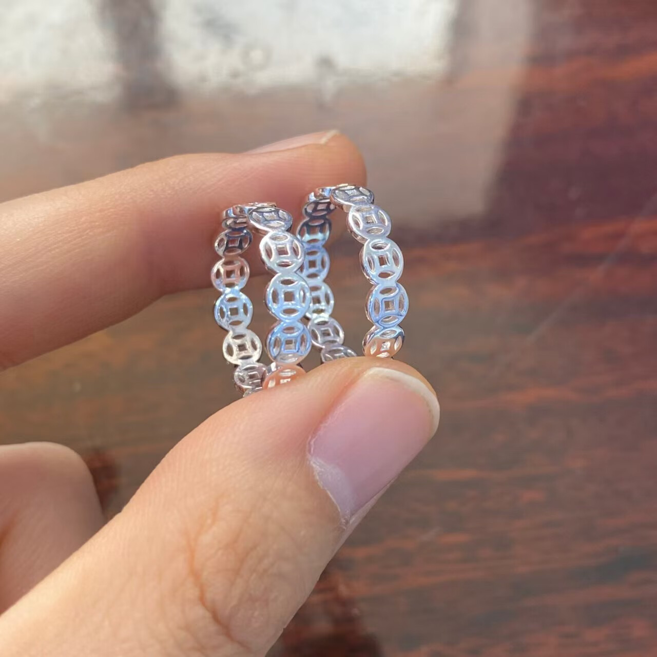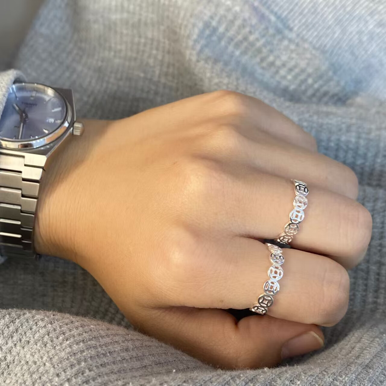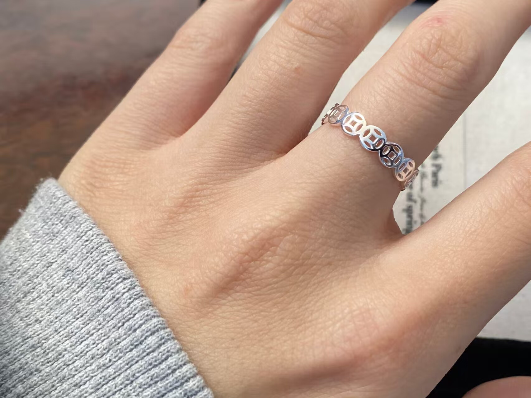 Five Emperor Coins, copper coins, 999 sterling silver ring, closed index finger ring, retro Chinese style full silver tail ring gift, No. 18 gold store number, free packaging