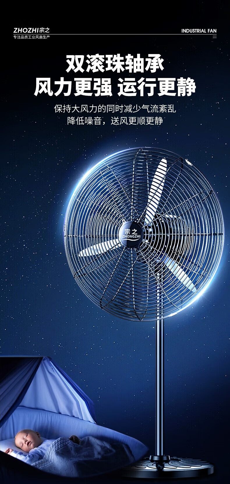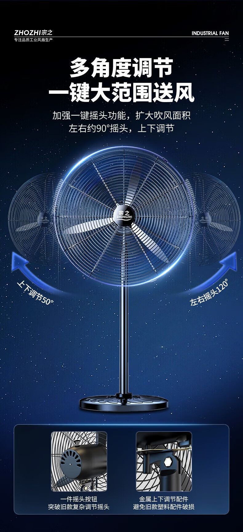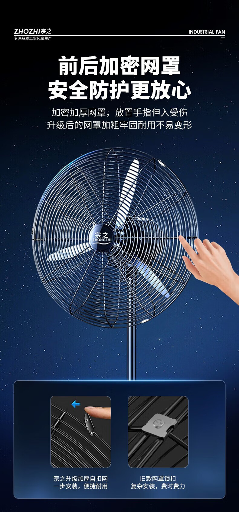 Zongzhi high-power industrial electric fan powerful floor fan shaking head wall-mounted fan air volume horn fan mechanical 500 classic wall-mounted plastic leaf model (copper wire electric fan