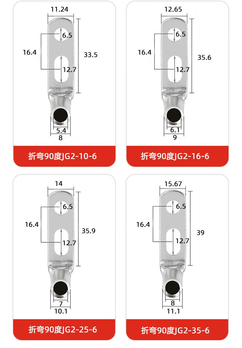 Yizhan double-hole copper nose JG2-10/16/25/35-6 Huawei Cisco mobile original double-hole copper terminal L-shaped right angle Huawei double-hole copper nose JG2-35-6 (90-degree bending) (authenticity guaranteed) 220 24-hour delivery