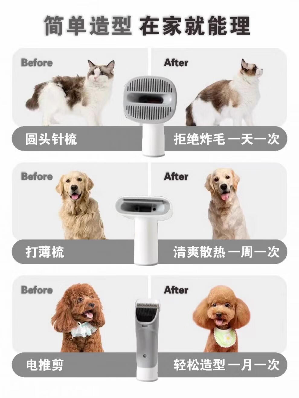 OIMG pet care hair extractor cat and dog vacuum cleaner all-in-one hair trimmer electric clipper shaving suction comb water blower multifunctional hair trimmer (one machine with five functions, combing, shaving, and knotting)