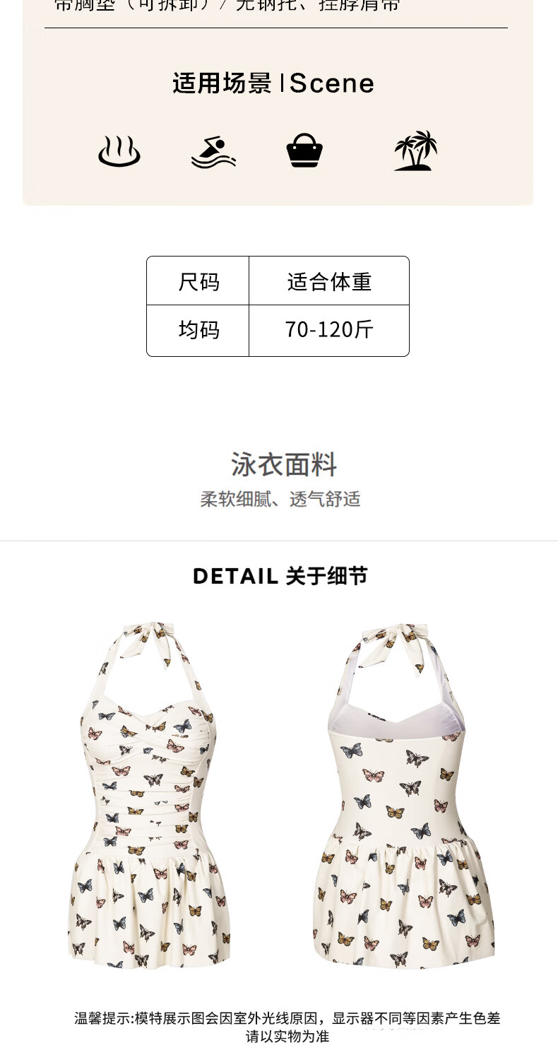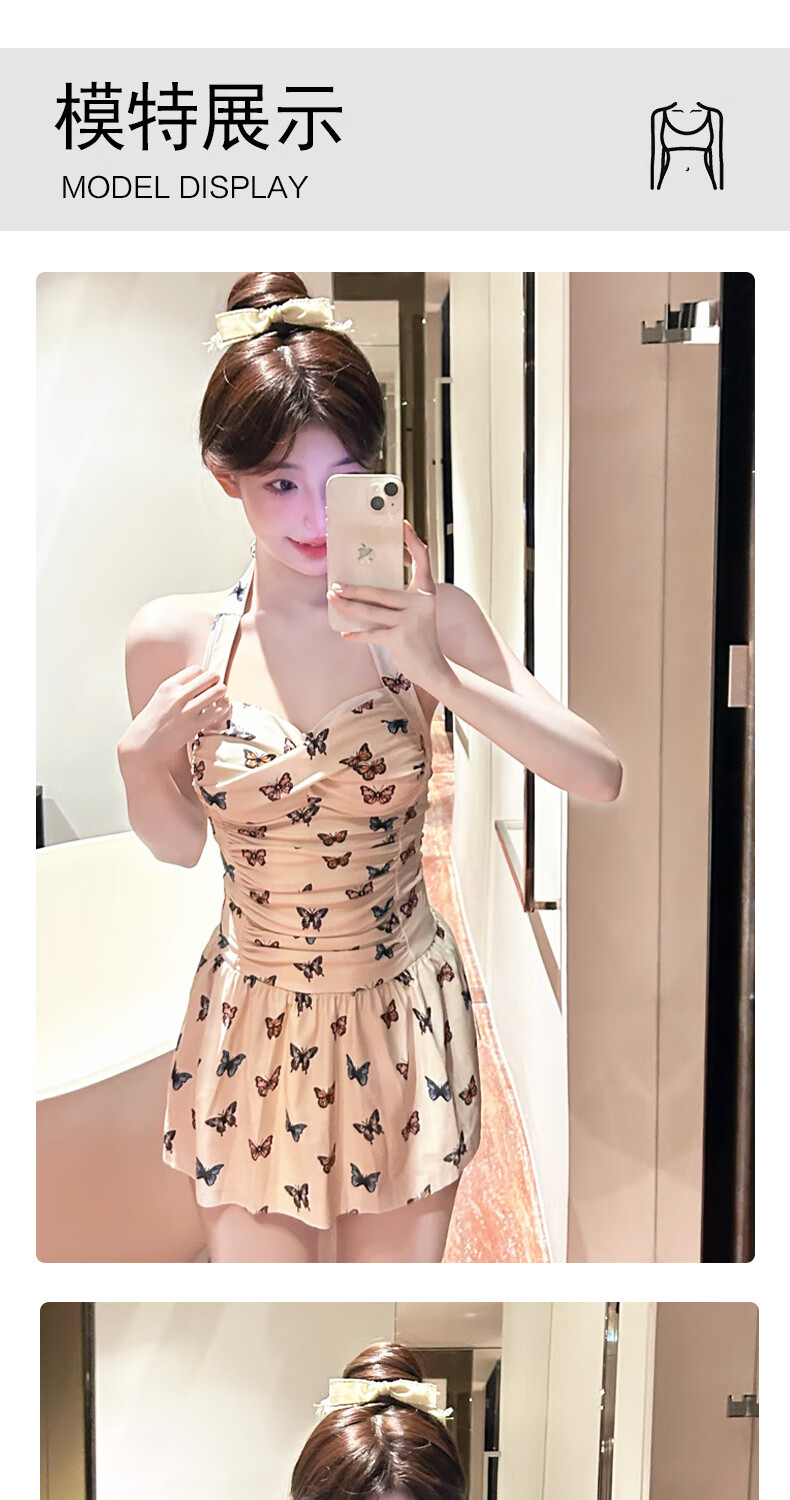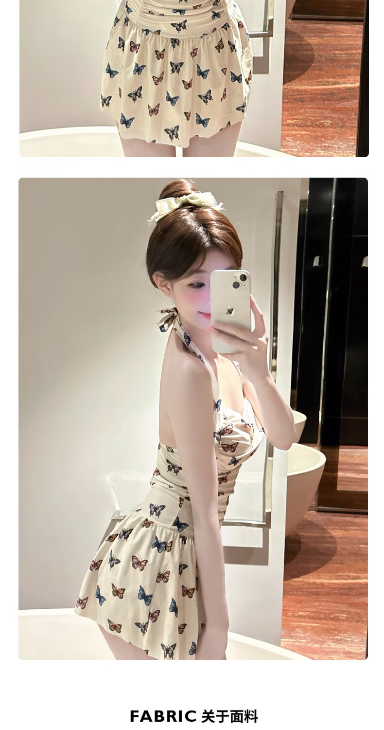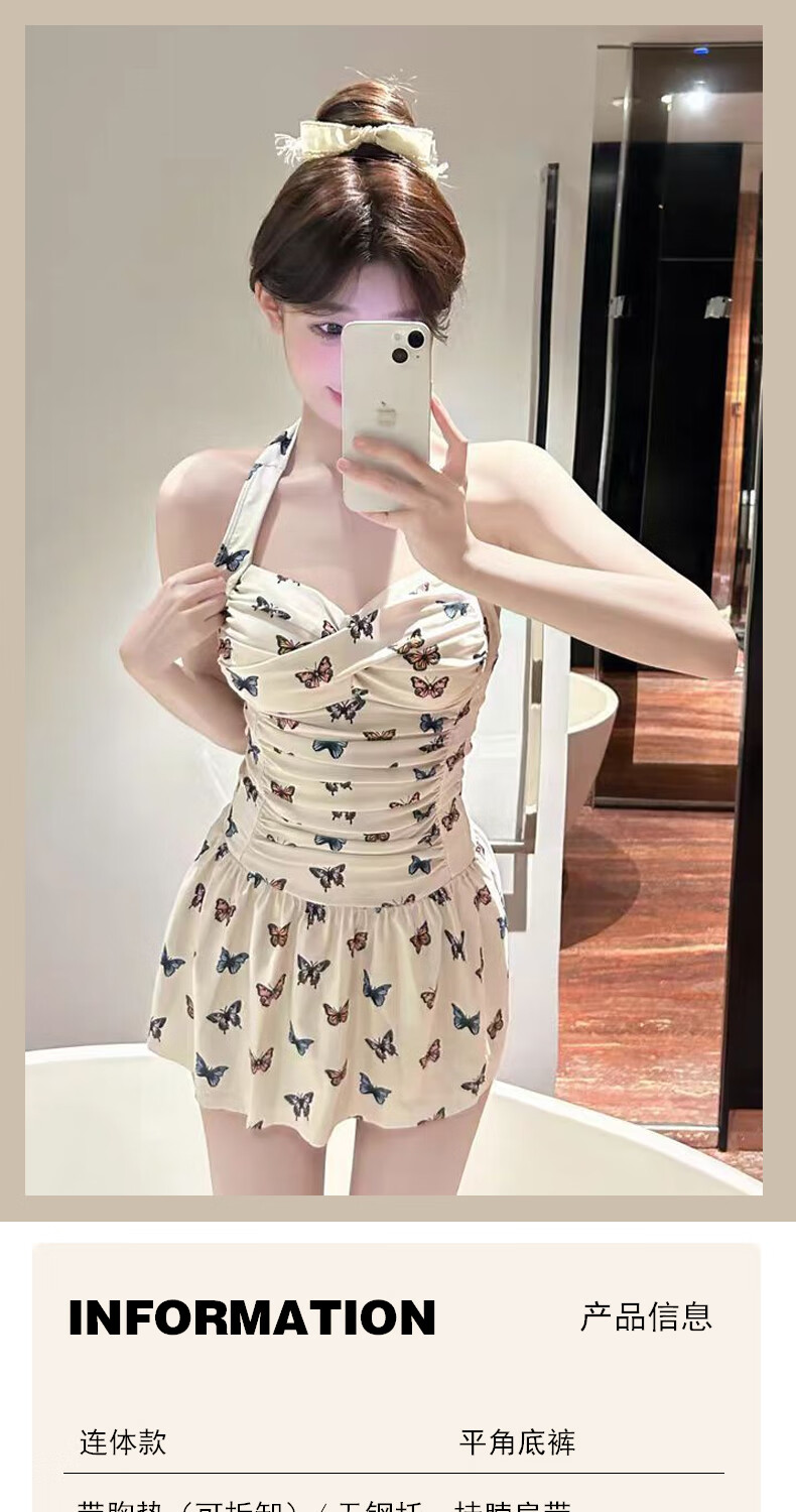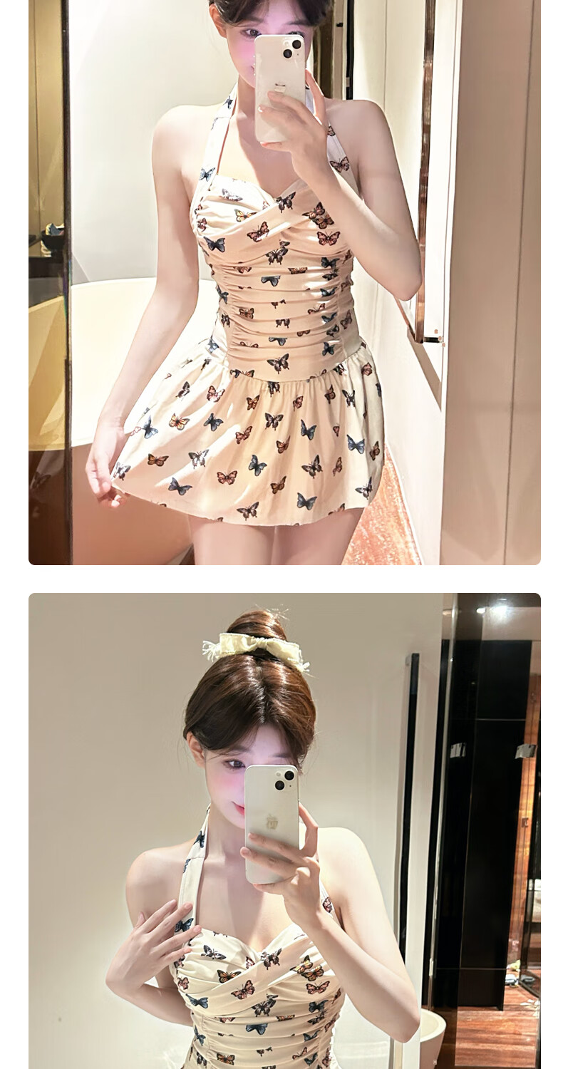 Bo Na Ling Swimsuit Pure Desire Ins Style Retro Girl Conservative Body Covering and Slimming Halter One-piece Skirt Swimsuit Hot Spring Swimsuit Butterfly Print Swimsuit One Size 70-120 Jin Jin is equal to 0.5 kg