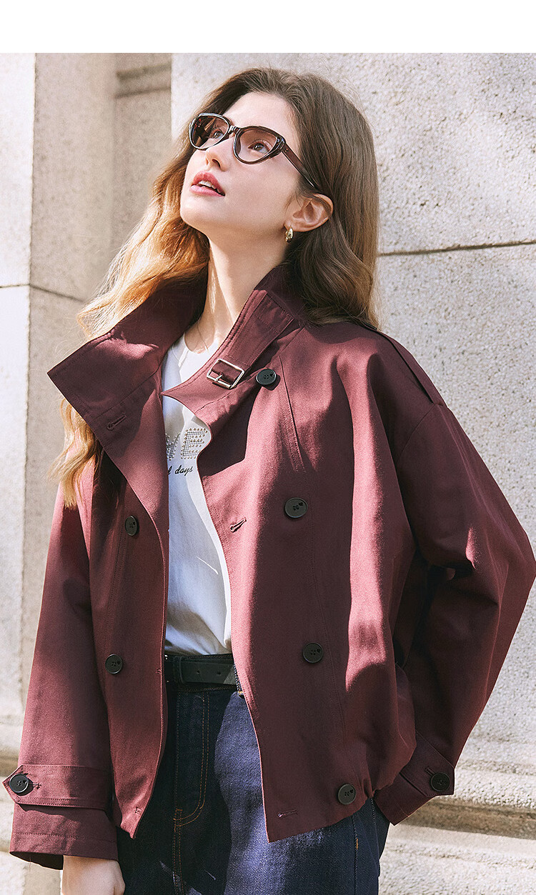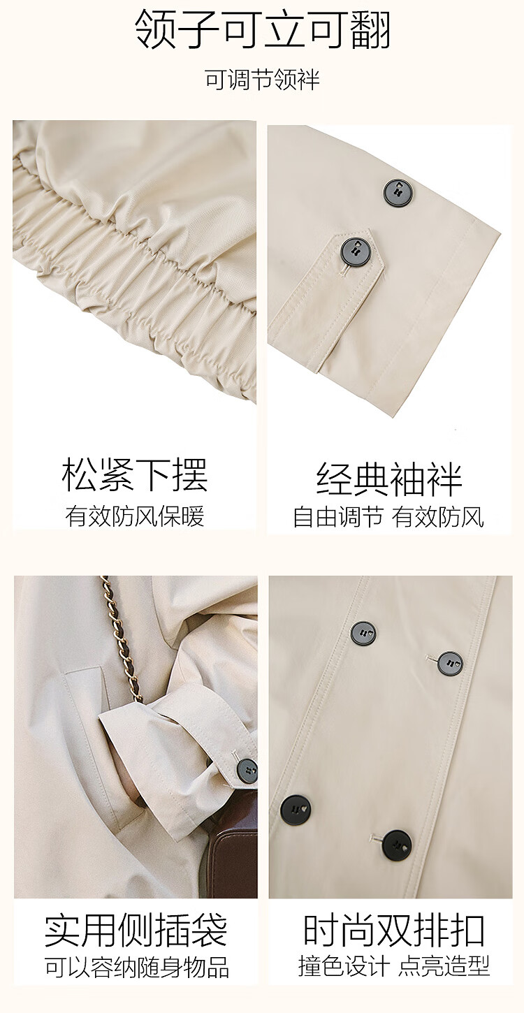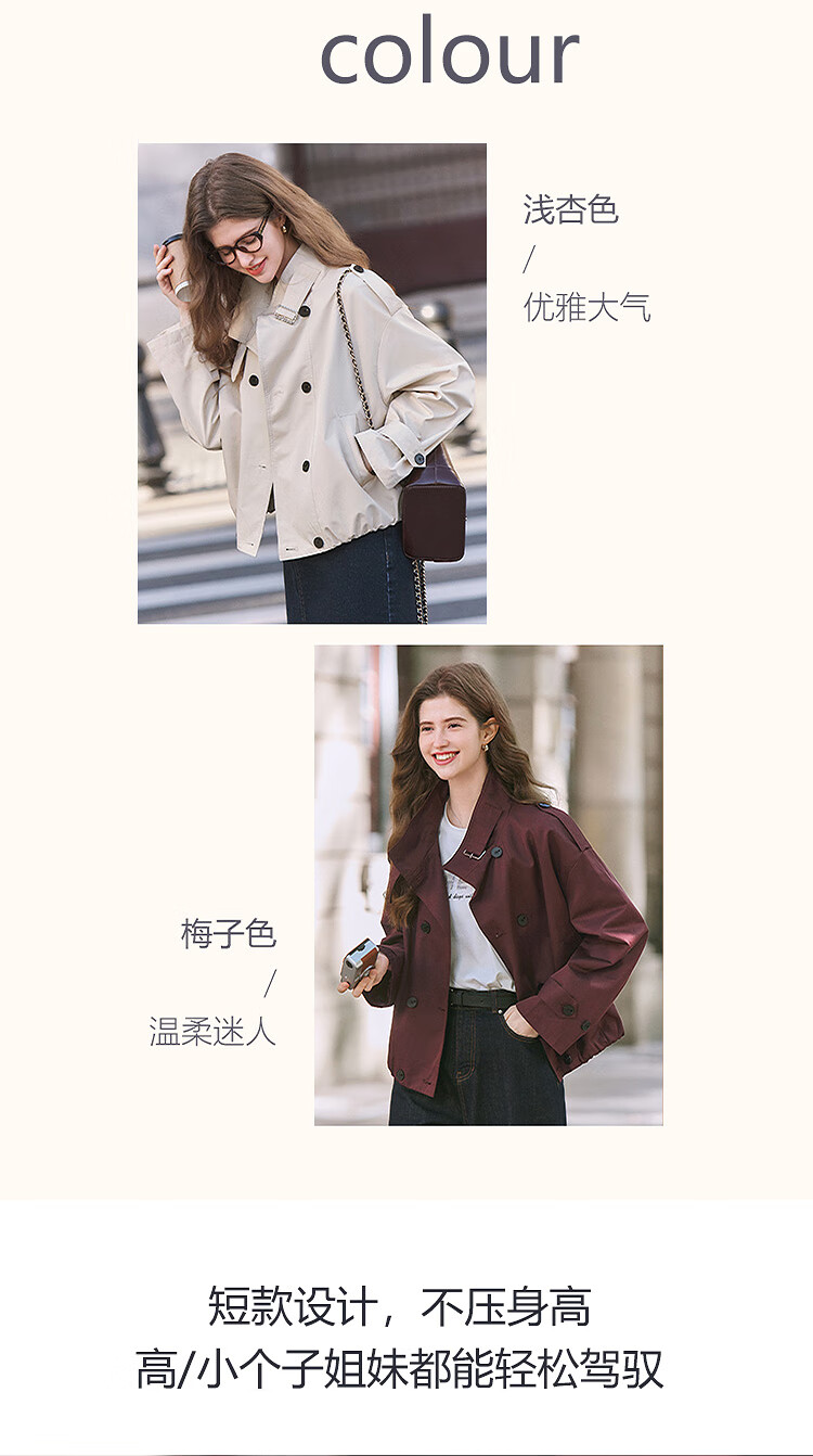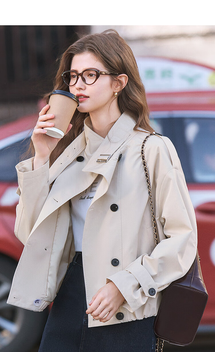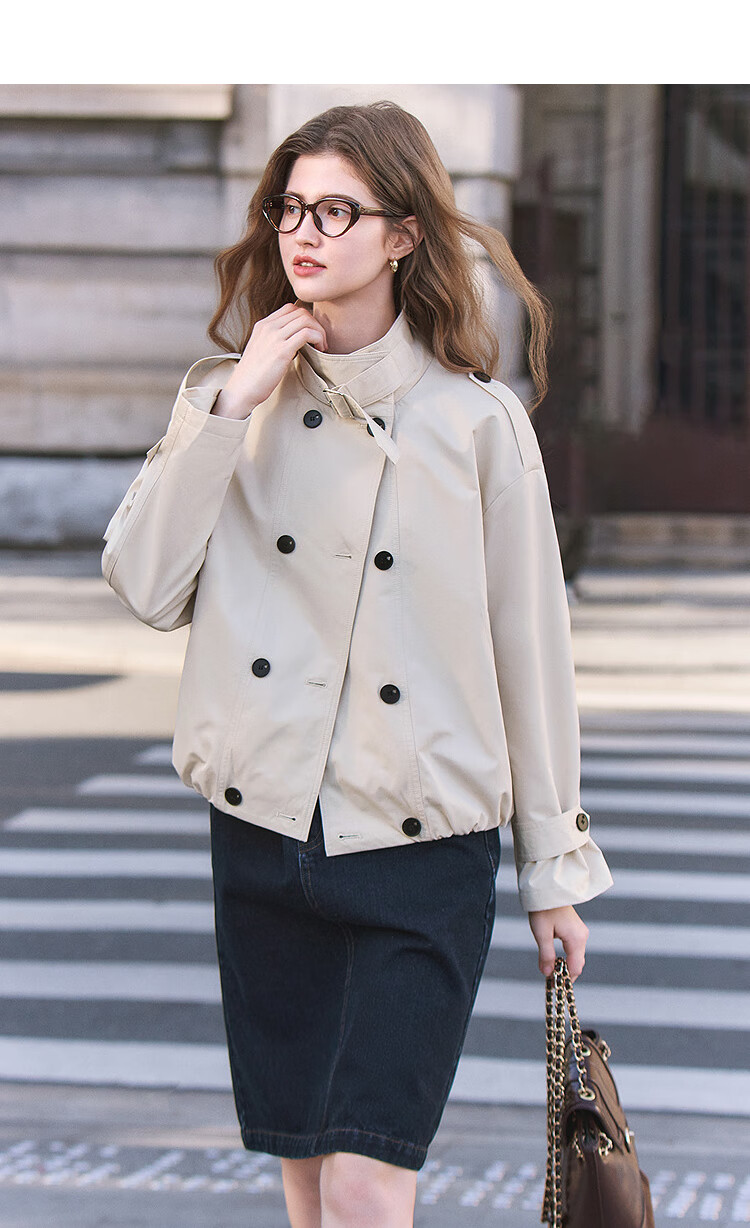 Betu Women's 2025 Spring New Windbreaker Fashionable Stand Collar Outdoor Wind-Resistant Loose Short Jacket 2501T48 Light Apricot M