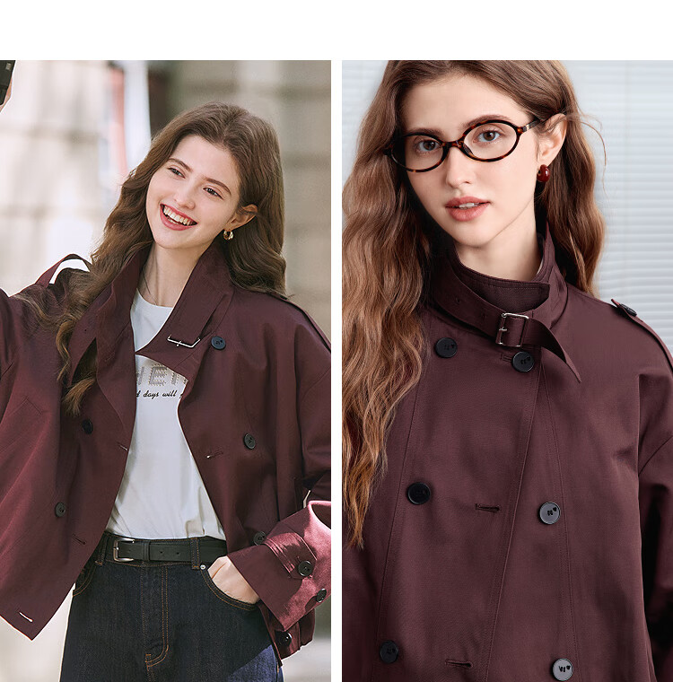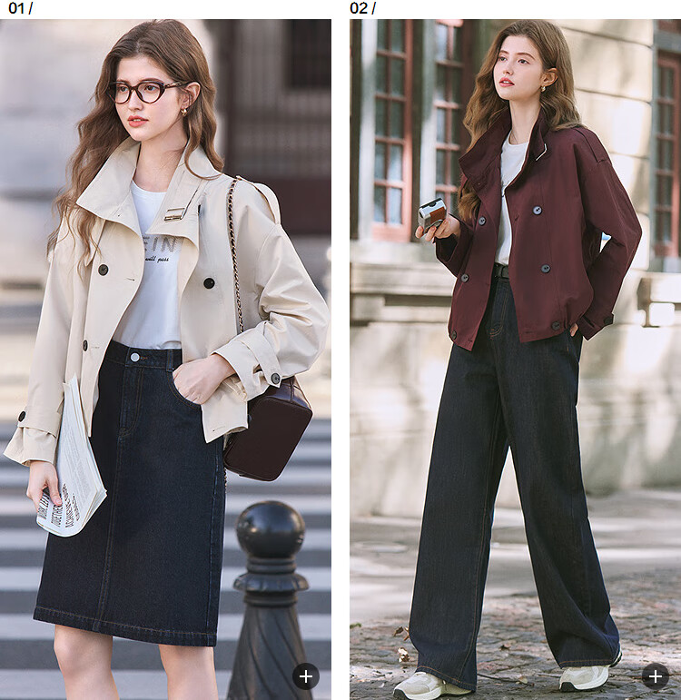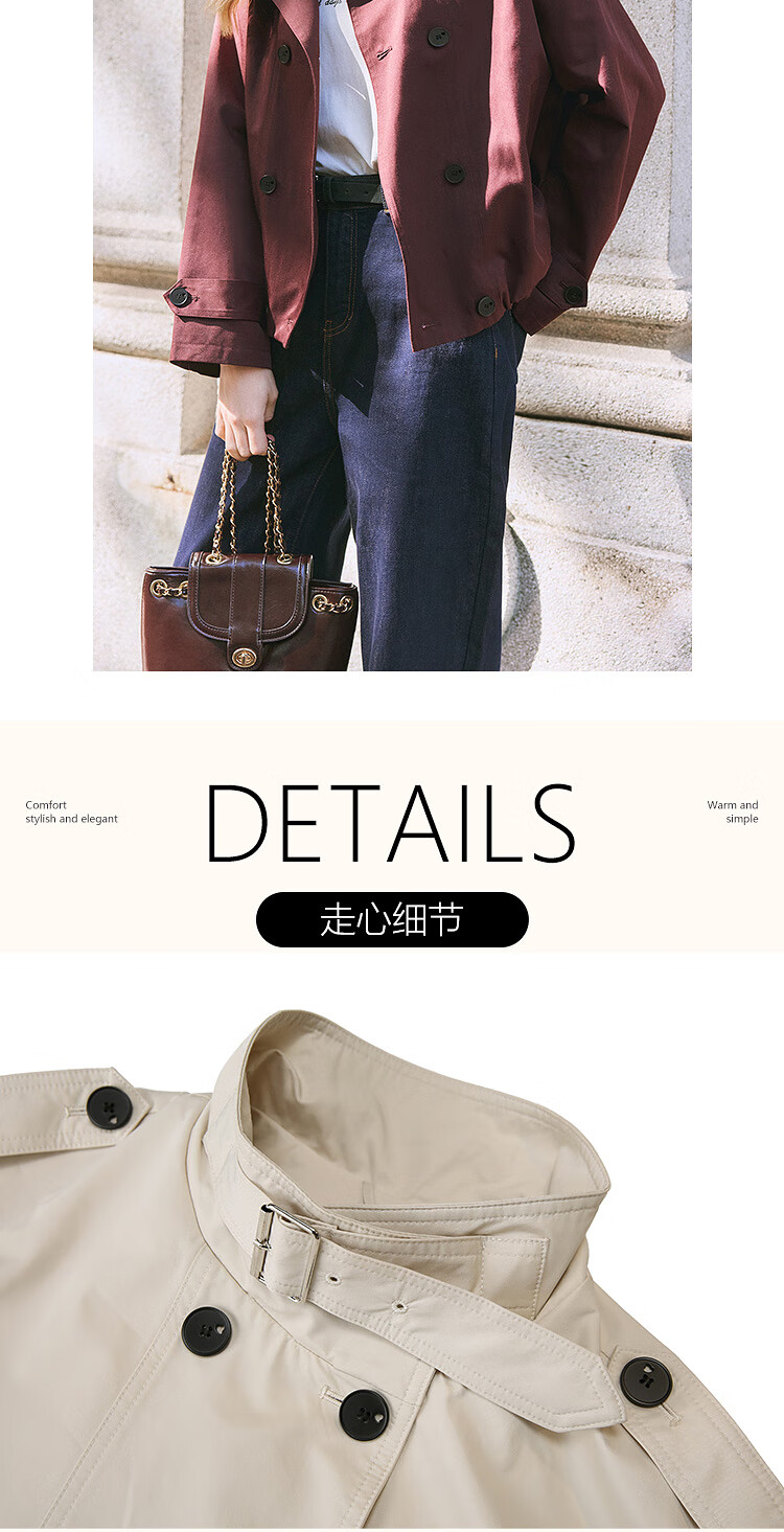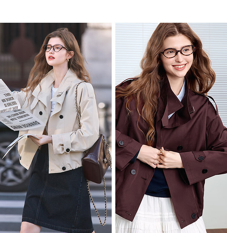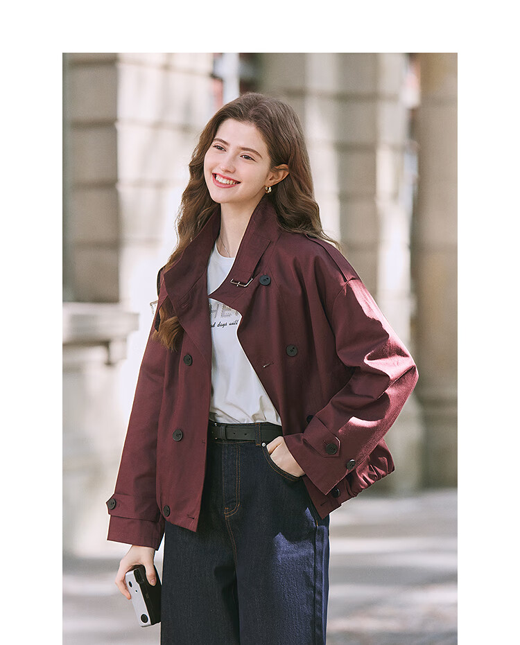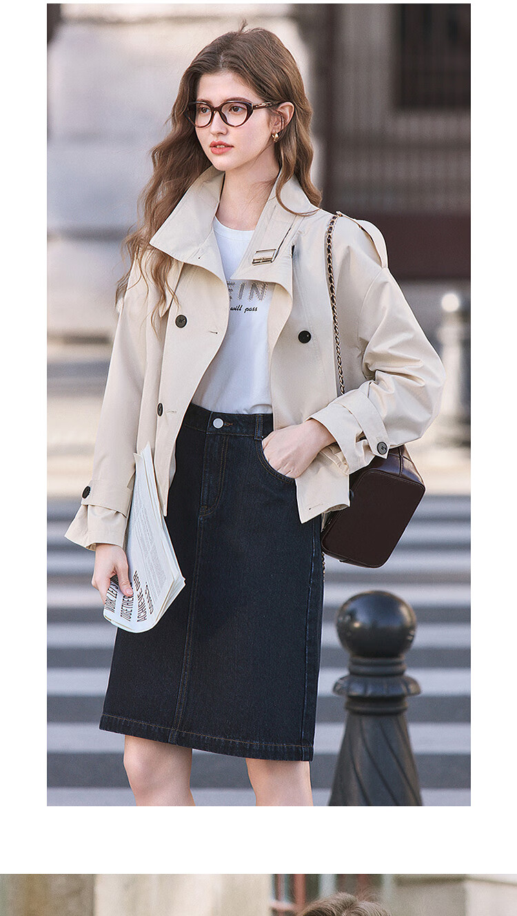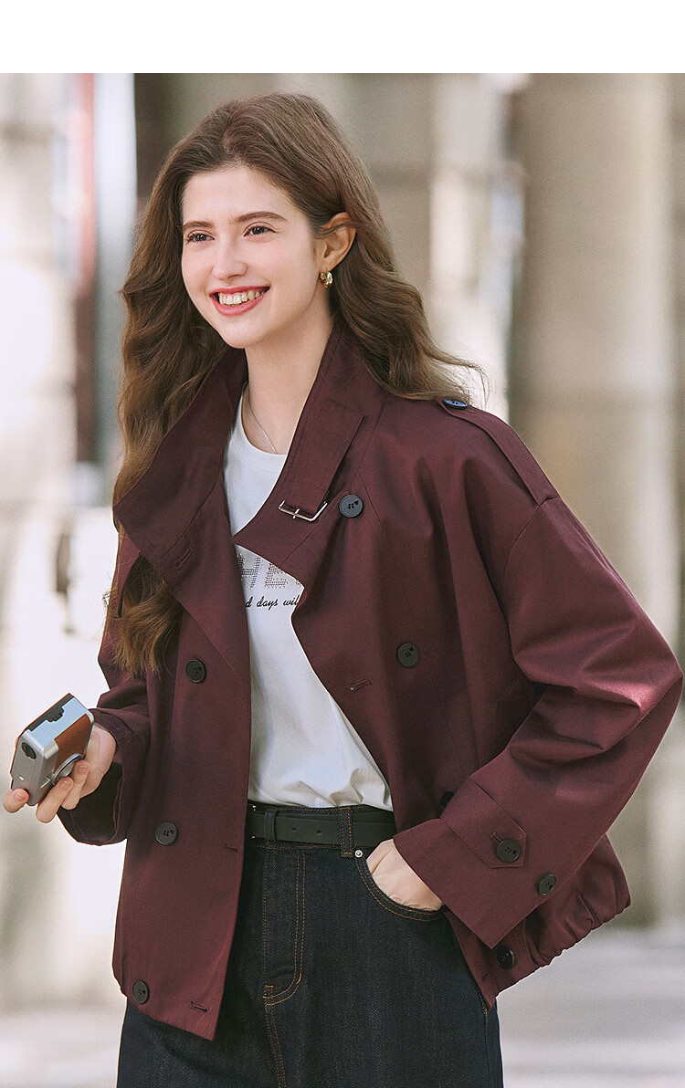 Betu Women's 2025 Spring New Windbreaker Fashionable Stand Collar Outdoor Wind-Resistant Loose Short Jacket 2501T48 Light Apricot M
