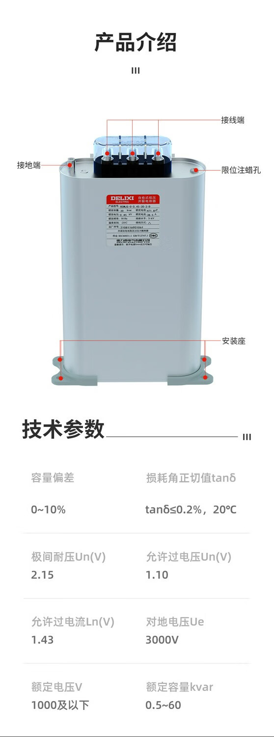 BSMJS self-healing low-voltage capacitor 0.45-15-3 reactive power compensation 0.4 parallel power 450V BSMJS-0.45-30-3