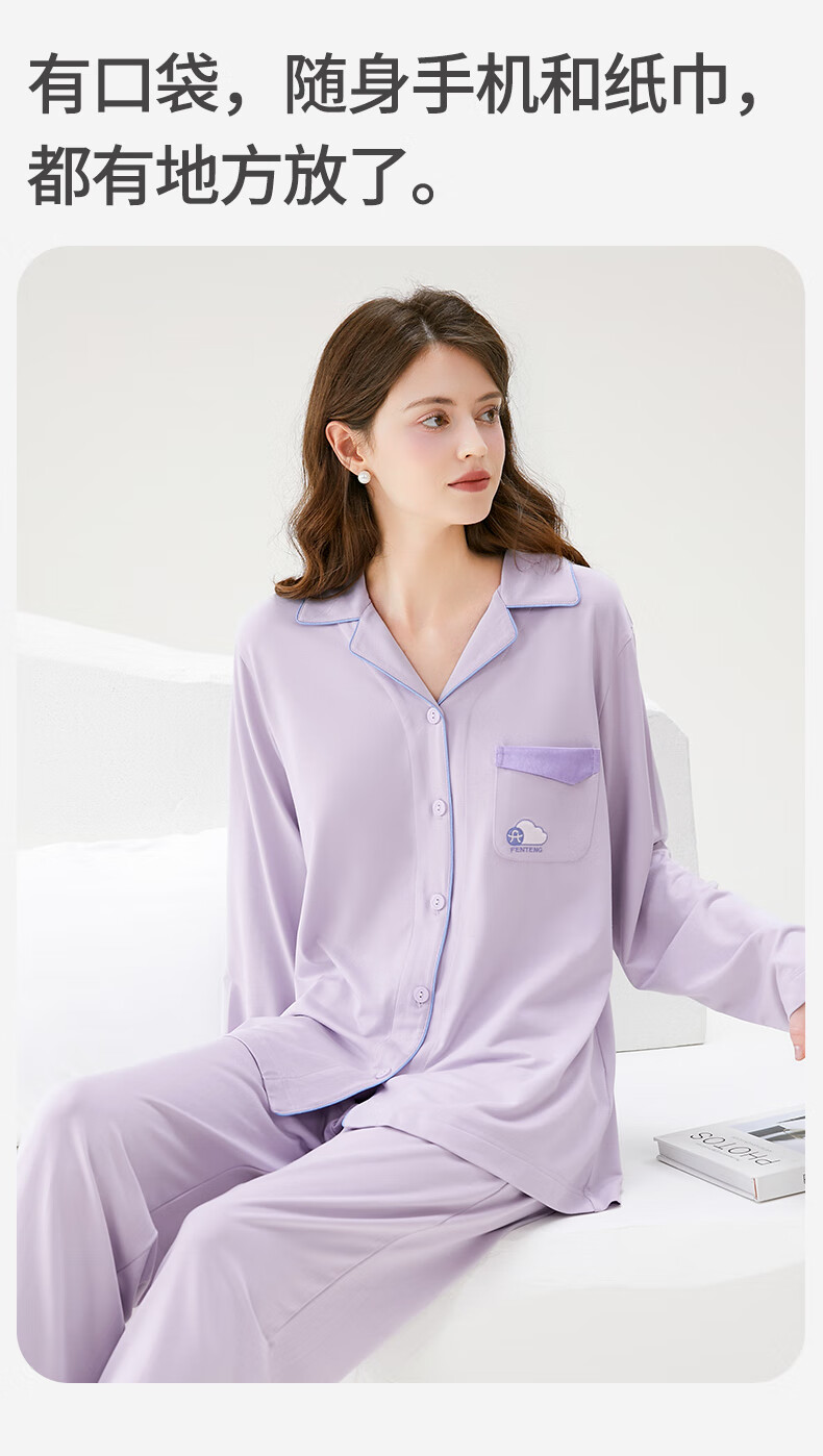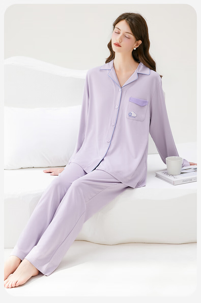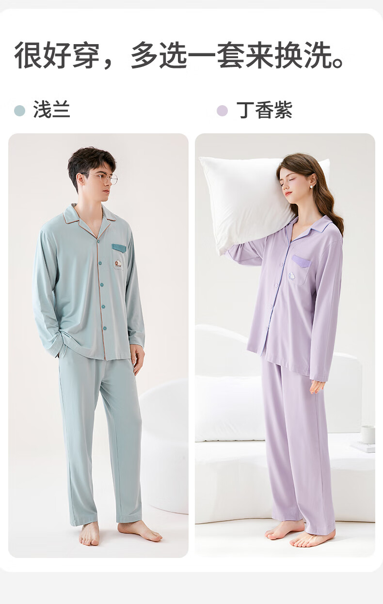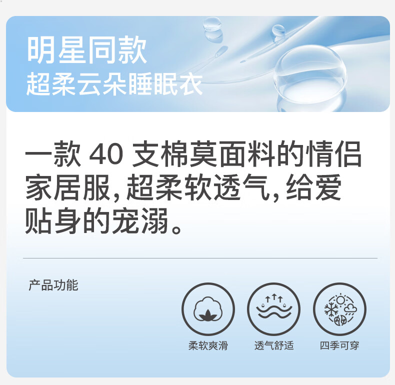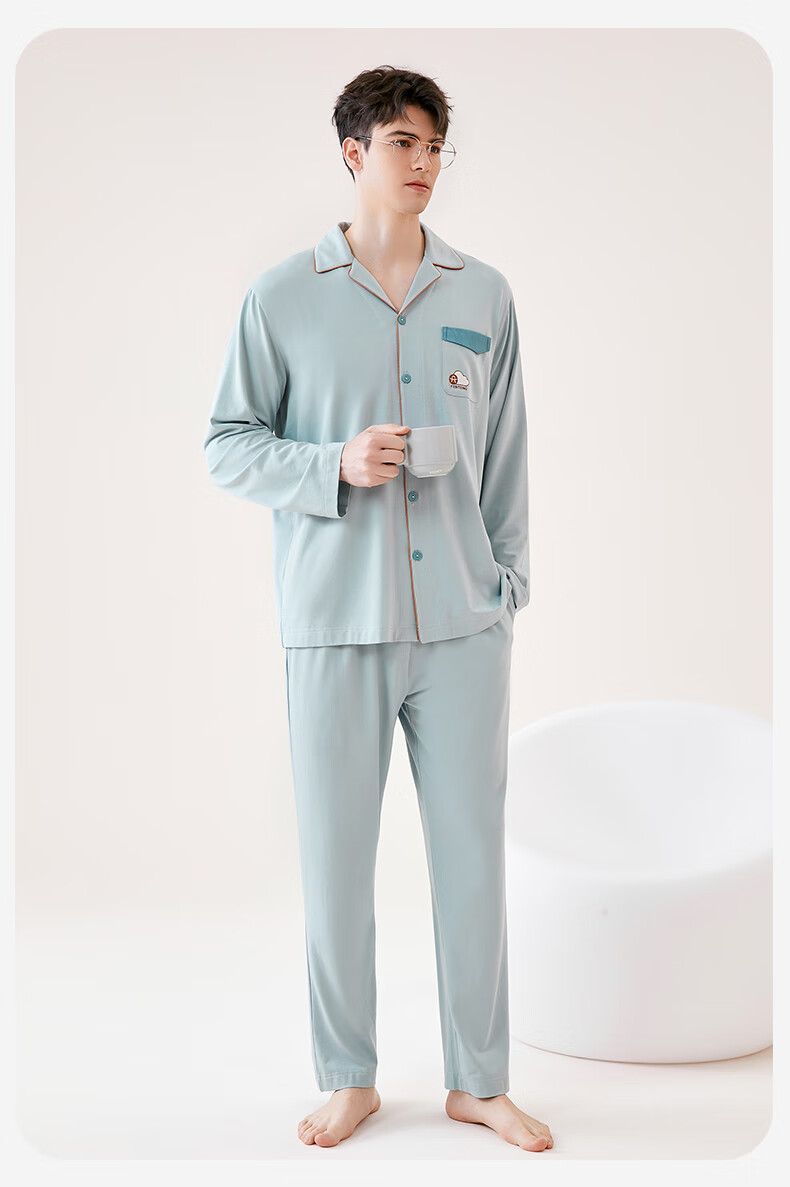 Fen Teng Fen Teng Couple Pajamas Soft Cotton Cotton Fan Chengcheng's Same Style Stars' Same Style 40 Count Cotton Mo Couple's Home Clothing Set Light Blue - Men's L