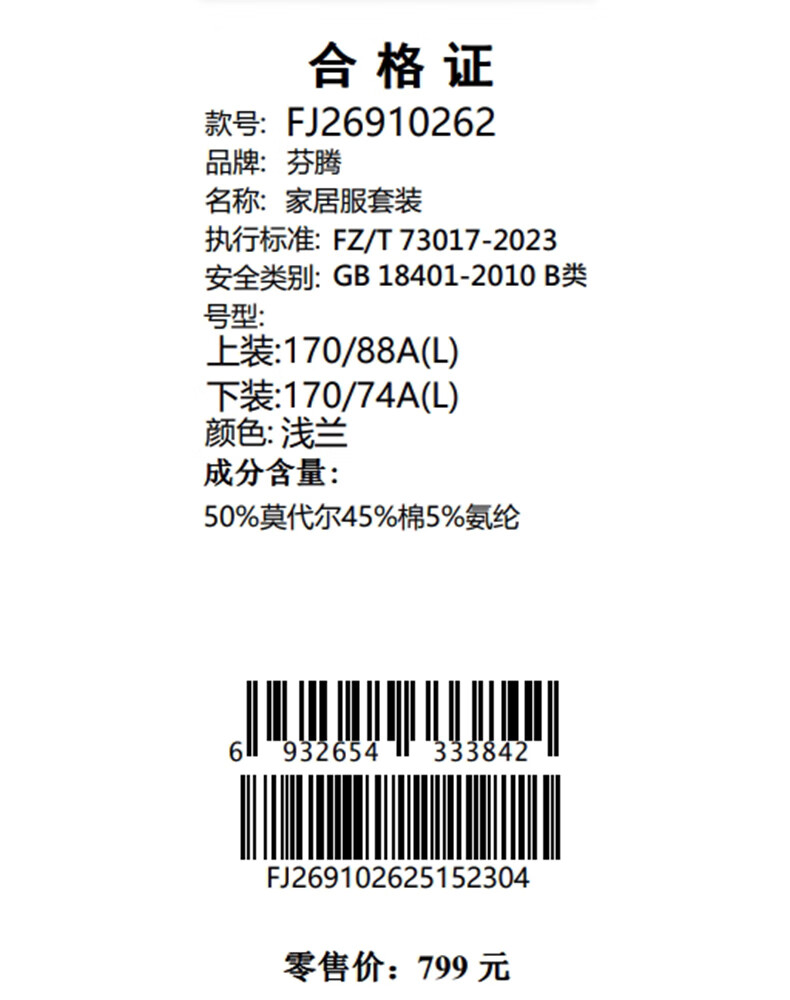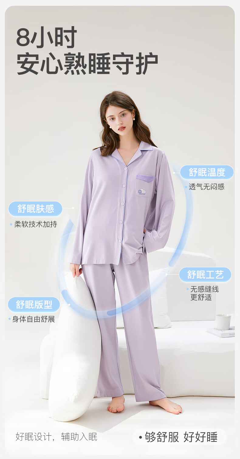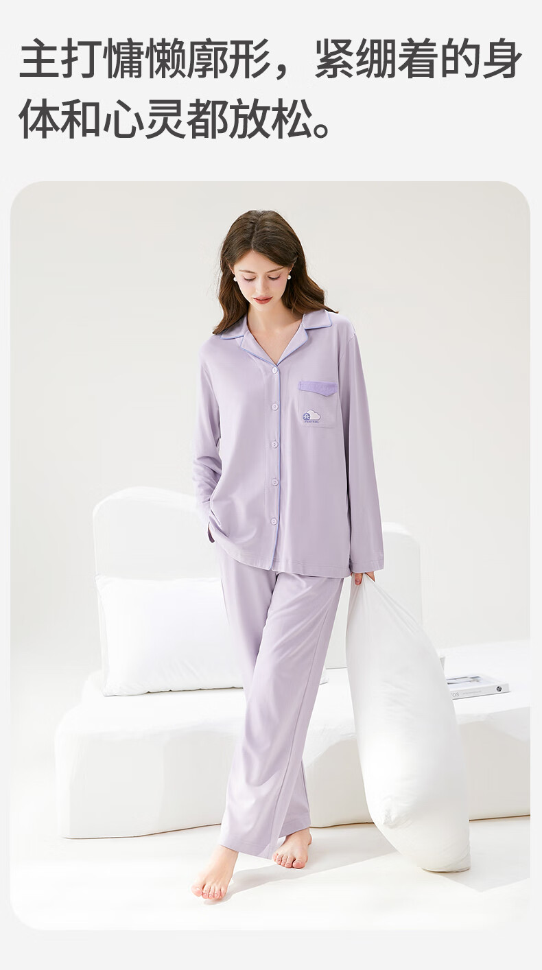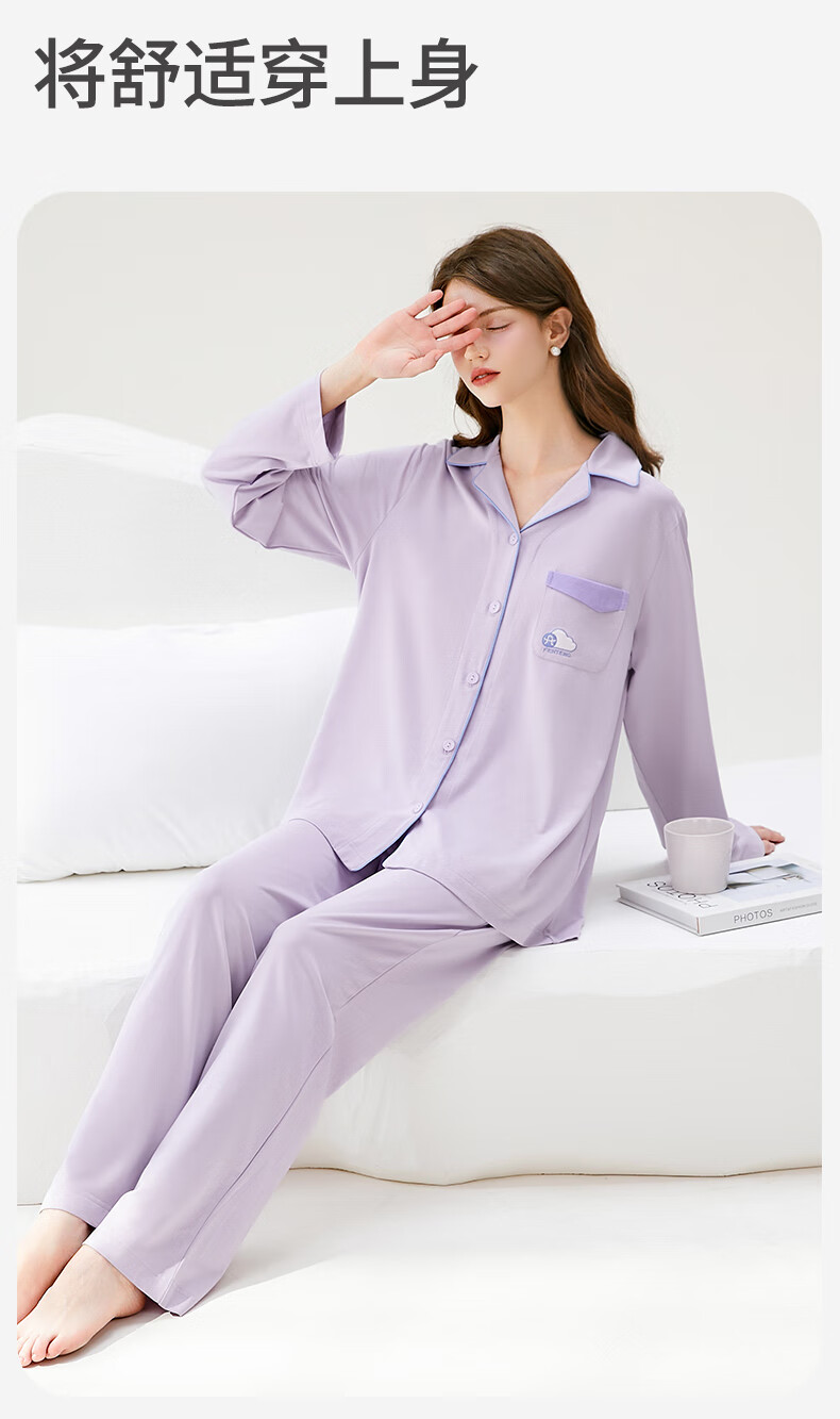 Fen Teng Fen Teng Couple Pajamas Soft Cotton Cotton Fan Chengcheng's Same Style Stars' Same Style 40 Count Cotton Mo Couple's Home Clothing Set Light Blue - Men's L
