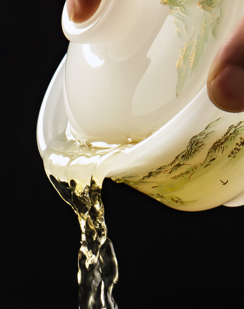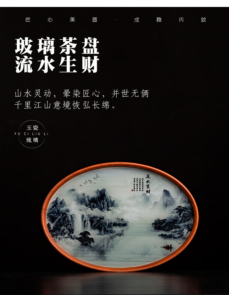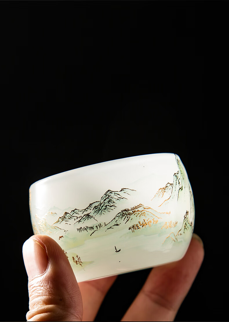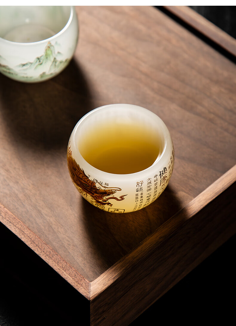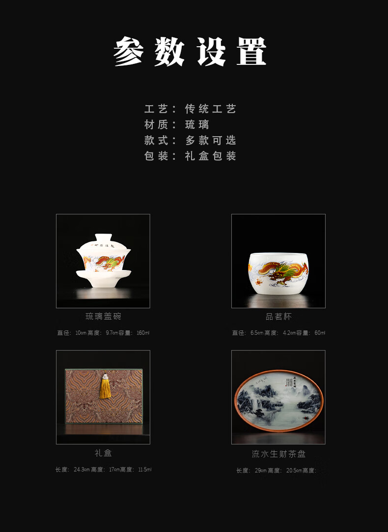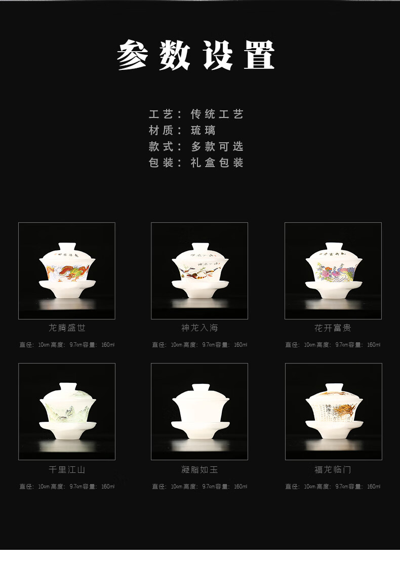 Gude Kiln Glazed Jade Porcelain Tea Set for Home Tea Making One Person Kung Fu Tea Set Covered Bowl Teacup Three-piece Set with Tea Tray Glazed Thousand Miles + Covered Bowl + 2 Zen Meditation Cups + Gift Box