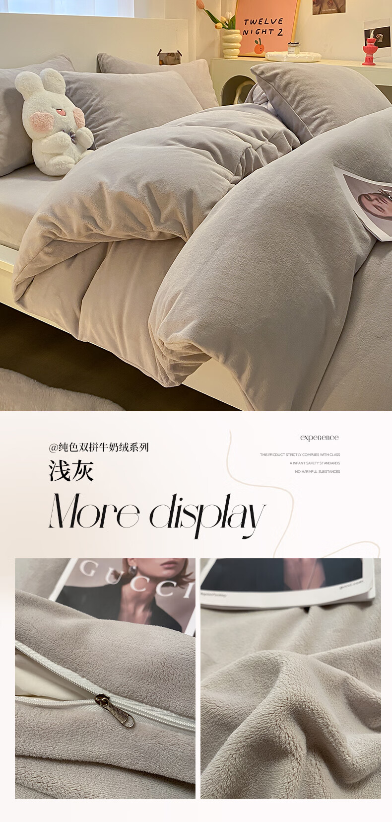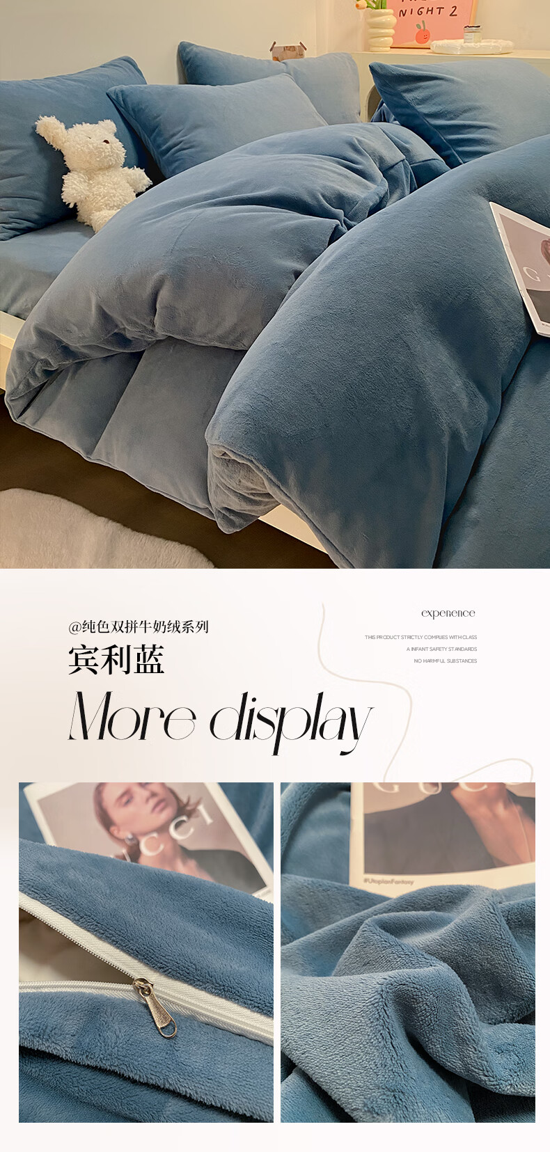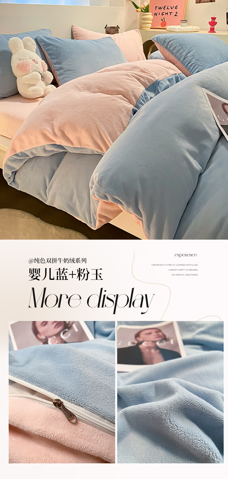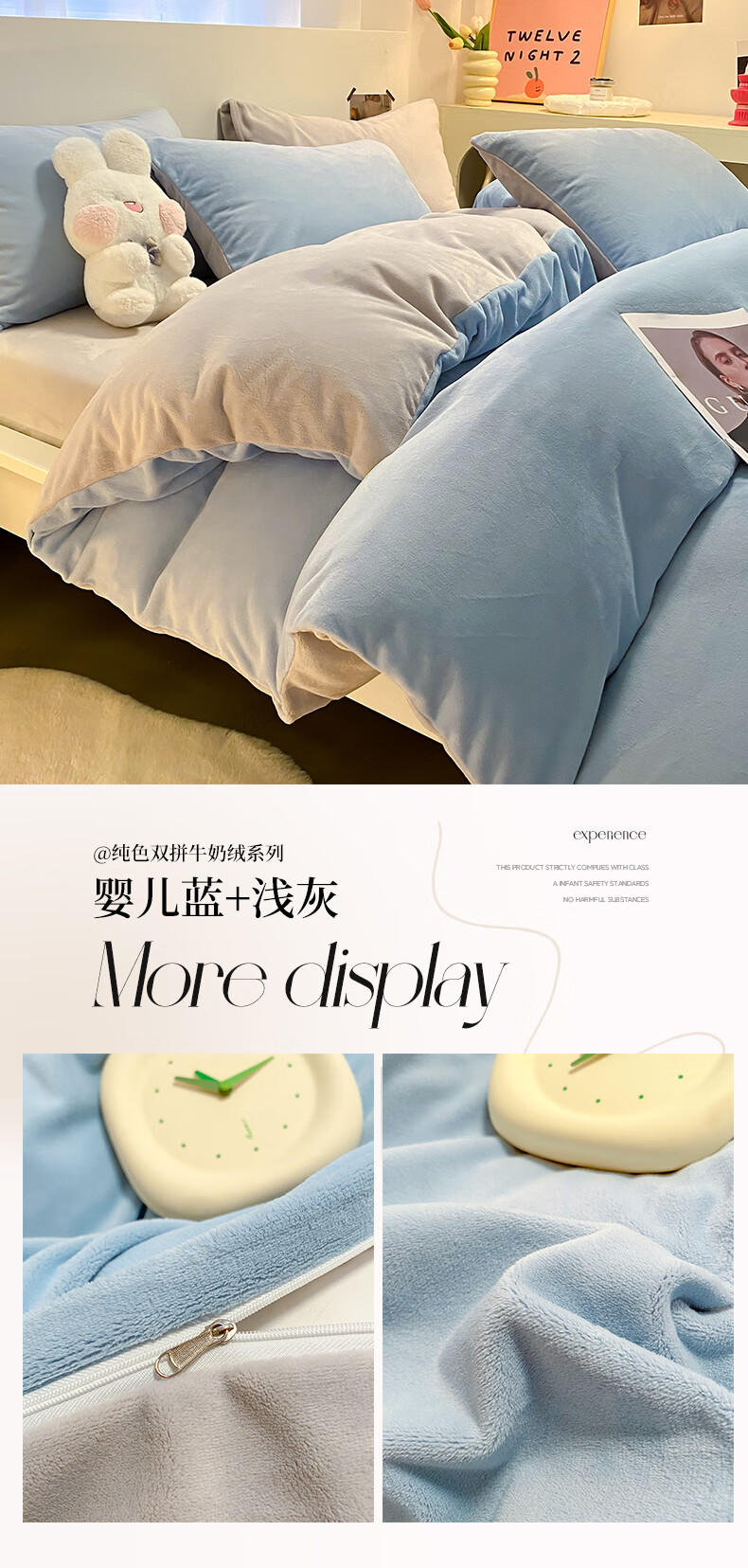 Lady Laura Fuanna's Class A milk velvet bed four-piece winter double-sided velvet thickened coral velvet quilt cover customized milk white + baby blue - sheet style 1.8m bed sheet four-piece quilt cover 200*230