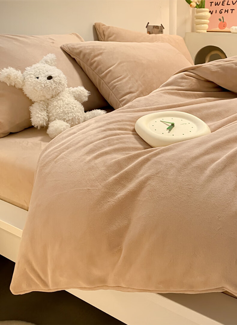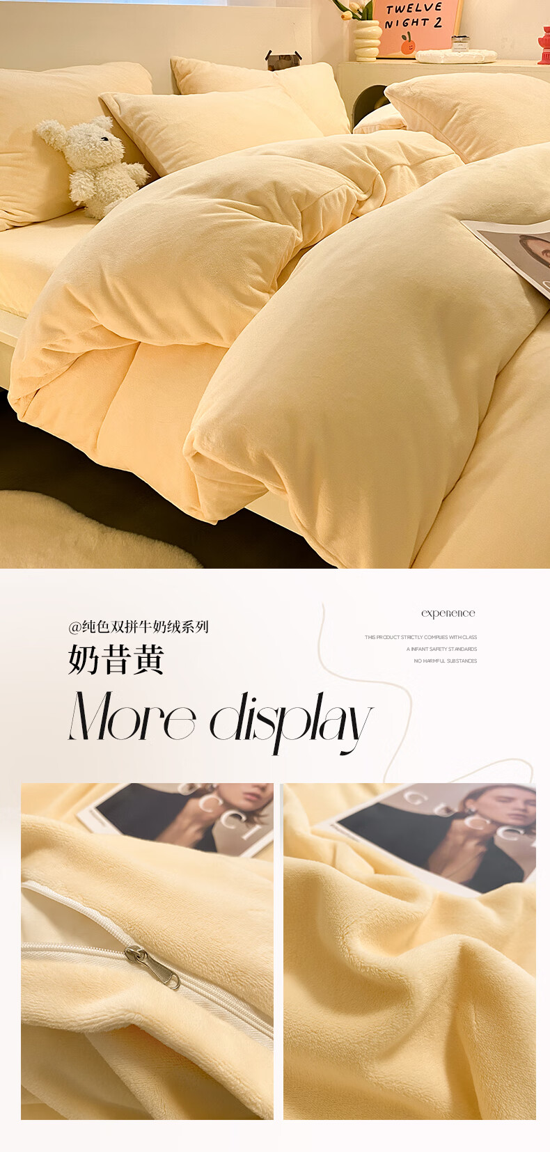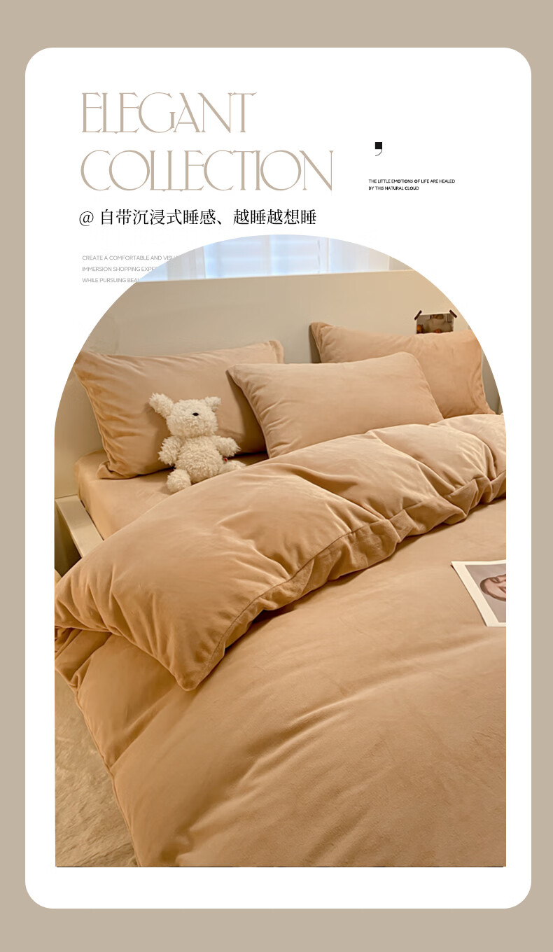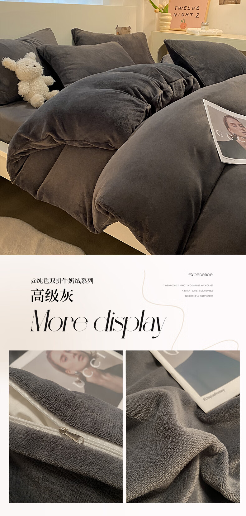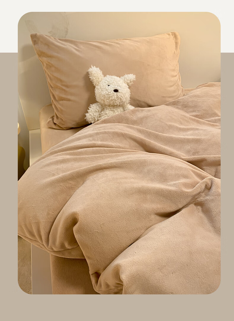 Lady Laura Fuanna's Class A milk velvet bed four-piece winter double-sided velvet thickened coral velvet quilt cover customized milk white + baby blue - sheet style 1.8m bed sheet four-piece quilt cover 200*230