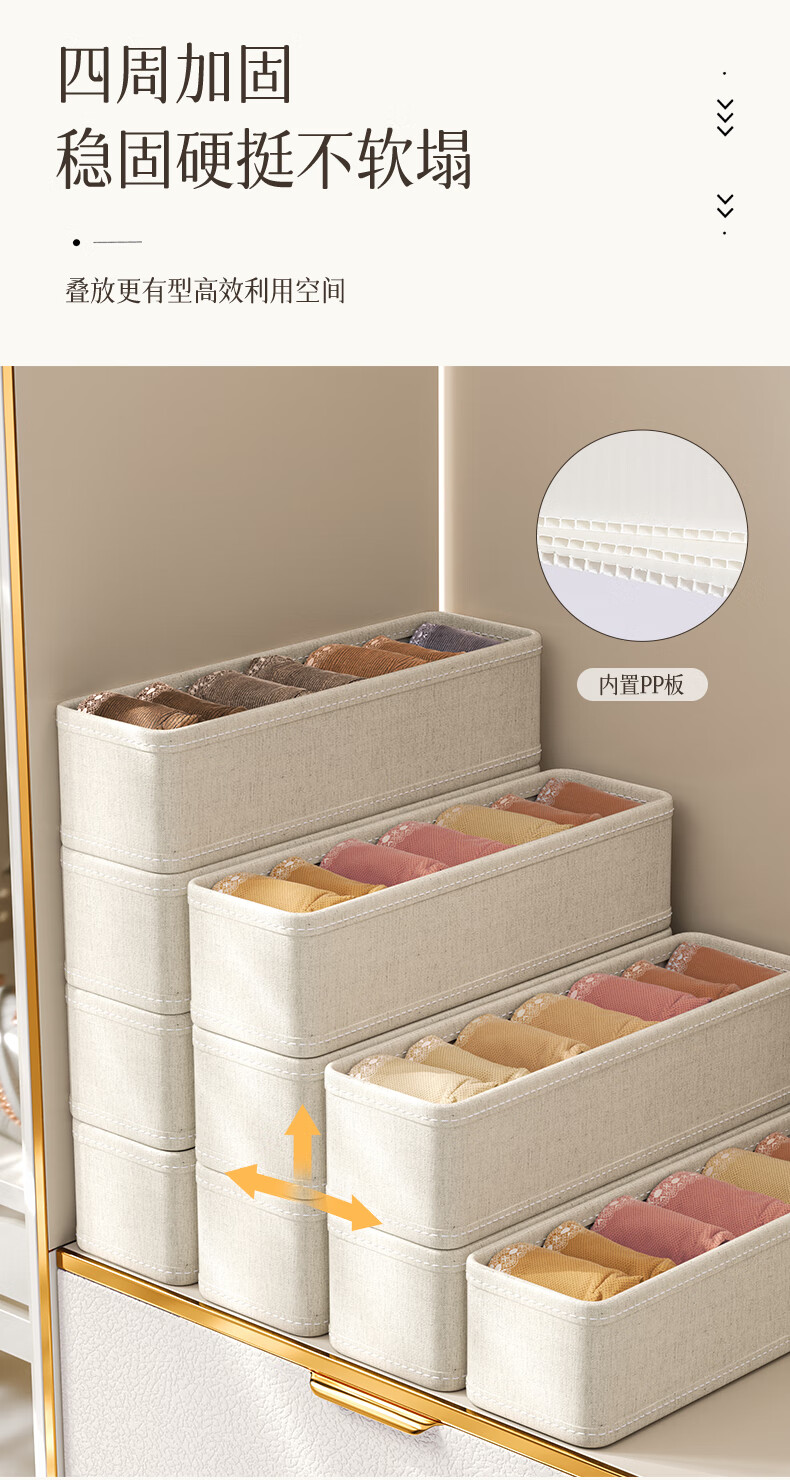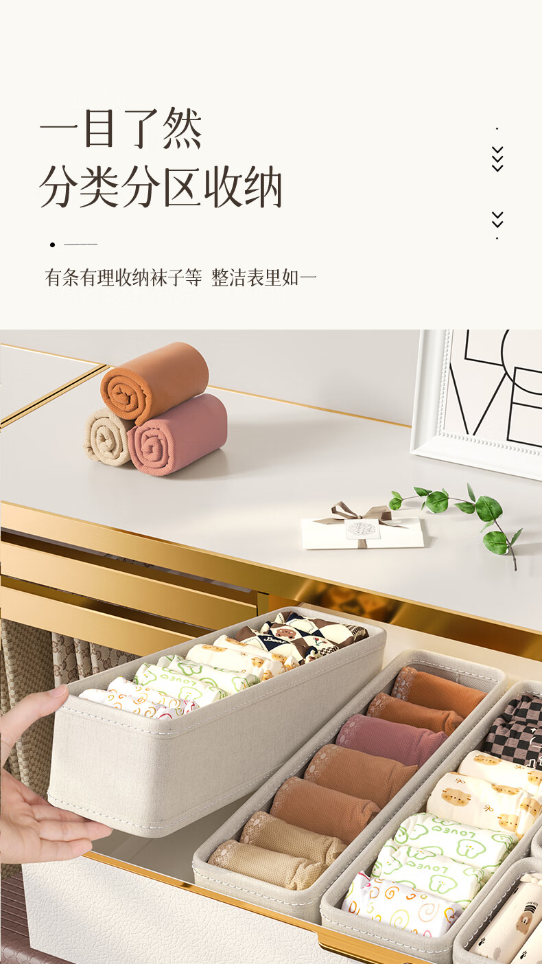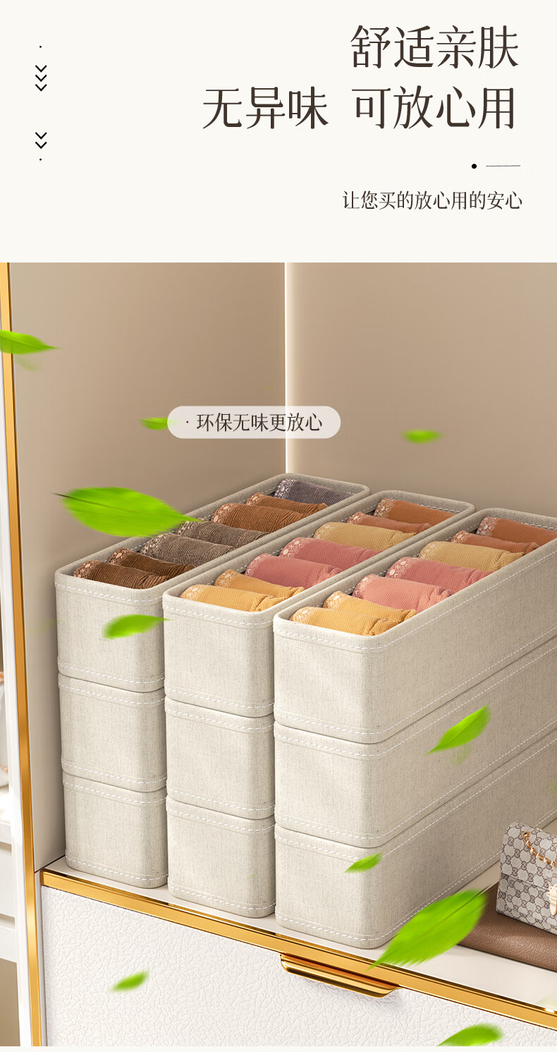 Nature House Tianshan Cotton and Linen Socks Organizing Box Storage Cabinet Underwear Classification Storage Underwear Storage Home Space-Saving Sock Box-18 Compartments Tianshan Cotton and Linen-Washable