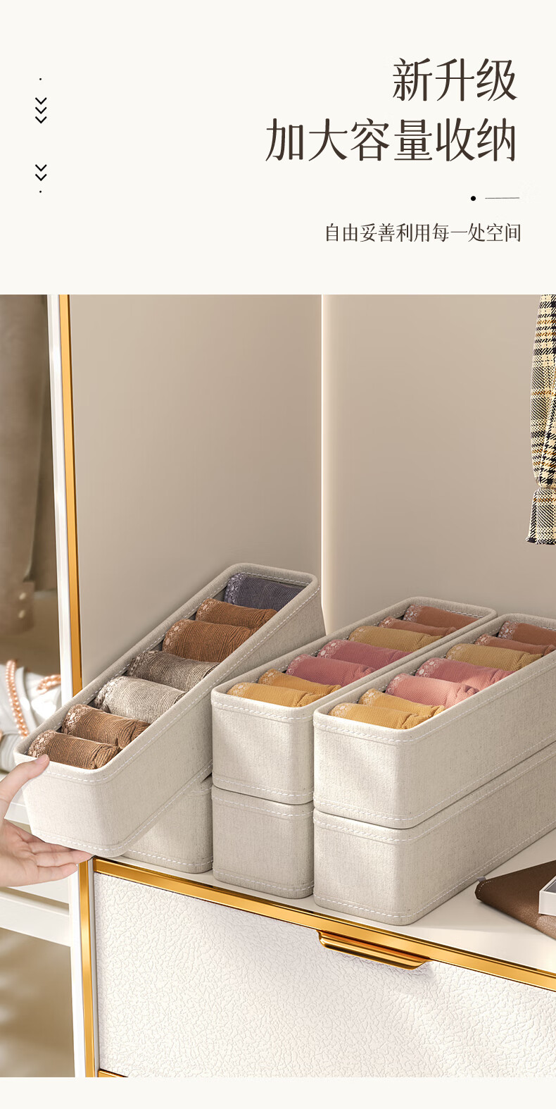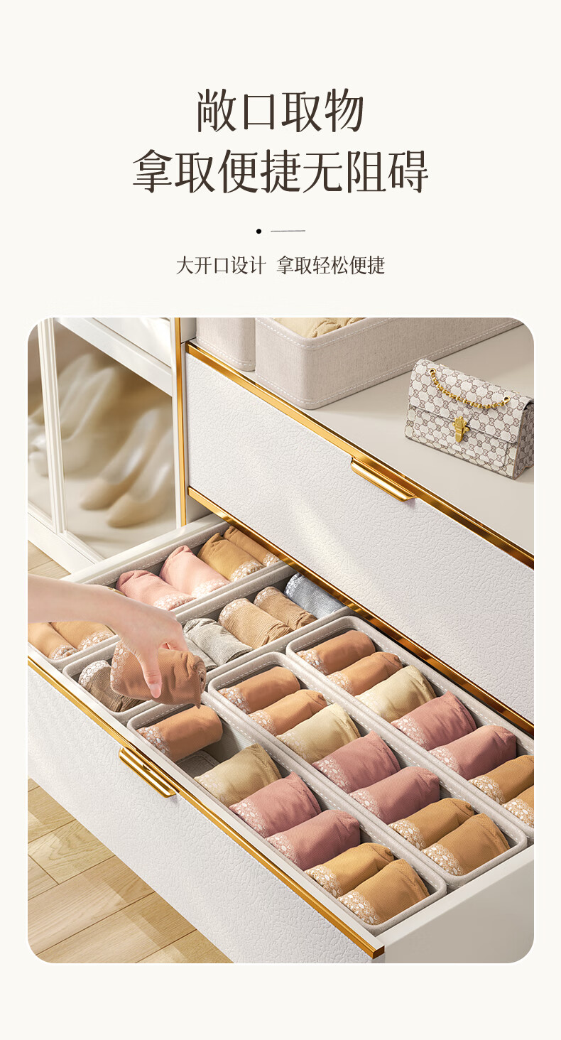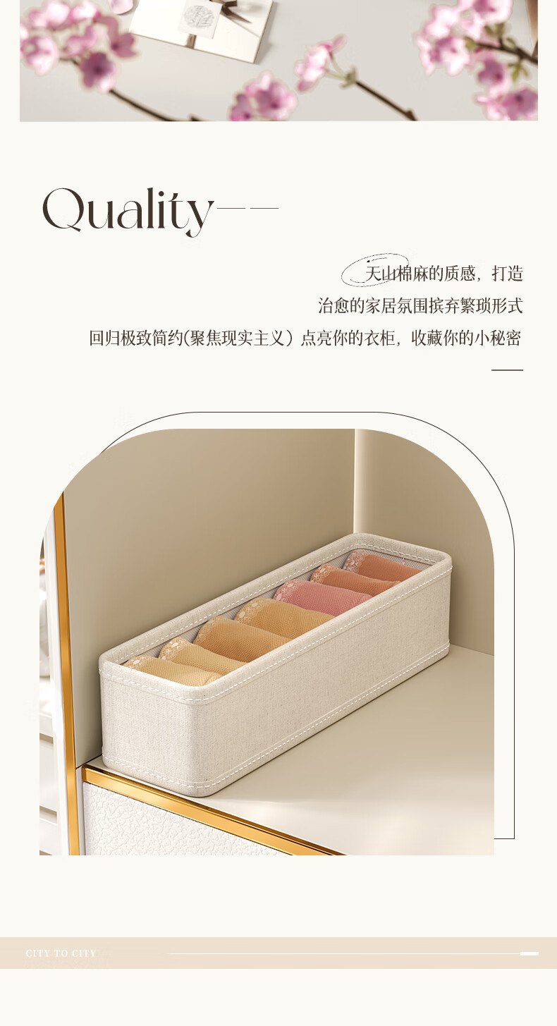 Nature House Tianshan Cotton and Linen Socks Organizing Box Storage Cabinet Underwear Classification Storage Underwear Storage Home Space-Saving Sock Box-18 Compartments Tianshan Cotton and Linen-Washable