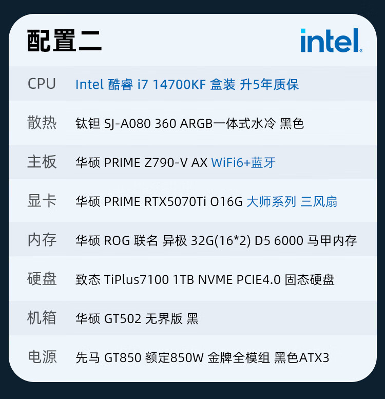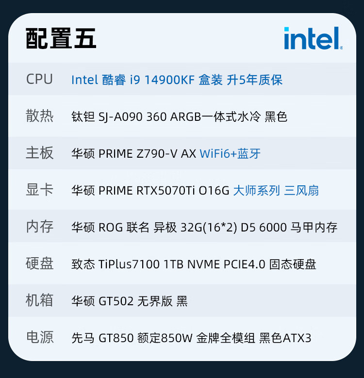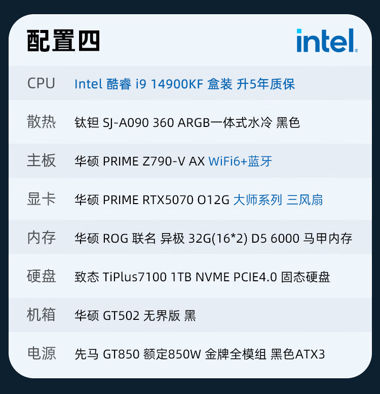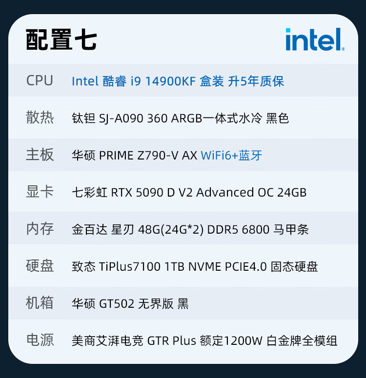 Intel 14th generation Core i9 14900KF series RTX5090 D ASUS TUF family bucket design gaming desktop computer host assembly computer Deepseek local deployment with two i7 14700KF+RTX5070Ti