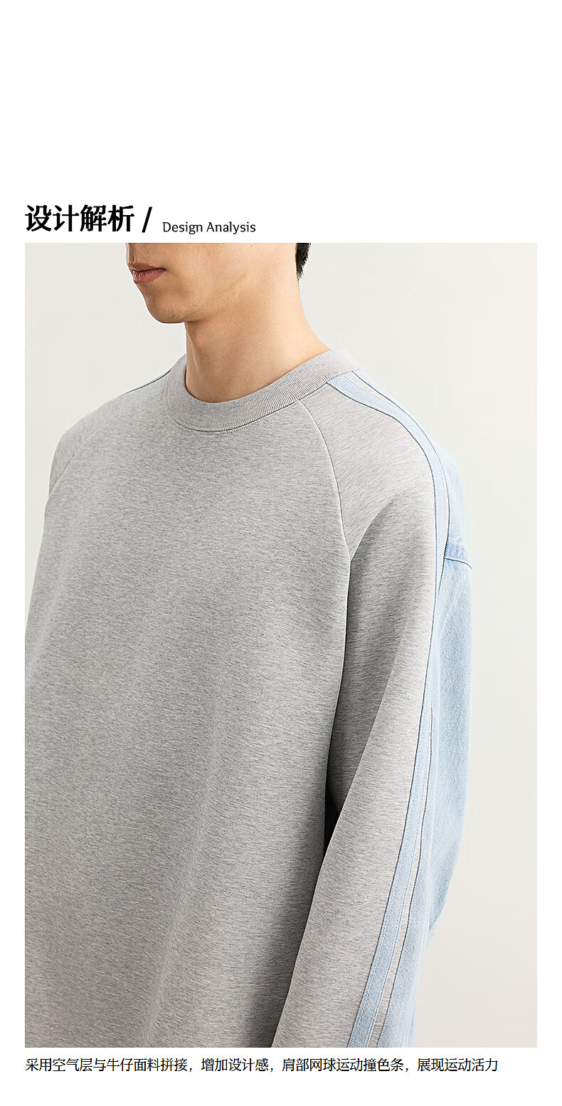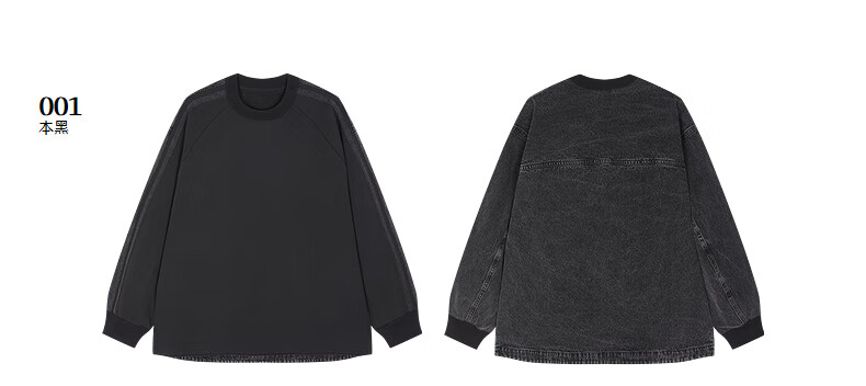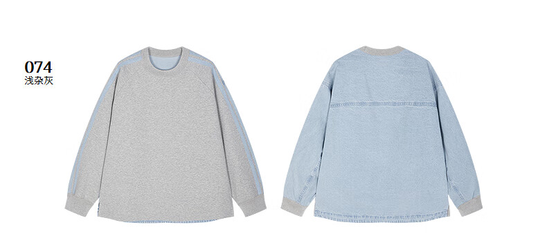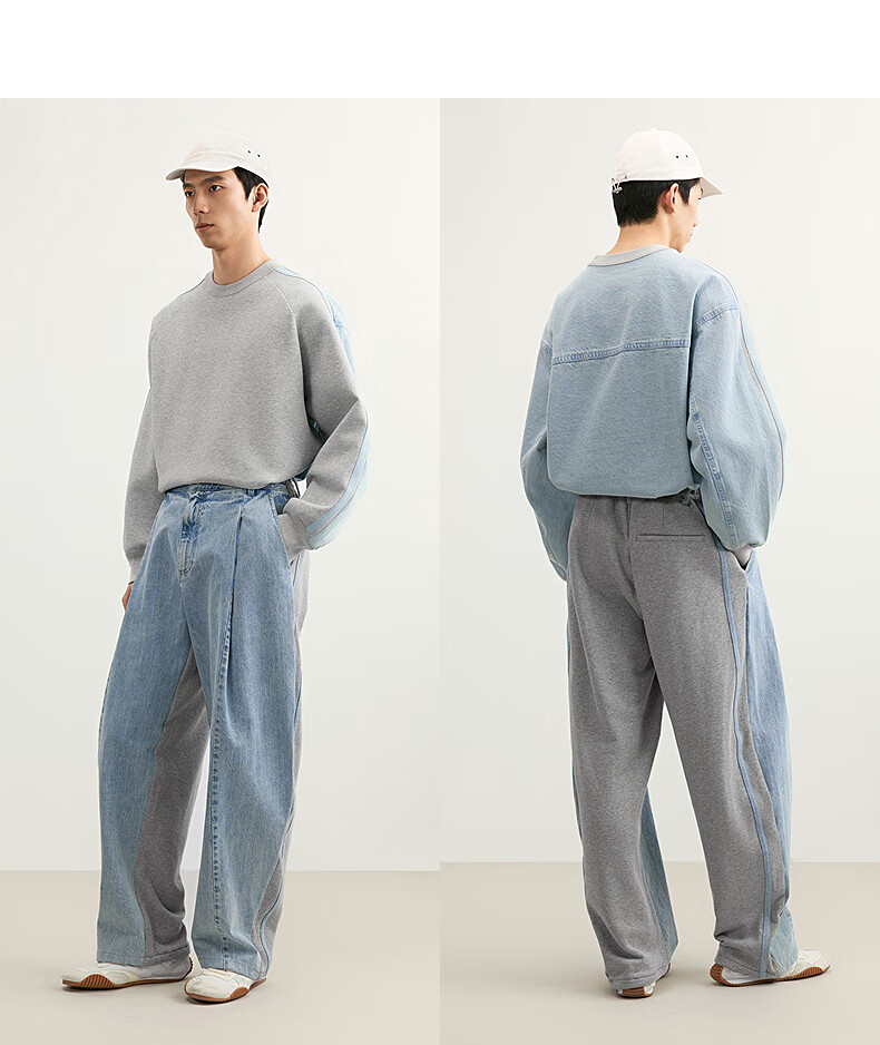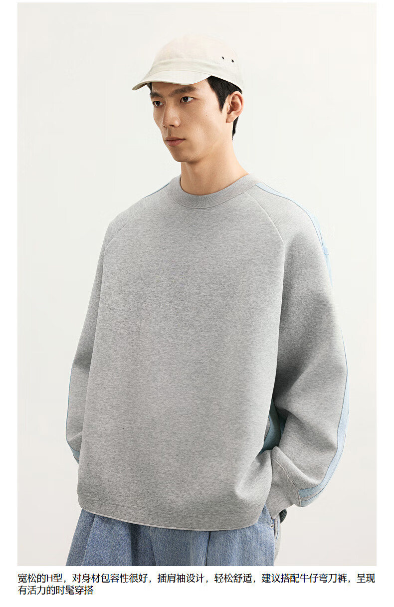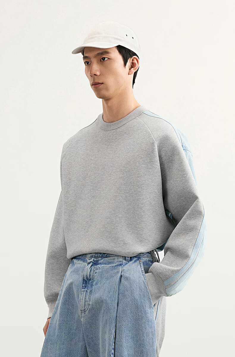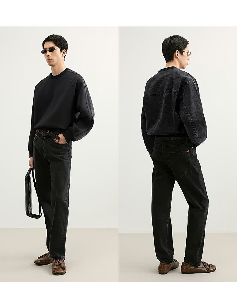 Sketch Men's 2025 Spring New Arrival Top Denim Spliced Pullover Sweatshirt Loose Long Sleeve American Casual 9P1412310 001 Black S