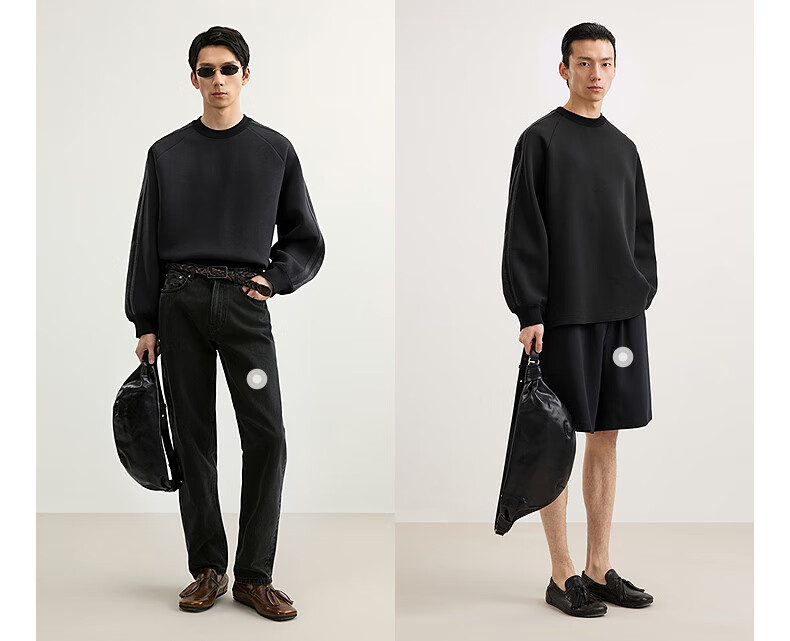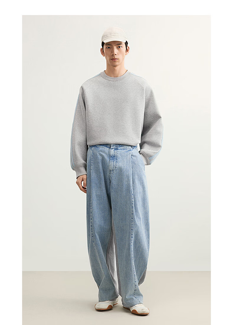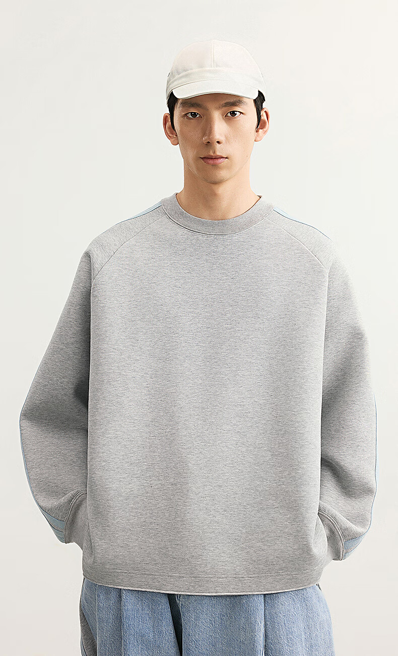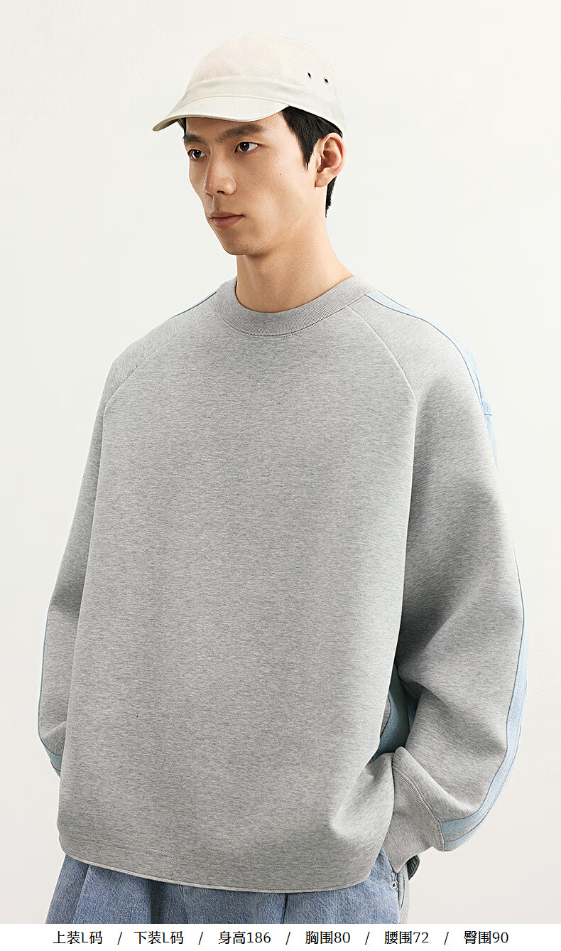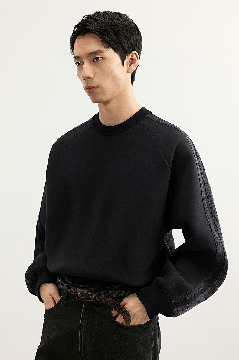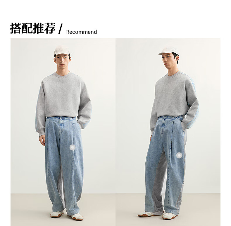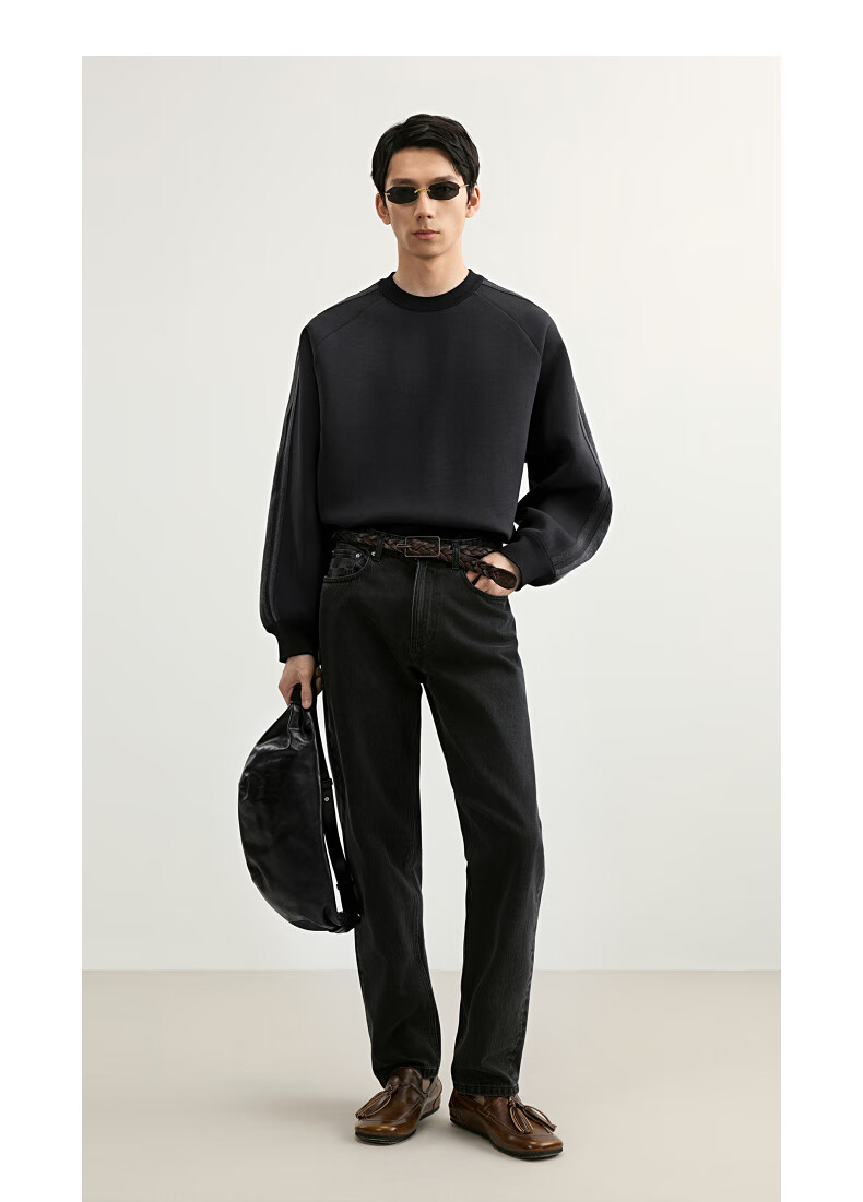 Sketch Men's 2025 Spring New Arrival Top Denim Spliced Pullover Sweatshirt Loose Long Sleeve American Casual 9P1412310 001 Black S