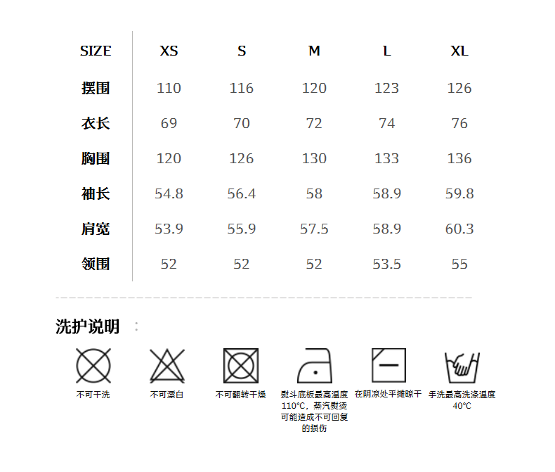 China (cm) 160-165/84-86 165-170 / 88-90 167-172 / 92-96 168-173 / 98-102 170-176 / 106-110