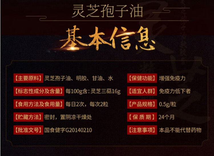 修正灵芝孢子油胶囊 灵芝孢子粉精华成人中老年增强免疫力 【30粒*2瓶】礼盒装2盒