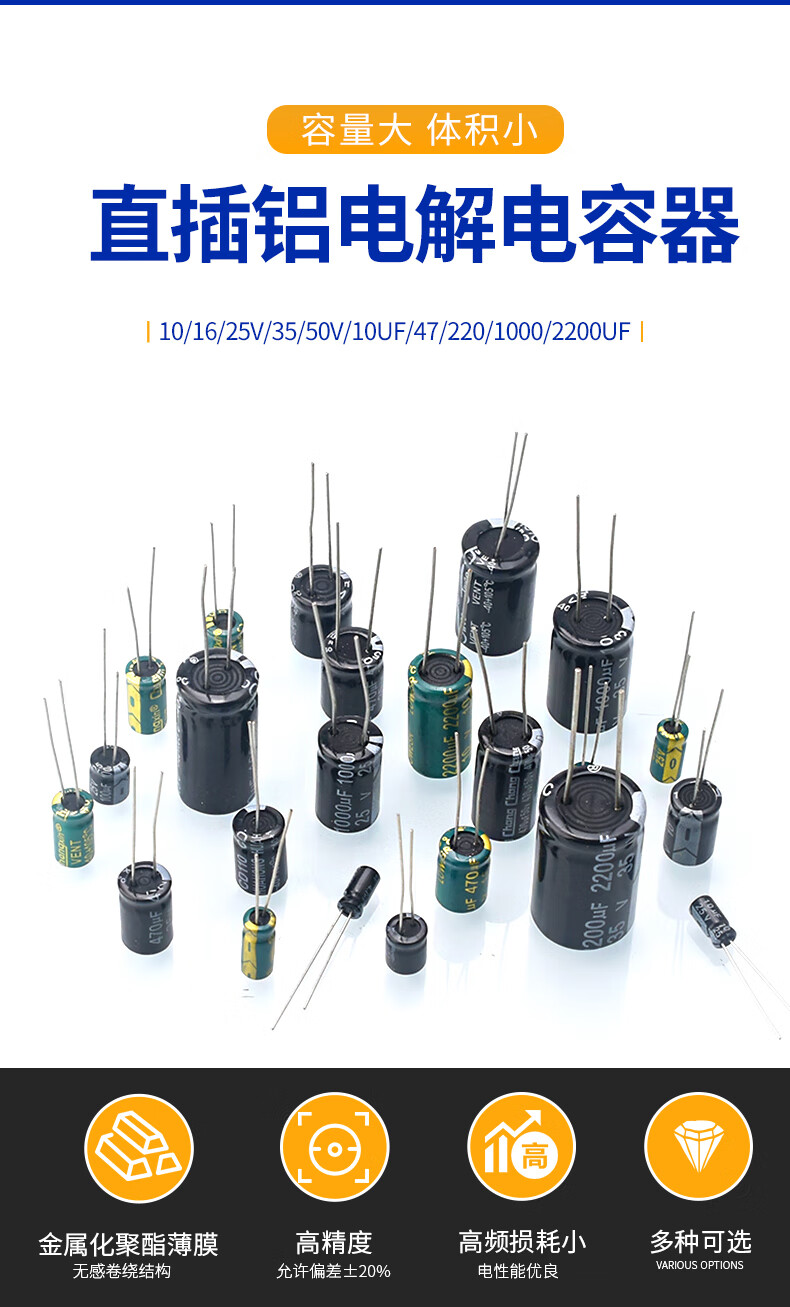 Direct plug aluminum electrolytic capacitor component 10/16/25v/35/50V/100/220/470/1000/2200uF Direct plug 16V 2200uf green high frequency 10*20mm(1